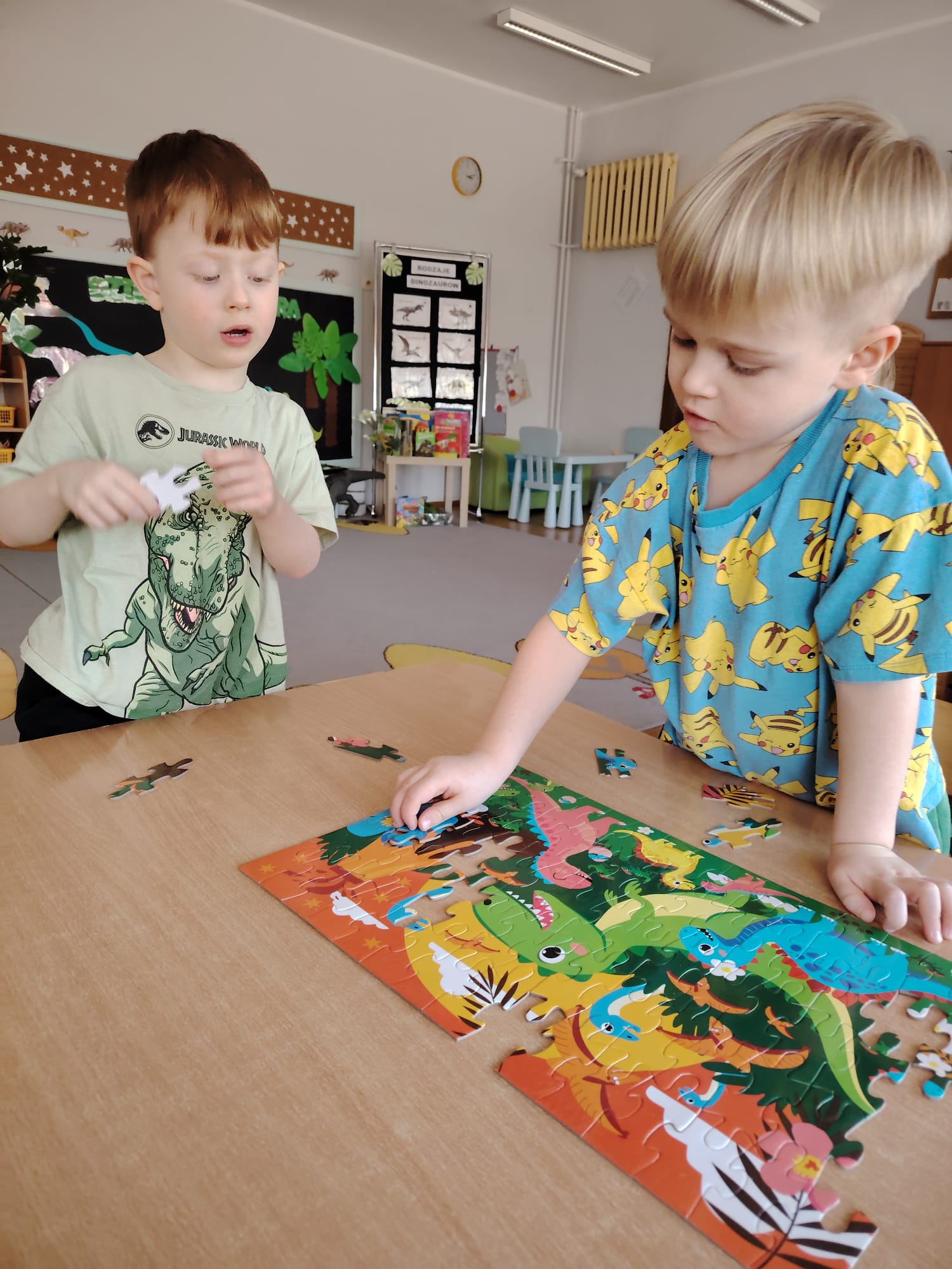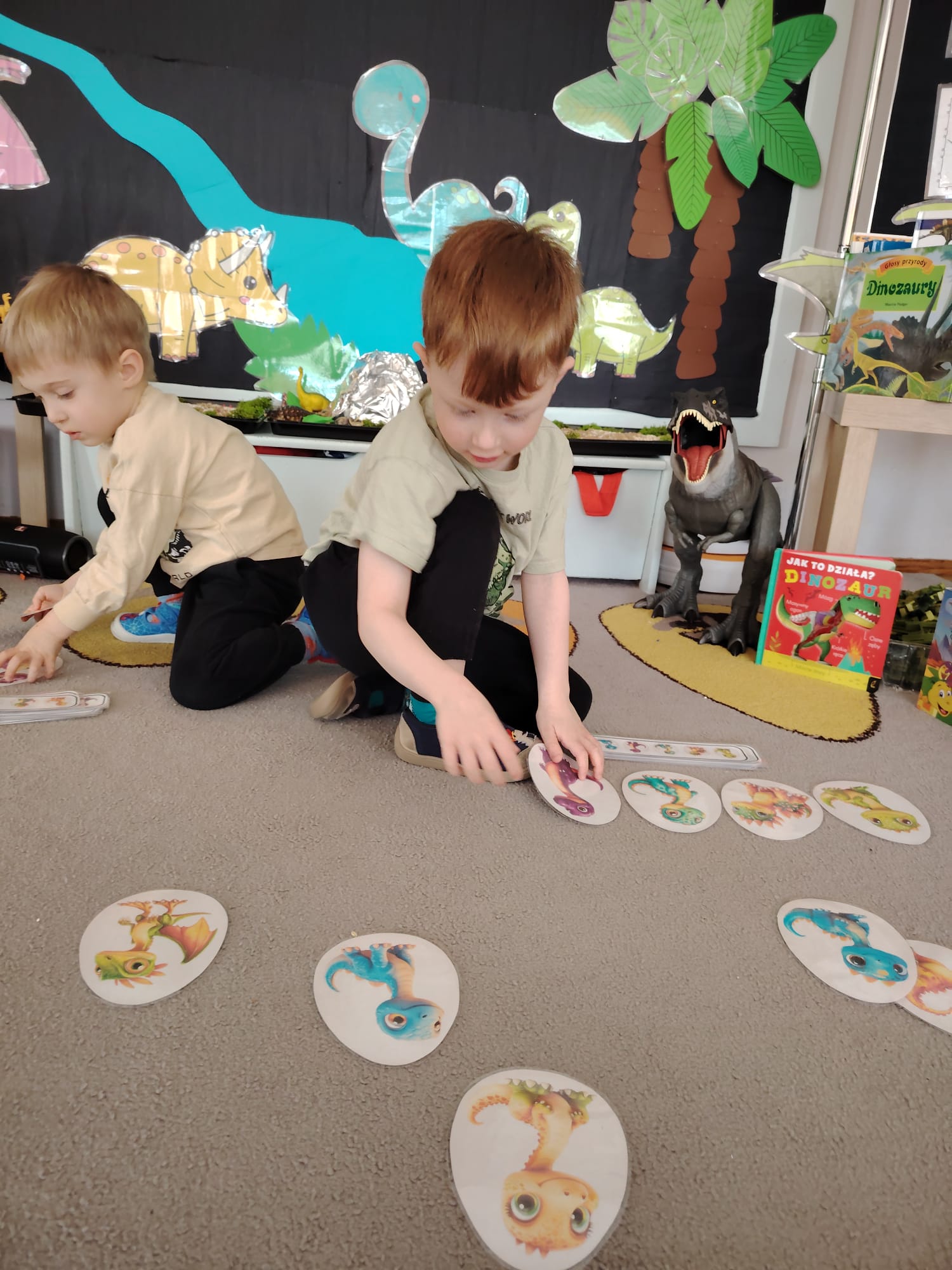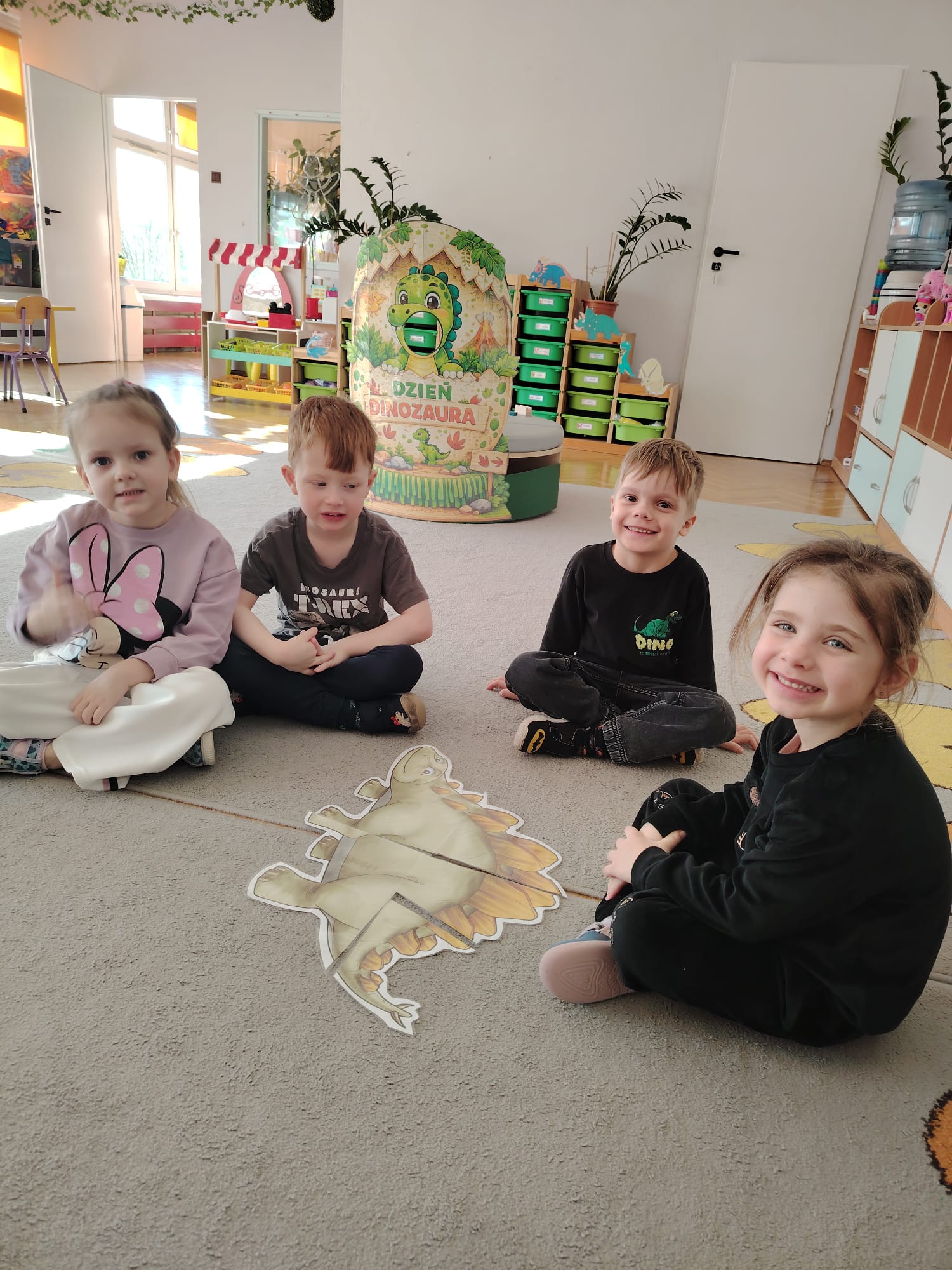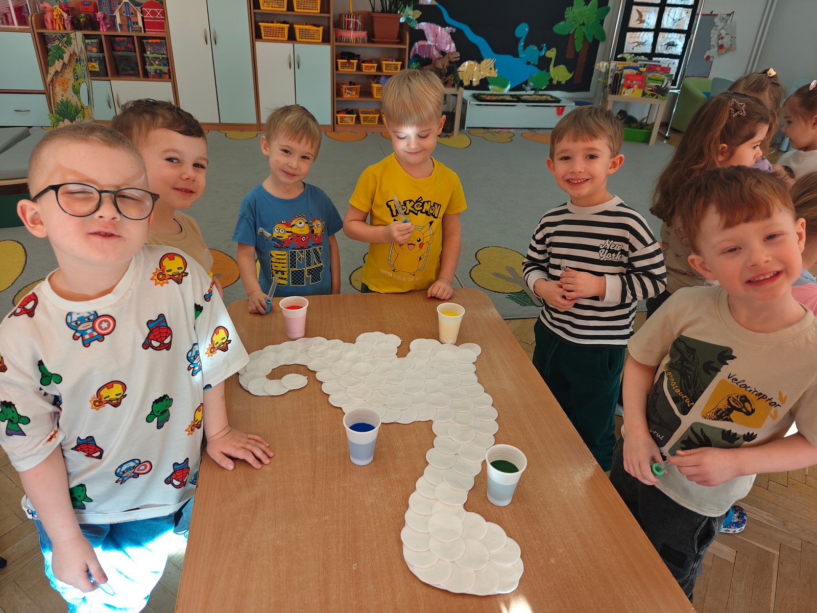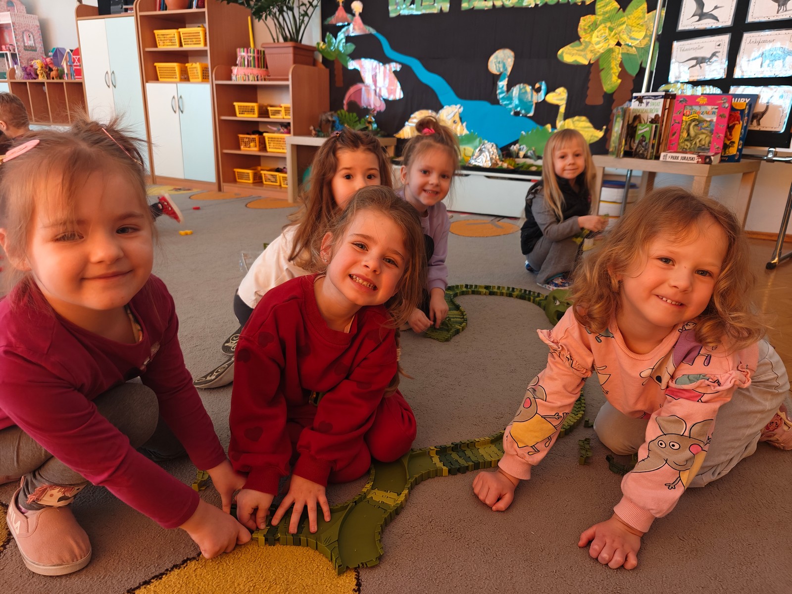 W tym tygodniu w grupie II zrealizowany został projekt edukacyjny pt. „Tajemnice prehistorycznego świata dinozaurów”, którego głównym celem było: rozbudzanie ciekawości poznawczej dzieci; poznawanie świata prehistorycznych zwierząt – dinozaurów; rozwijanie wyobraźni, kreatywności oraz aktywności twórczej dzieci; wspieranie wszechstronnego rozwoju poprzez zabawę, doświadczenia i obserwację.