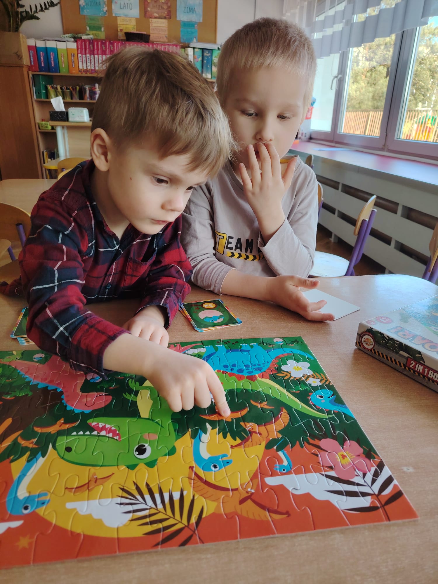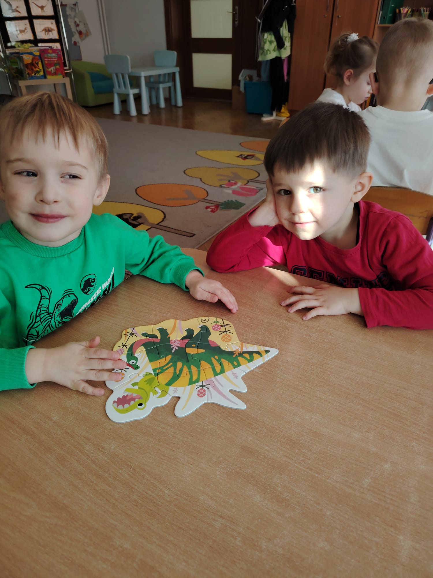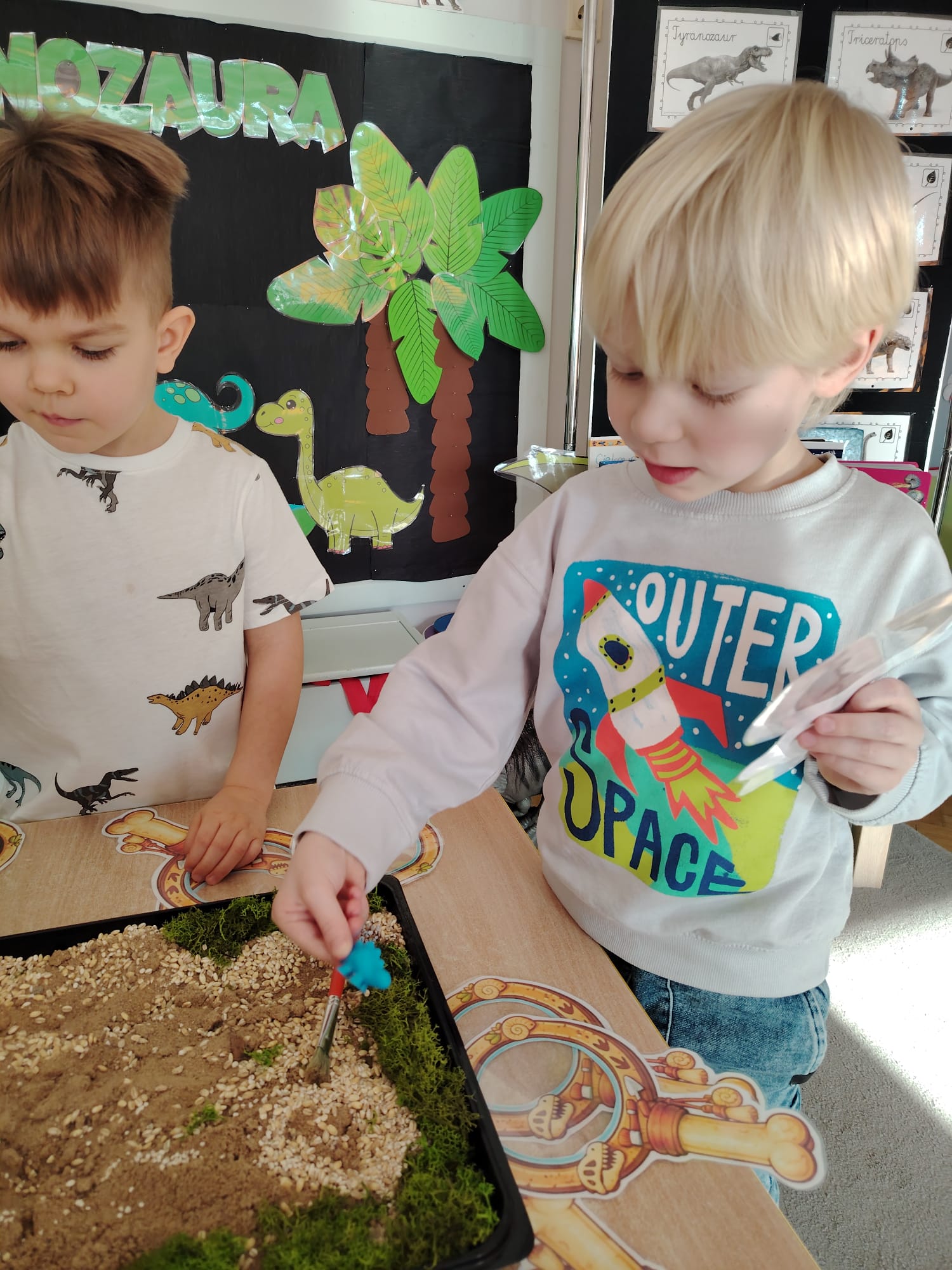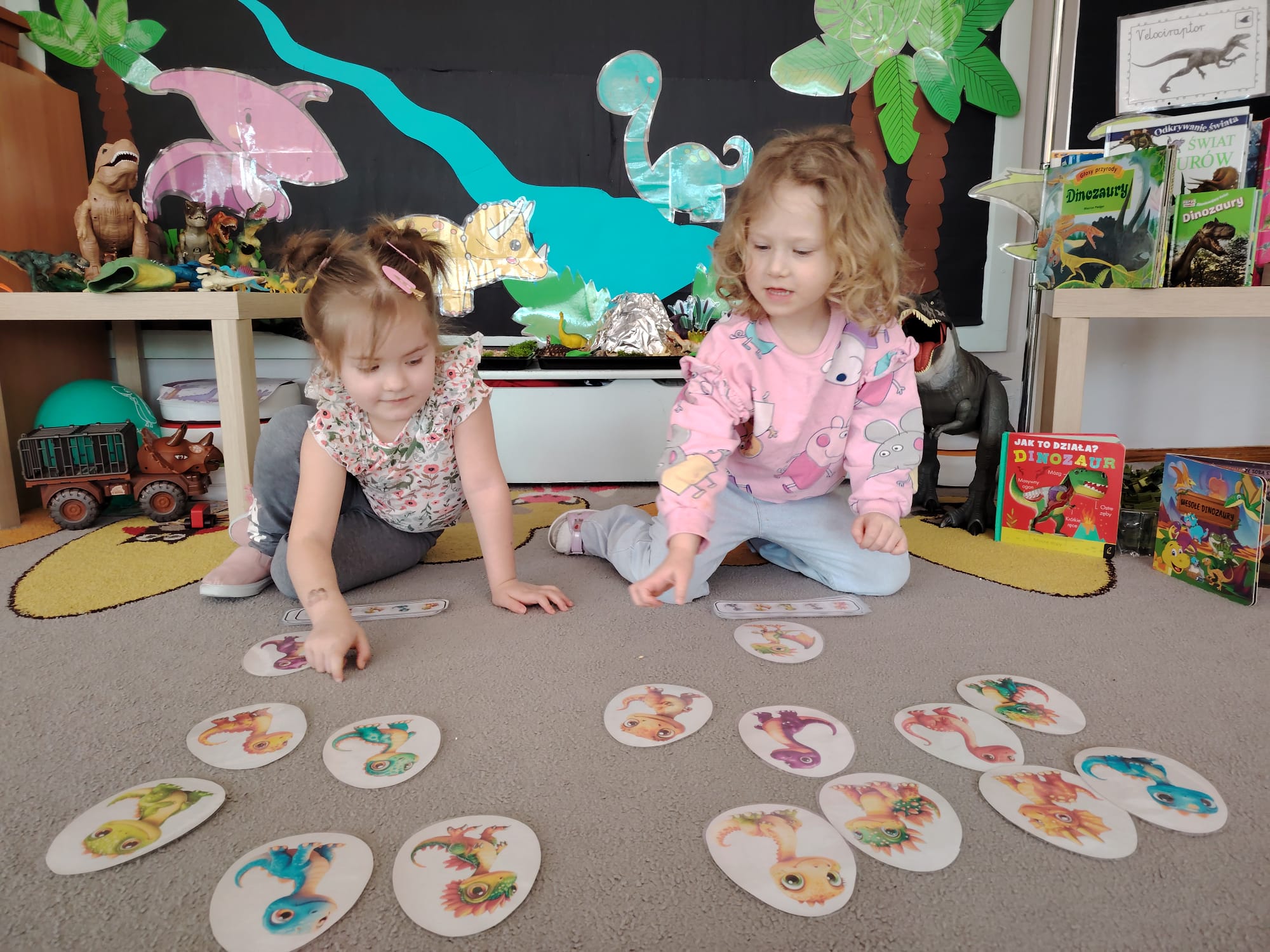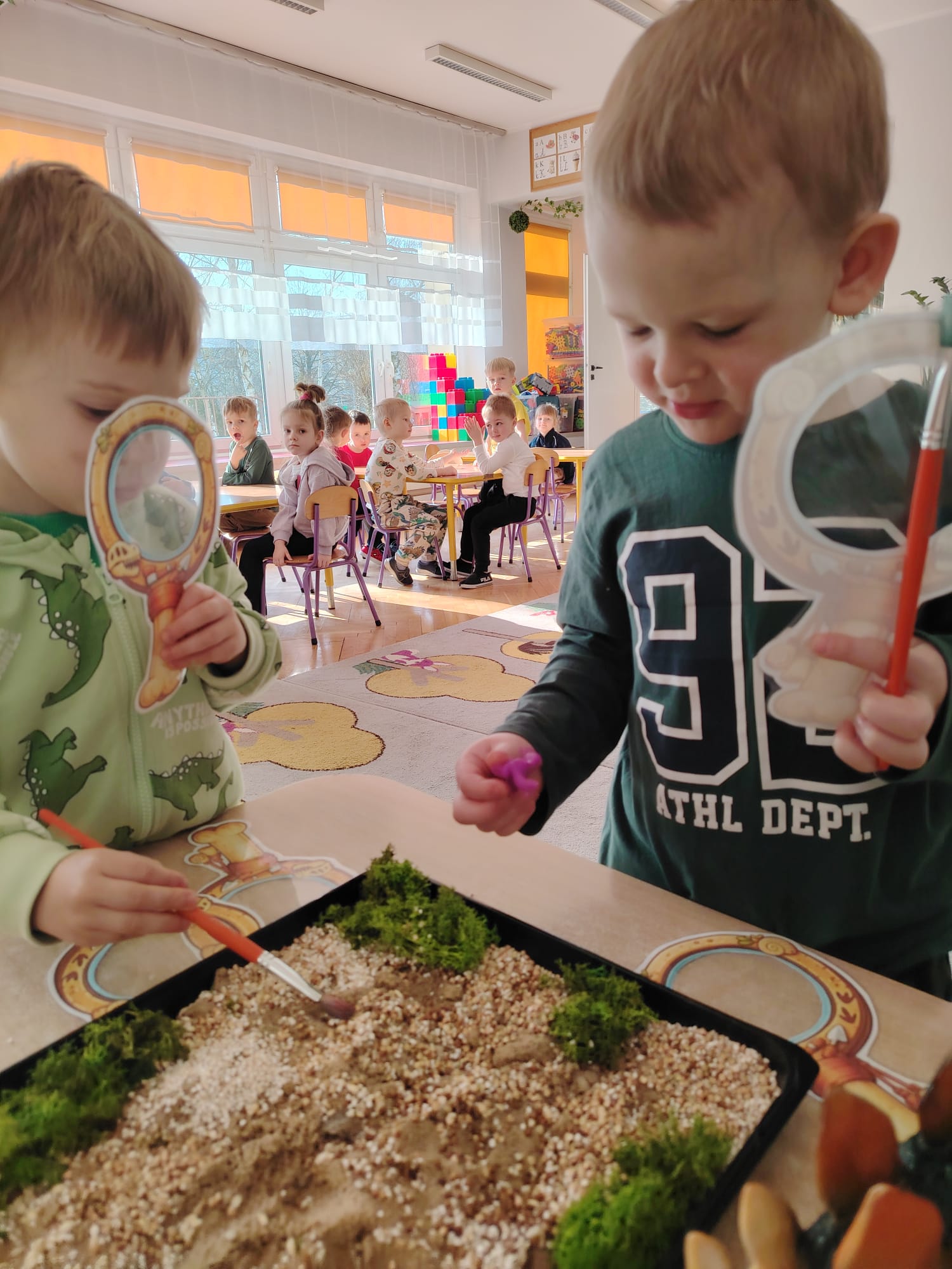 W tym tygodniu w grupie II zrealizowany został projekt edukacyjny pt. „Tajemnice prehistorycznego świata dinozaurów”, którego głównym celem było: rozbudzanie ciekawości poznawczej dzieci; poznawanie świata prehistorycznych zwierząt – dinozaurów; rozwijanie wyobraźni, kreatywności oraz aktywności twórczej dzieci; wspieranie wszechstronnego rozwoju poprzez zabawę, doświadczenia i obserwację.
