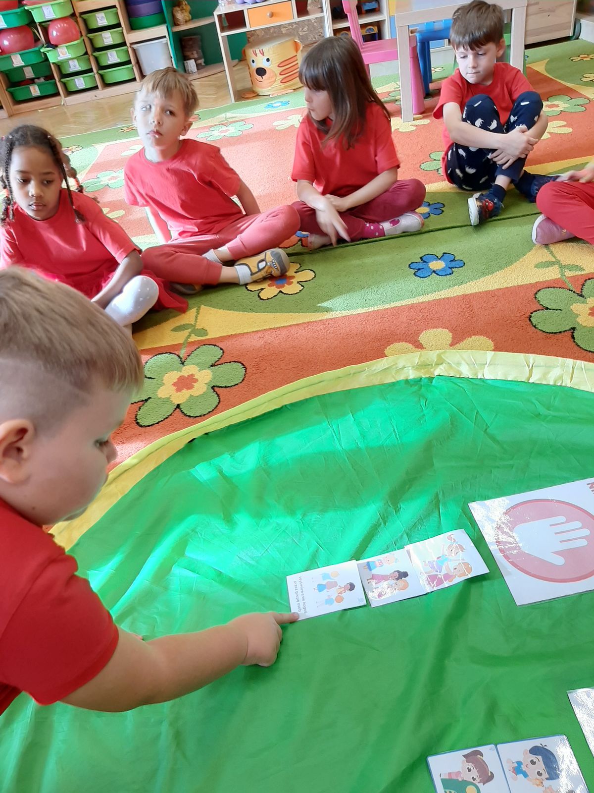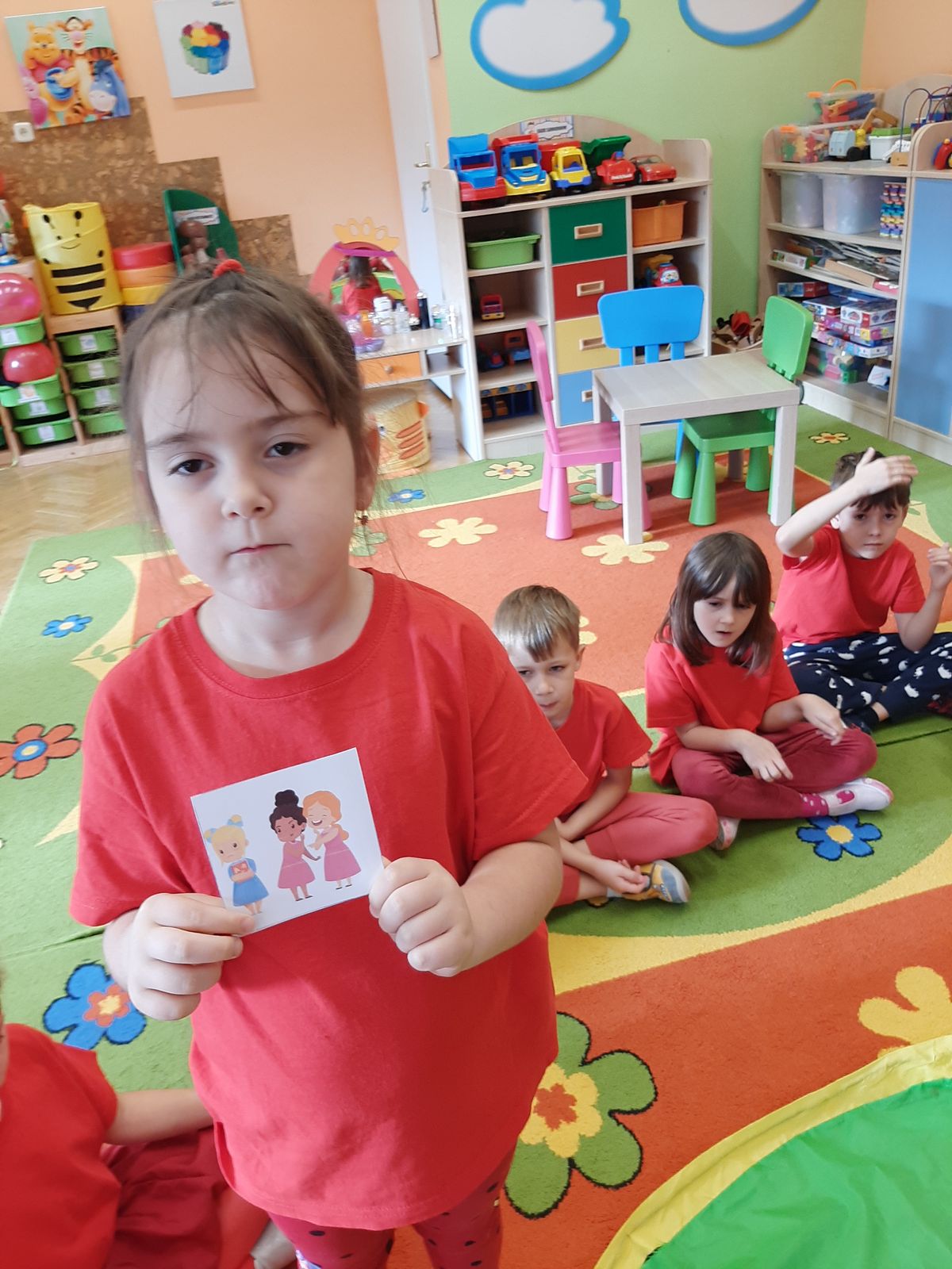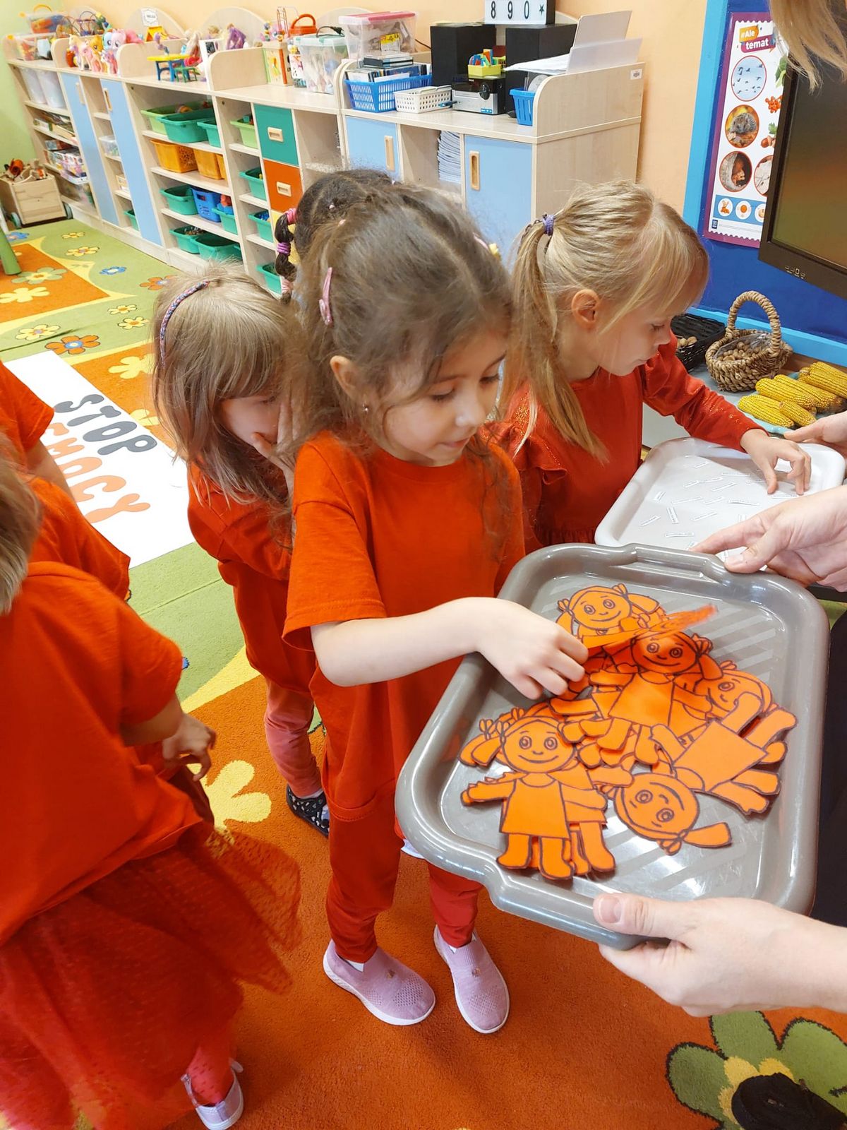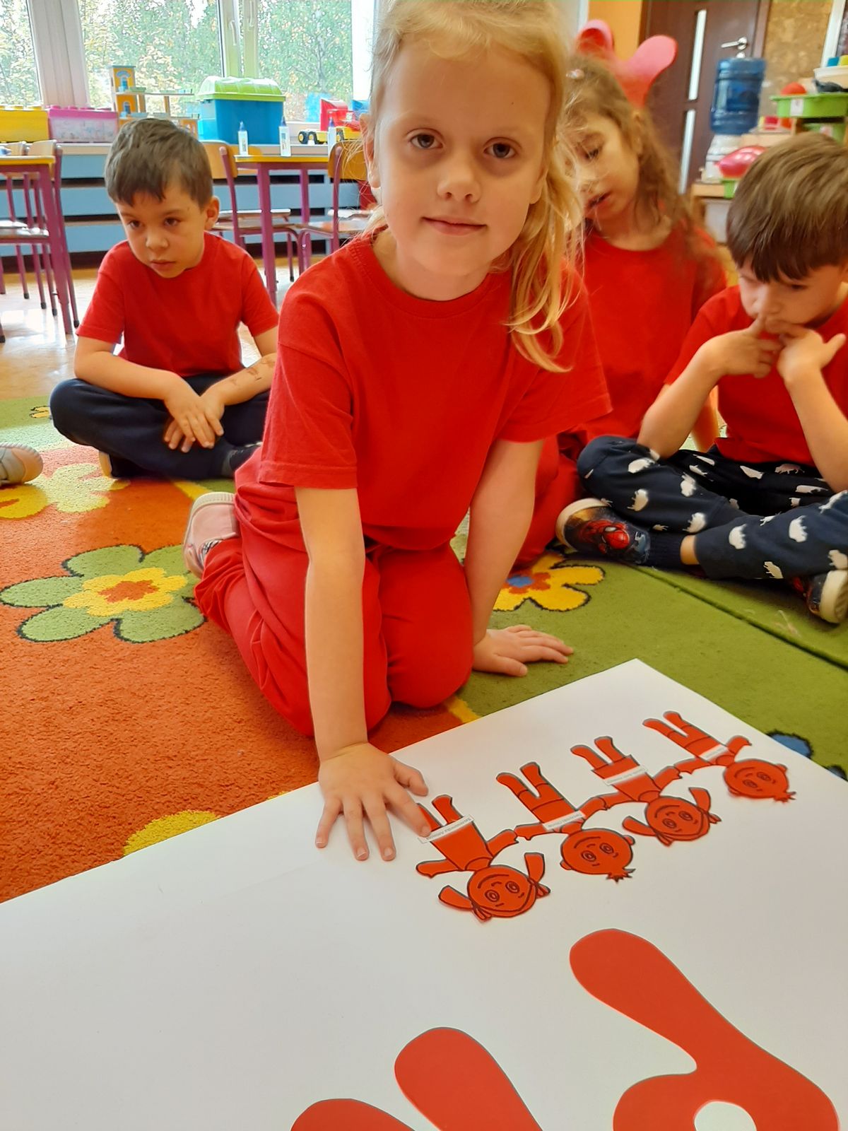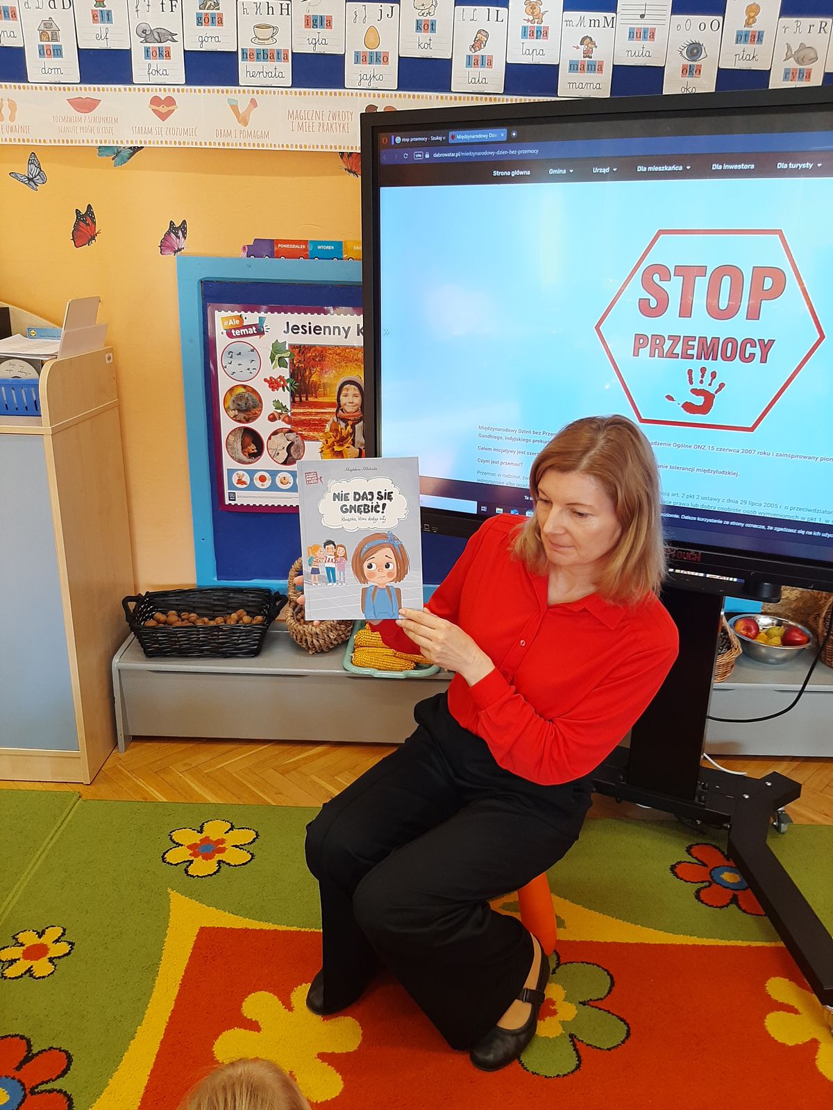 Przedszkolaki z grupy V dołączyły do Ogólnopolskiej kampanii „Dzieciństwo bez przemocy”, której celem jest przeciwdziałanie przemocy wobec dzieci. Dzieci uczestniczyły w zajęciach edukacyjnych pod hasłem „Stop Przemocy” podczas których wysłuchały opowiadania z książki „Nie daj się gnębić!” M. Młodnickiej i obejrzały film edukacyjny pt. „Powiedz Nie!”. Przedszkolaki zastanawiały się czym jest przemoc i jak można jej przeciwdziałać. Dowiedziały się w jaki sposób reagować na przemoc, gdzie szukać pomocy i dlaczego nie wolno pozostawać obojętnym wobec krzywdy innych. Dzieci uczestniczyły w zabawach ruchowych, odgrywały scenki dramowe i rozmawiały o różnych sytuacjach w domu lub przedszkolu, kiedy mogą powiedzieć: Stop Przemocy !. W symbolicznym geście solidarności i wsparcia kampanii w naszej sali zapaliliśmy czerwone światło jako wyraz sprzeciwu przeciw krzywdzeniu dzieci. Na zakończenie wspólnie wykonaliśmy plakat. To były bardzo ważne zajęcia, które pokazały, że każdy ma prawo do bezpieczeństwa i szacunku.