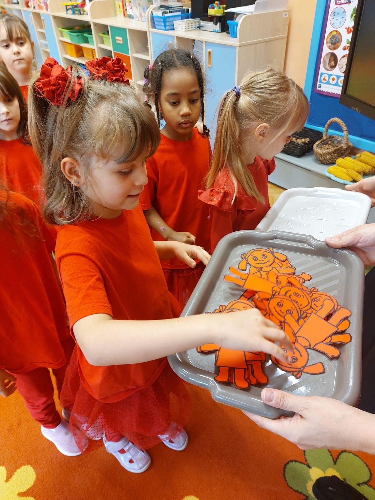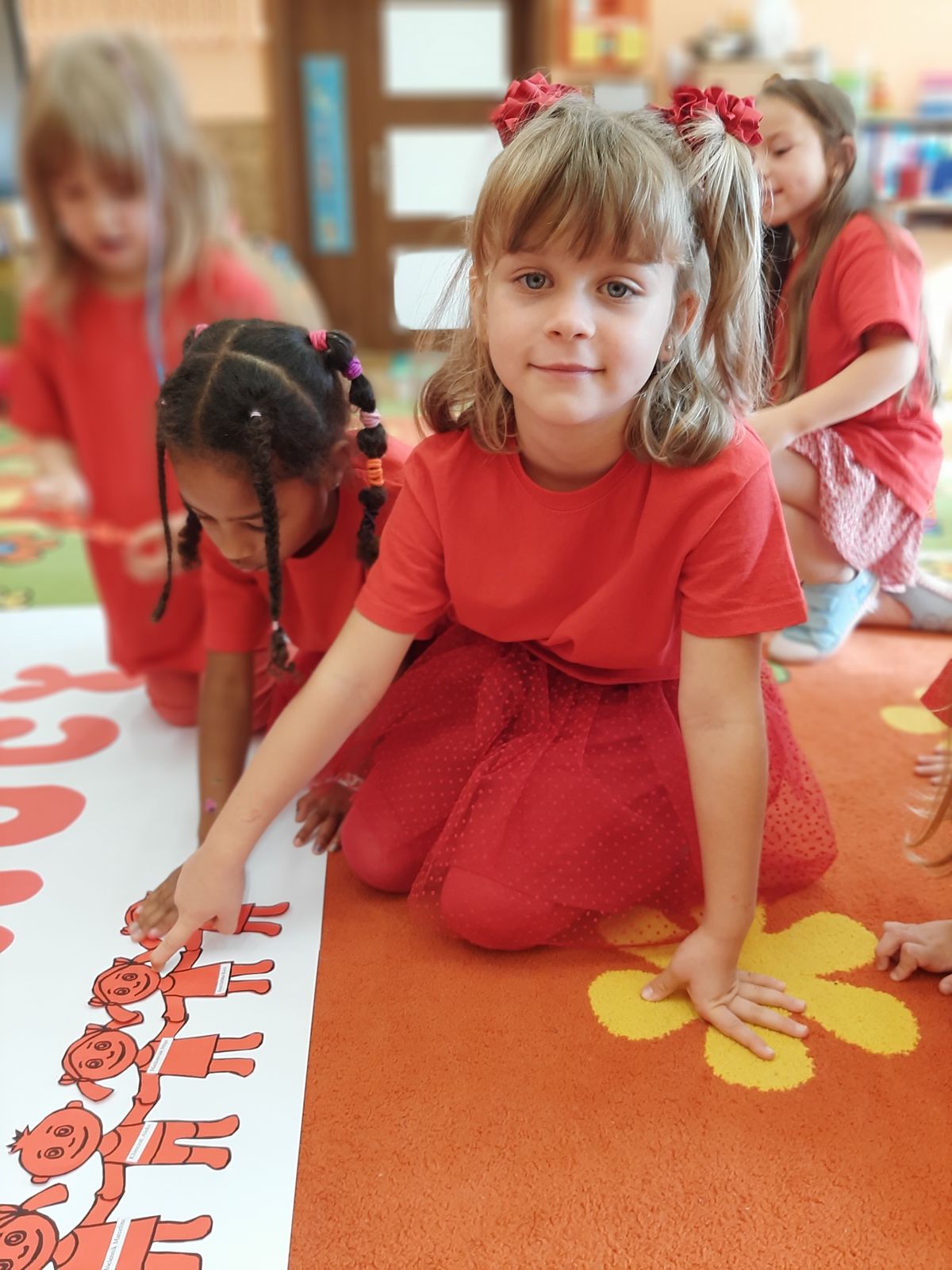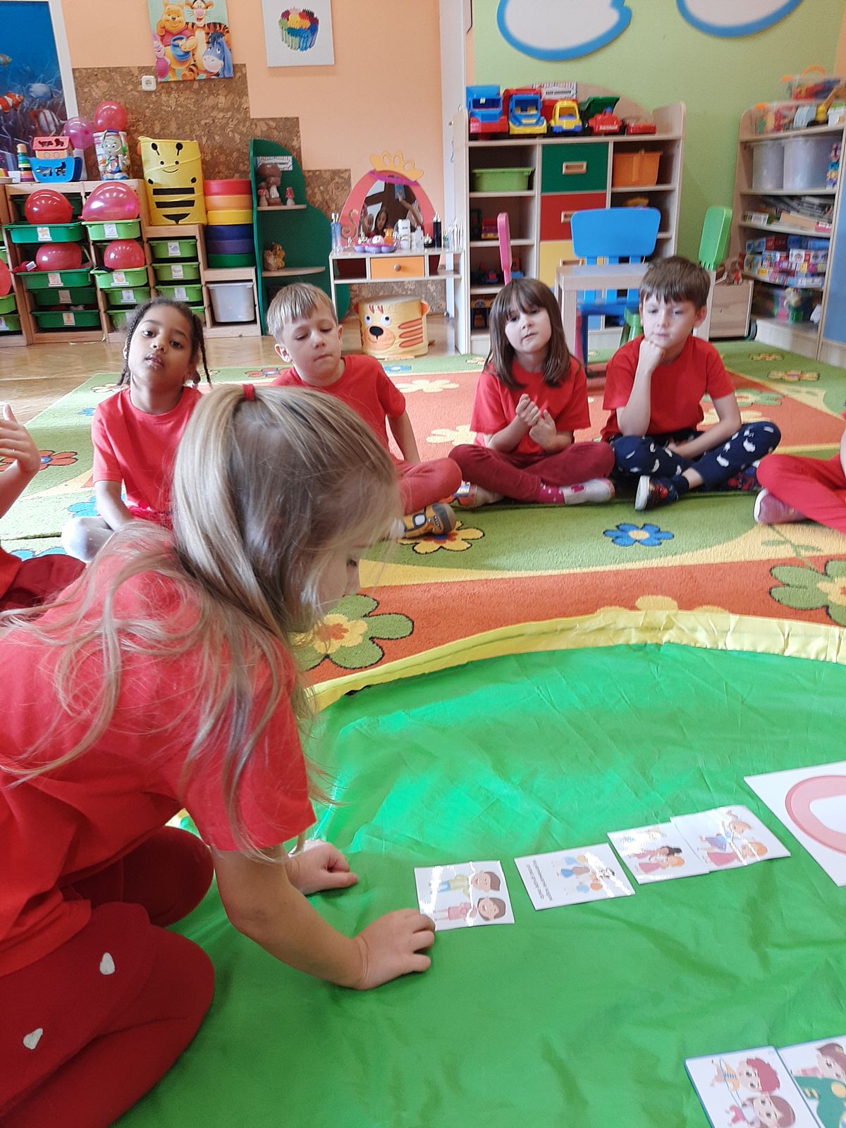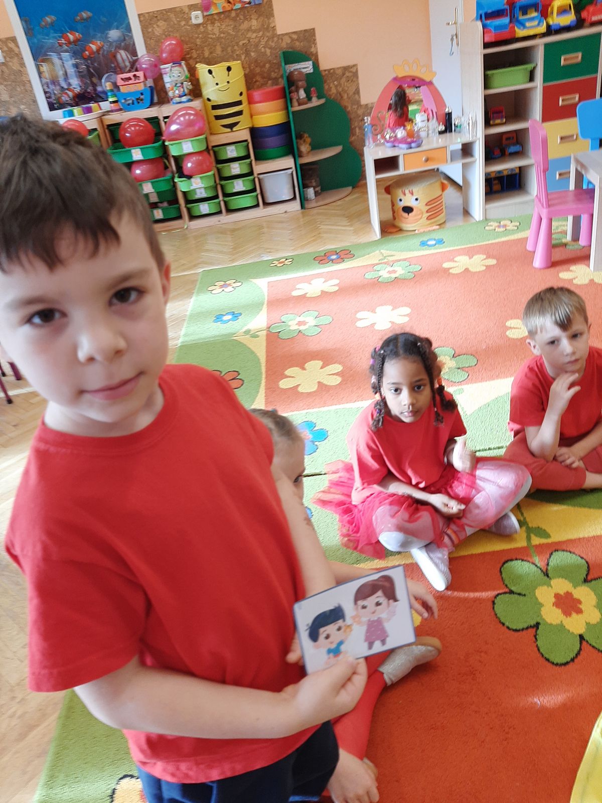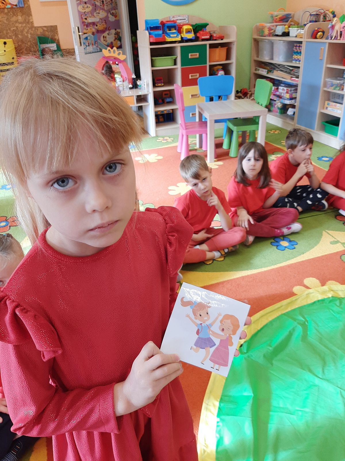 Przedszkolaki z grupy V dołączyły do Ogólnopolskiej kampanii „Dzieciństwo bez przemocy”, której celem jest przeciwdziałanie przemocy wobec dzieci. Dzieci uczestniczyły w zajęciach edukacyjnych pod hasłem „Stop Przemocy” podczas których wysłuchały opowiadania z książki „Nie daj się gnębić!” M. Młodnickiej i obejrzały film edukacyjny pt. „Powiedz Nie!”. Przedszkolaki zastanawiały się czym jest przemoc i jak można jej przeciwdziałać. Dowiedziały się w jaki sposób reagować na przemoc, gdzie szukać pomocy i dlaczego nie wolno pozostawać obojętnym wobec krzywdy innych. Dzieci uczestniczyły w zabawach ruchowych, odgrywały scenki dramowe i rozmawiały o różnych sytuacjach w domu lub przedszkolu, kiedy mogą powiedzieć: Stop Przemocy !. W symbolicznym geście solidarności i wsparcia kampanii w naszej sali zapaliliśmy czerwone światło jako wyraz sprzeciwu przeciw krzywdzeniu dzieci. Na zakończenie wspólnie wykonaliśmy plakat. To były bardzo ważne zajęcia, które pokazały, że każdy ma prawo do bezpieczeństwa i szacunku.