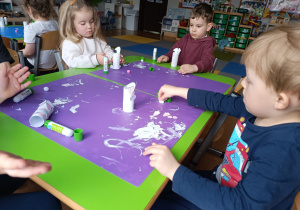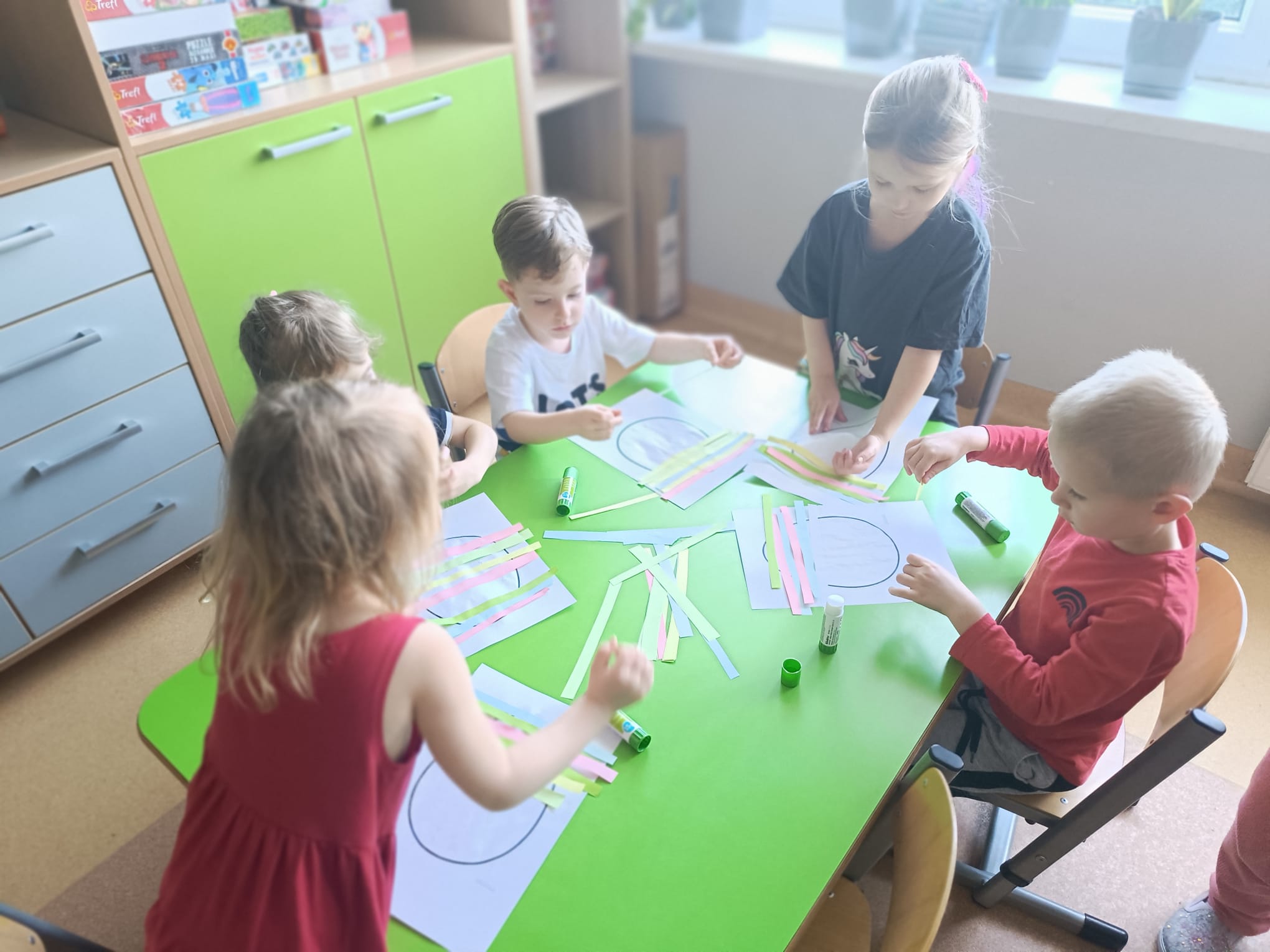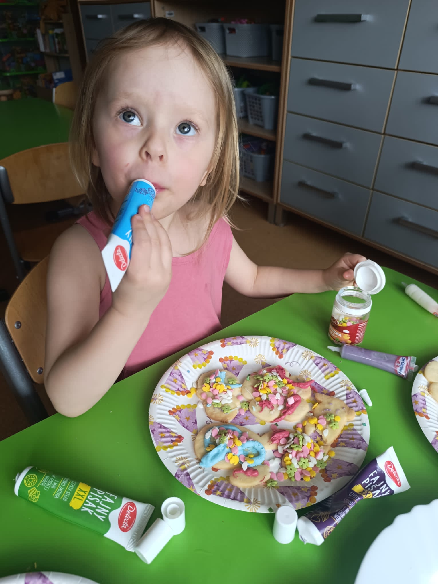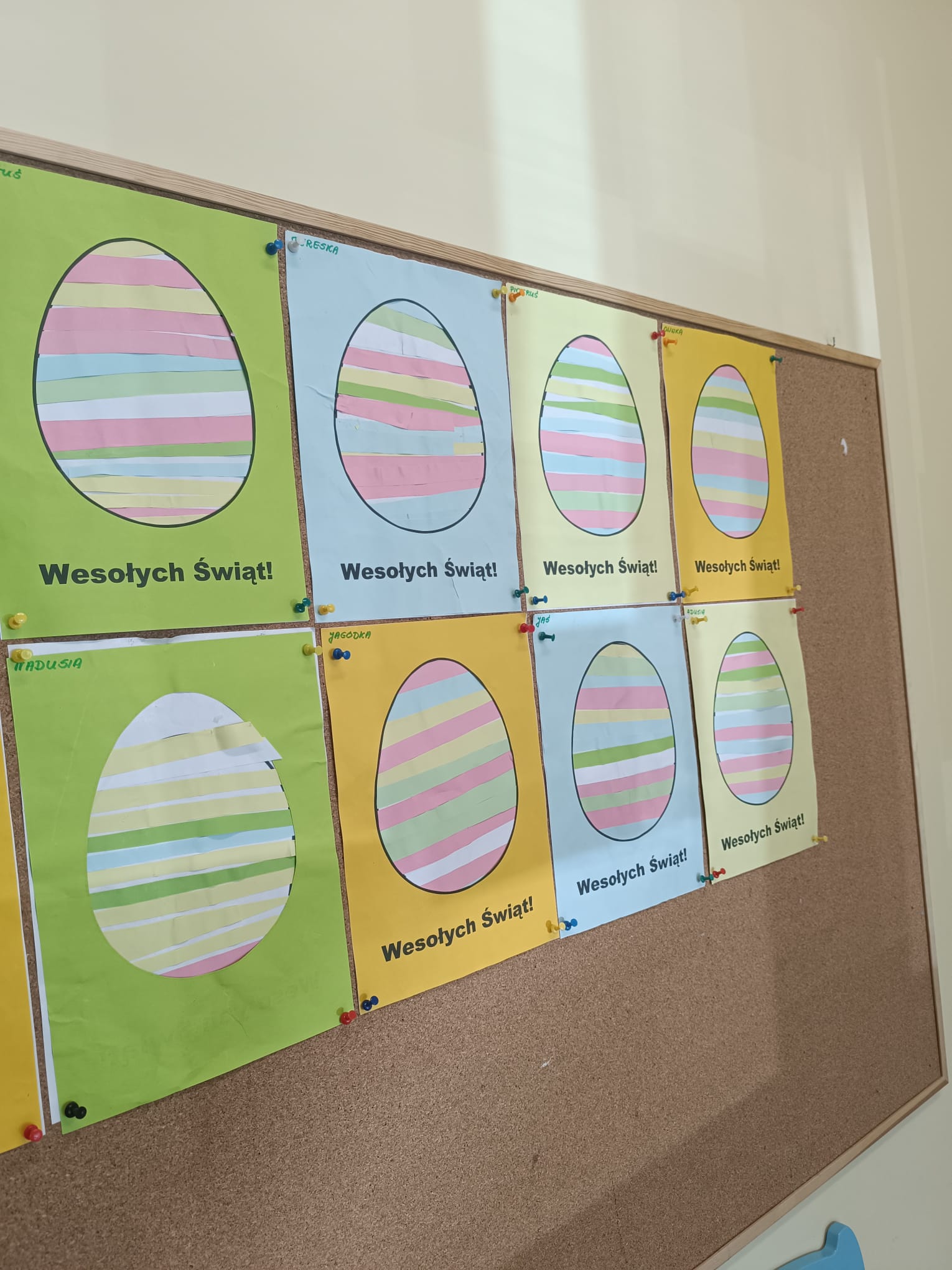 Święta Wielkanocne to jeden z najradośniejszych i najbardziej kolorowych świąt w roku. Niosą w sobie wiele radości i nadziei, zwiastują pełnię życia. Mają swój niepowtarzalny zapach, smak oraz atmosferę. W naszym przedszkolu nigdy nie zapominamy o obchodach Świąt Wielkanocnych. Zawsze starannie się do nich przygotowujemy. Ostatnie dni były doskonałą okazją do przybliżenia dzieciom zwyczajów i tradycji związanych z tymi świętami: kolorowe palemki, malowane pisanki, koszyczek ze święconką, wielkanocny stół z przysmakami oraz mokry śmigus – dyngus, to tylko niektóre z nich. Był to również bardzo inspirujący, twórczy i kreatywny czas, podczas którego powstało mnóstwo fantastycznych prac. Z początkiem tygodnia dzieci zasiały aromatyczną rzeżuchę, która będzie doskonałym dodatkiem do wielkanocnych potraw oraz piękną dekoracją świątecznego stołu. Najwięcej radości dzieciom przyniosło dekorowanie świątecznych maślanych ciasteczek, które upiekła dla nas mamusia Antosi – za które bardzo serdecznie dziękujemy. Przygotowania do świąt upłynęły nam zatem w bardzo radosnej, kolorowej oraz … smacznej … atmosferze.