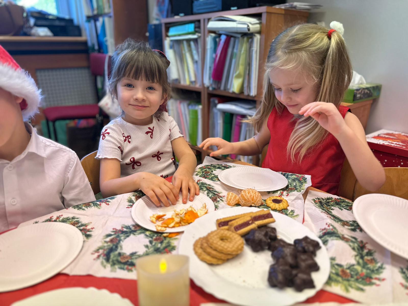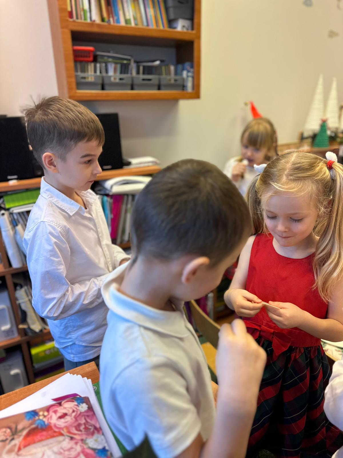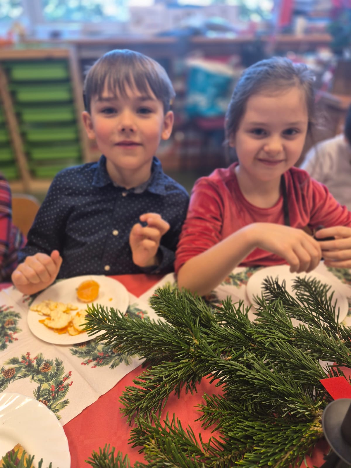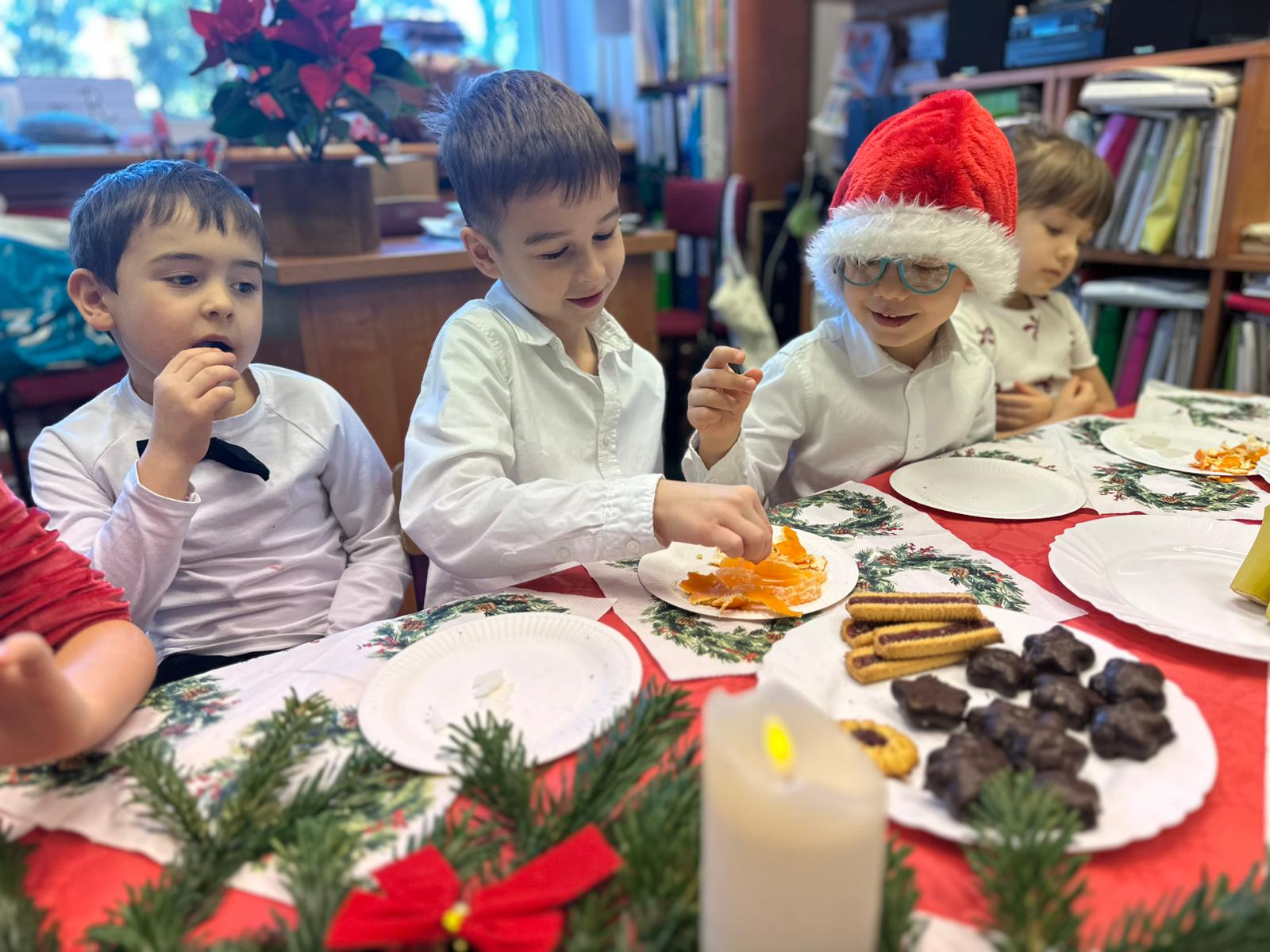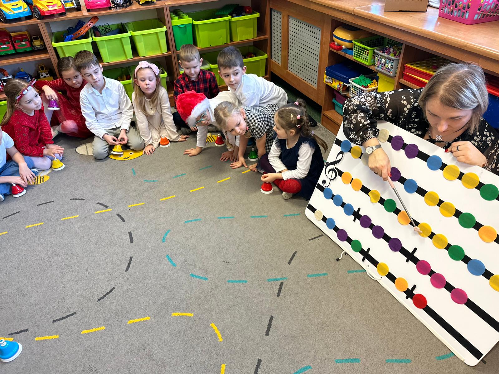 Przedszkole to miejsce gdzie uczymy się nie tylko pisać, śpiewać, tańczyć, poznawać literki ale również współdziałać i współtworzyć idealne miejsce do wszechstronnego rozwoju. W dniu 19. 12.2025 przedszkolaki z gr III zasiadły do wigilii grupowej. Jak w każdej rodzinie, również w naszej przedszkolnej najważniejsze były życzenia świąteczne i podzielenie się opłatkiem. Powiedzenie sobie nawzajem czegoś miłego staje się magicznym tym bardziej, że w chwili zapominamy o tych innych niemiłych sytuacjach. Następnie dzieci odświętnie ubrane zasiadły do pięknie nakrytego stołu, z siankiem pod obrusem ,by wspólnie zaśpiewać kolędę i cieszyć się swoim towarzystwem. Po uroczystej wigilii dzieci zagrały na kolorowych dzwonkach kolędę Jesteśmy przedszkolną rodzinką i wspólnie tworzymy piękne wspomnienia i wspólnie uczymy się wielu zasad życia. Życzymy wszystkim tak pięknych wspomnień z przedszkola jakie my mamy.