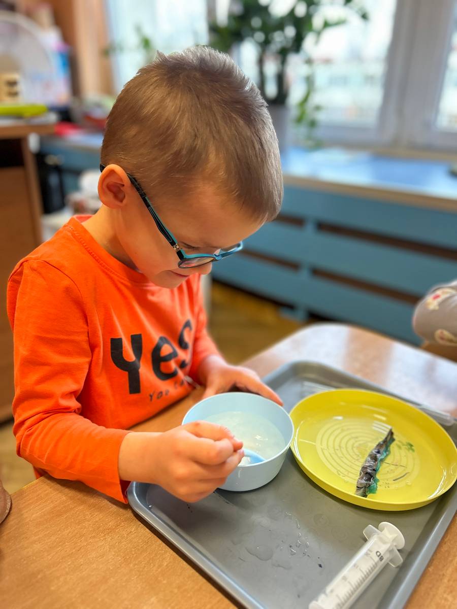 Wiosna to czas gdzie do życia budzą się nie tylko rośliny, drzewa, zwierzęta. Podczas wiosennych eksperymentów przedszkolaki bliżej poznały życie robaczków, dżdżownic które są tak potrzebne w przyrodzie. Każdy przedszkolak z uśmiechem na twarzy podjął się wykonania kolorowego robaczka z papieru, który rozwijał się poprzez pokropienie wodą z pipety. Ogromną radość dzieciom sprawiło wykonanie swojej dżdżownicy, którą przedszkolaki mogły zabrać ze sobą do domu. Zabawy z KidsLab to super sprawa!