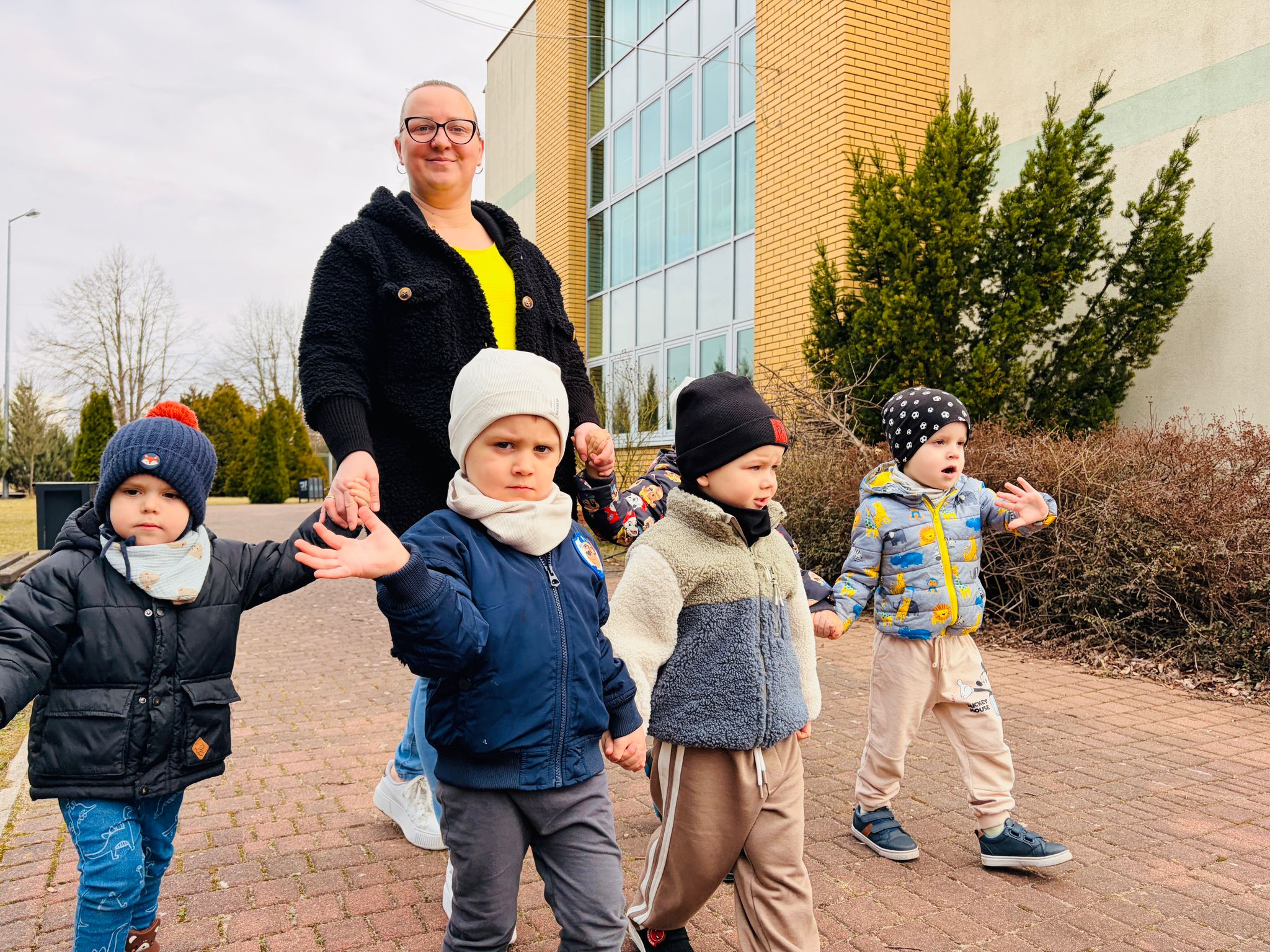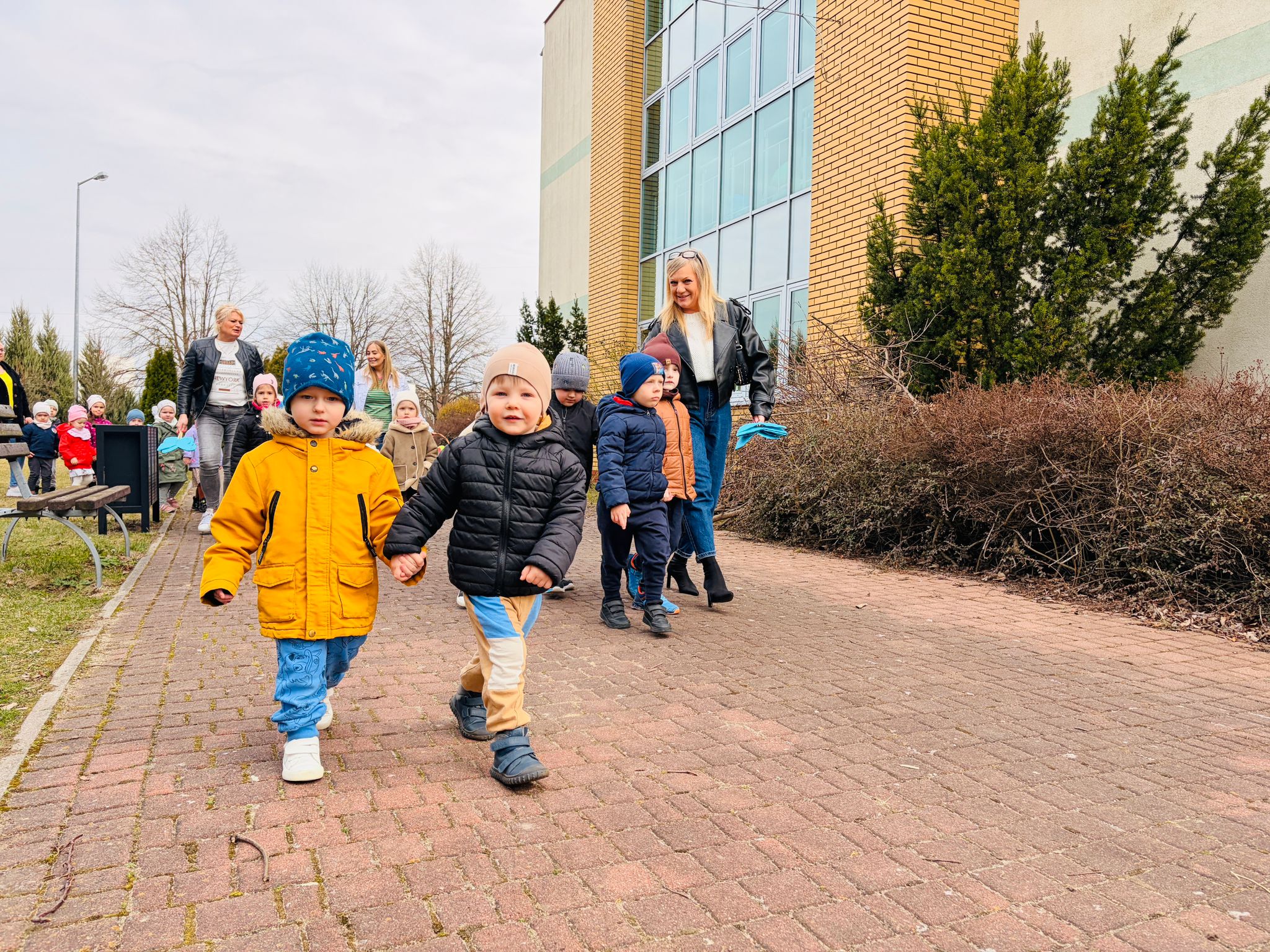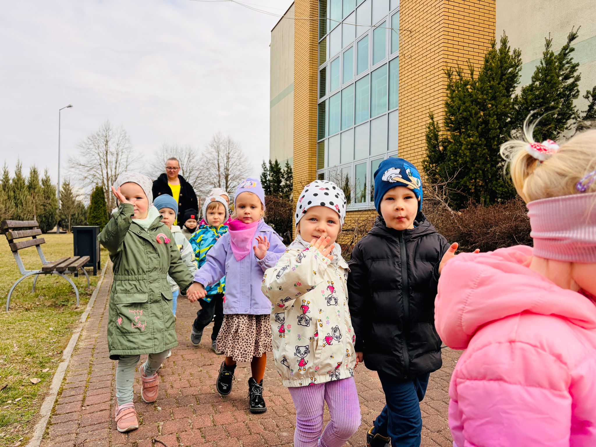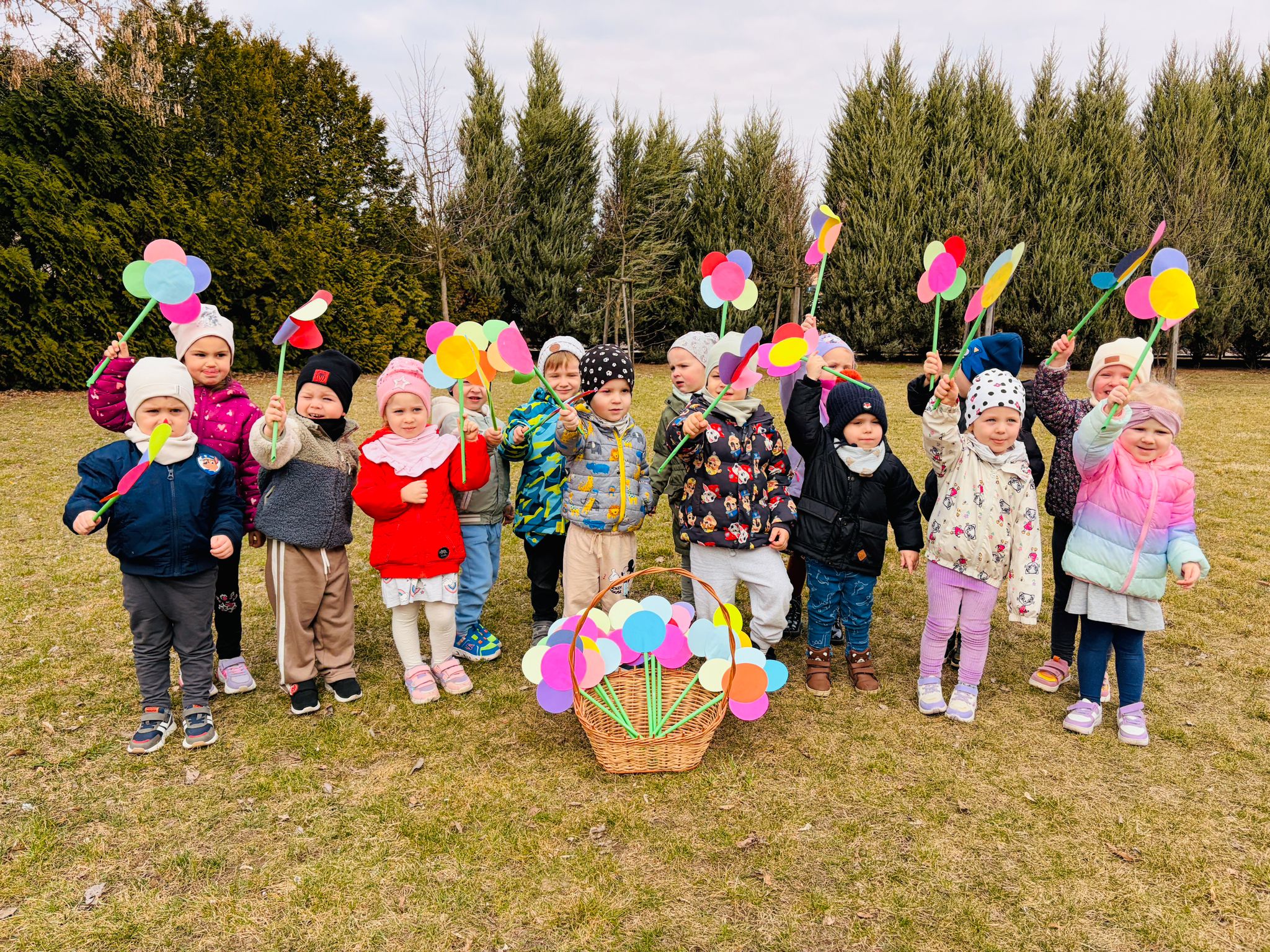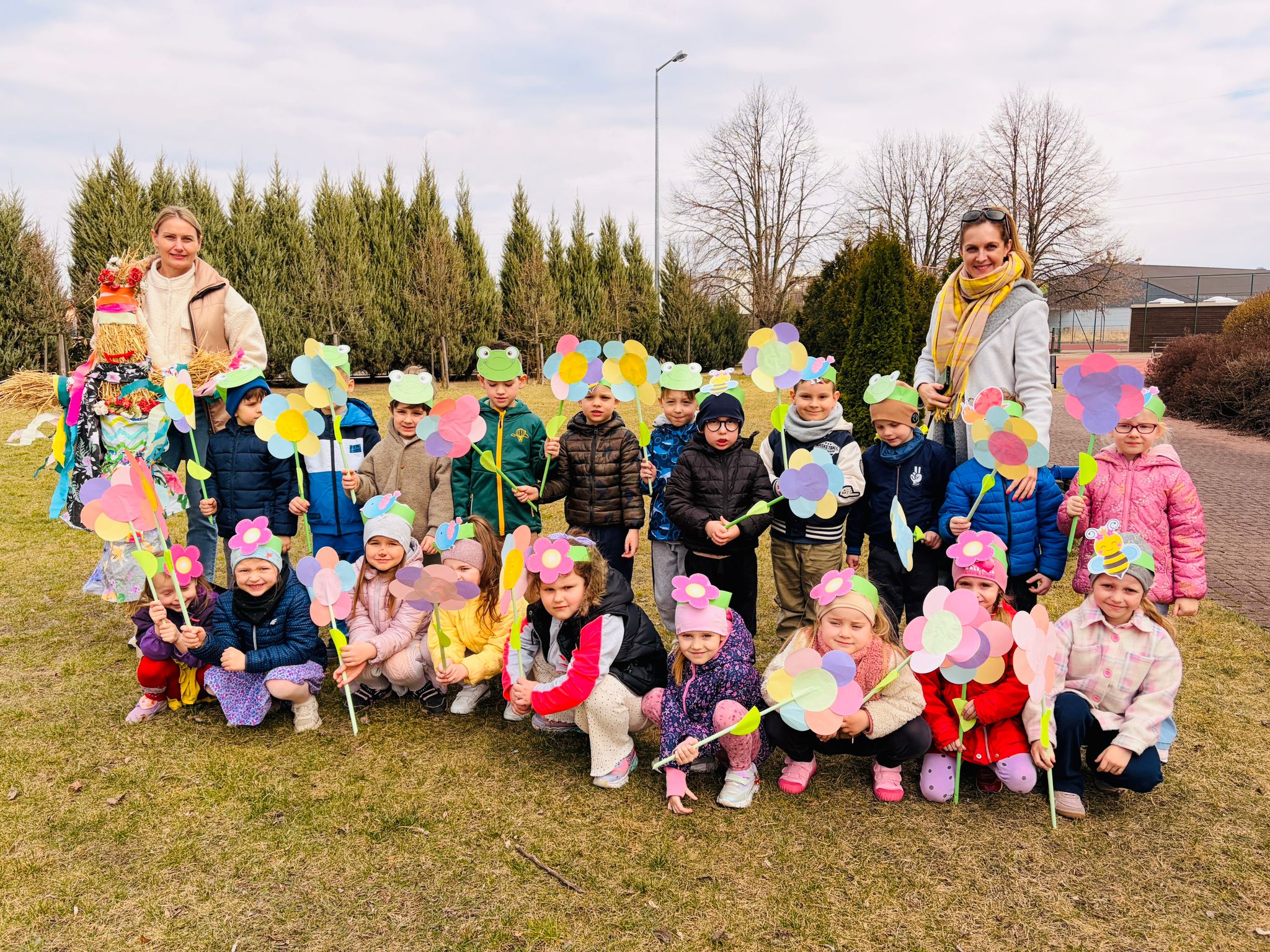 Dzieci wspólnie zaśpiewały piosenkę przed budynkiem przedszkola, a następnie wyruszyły w kolorowym pochodzie ulicami osiedla. Z kwiatami i motylami w dłoniach oraz uśmiechem na twarzach dzieci śpiewały wiosenne piosenki, wprowadzając wszystkich w radosny nastrój. Wiosno! Jak dobrze, że jesteś J