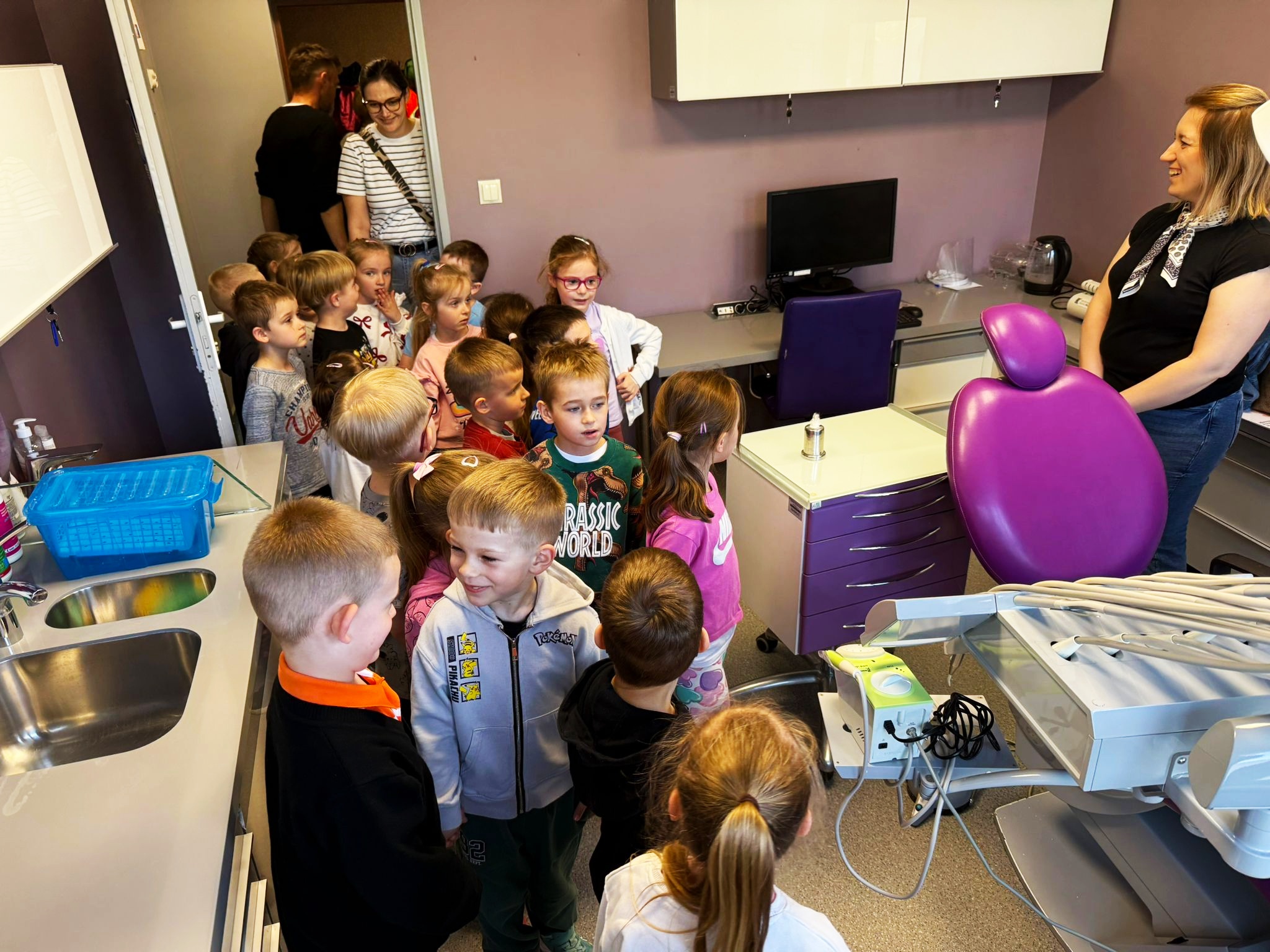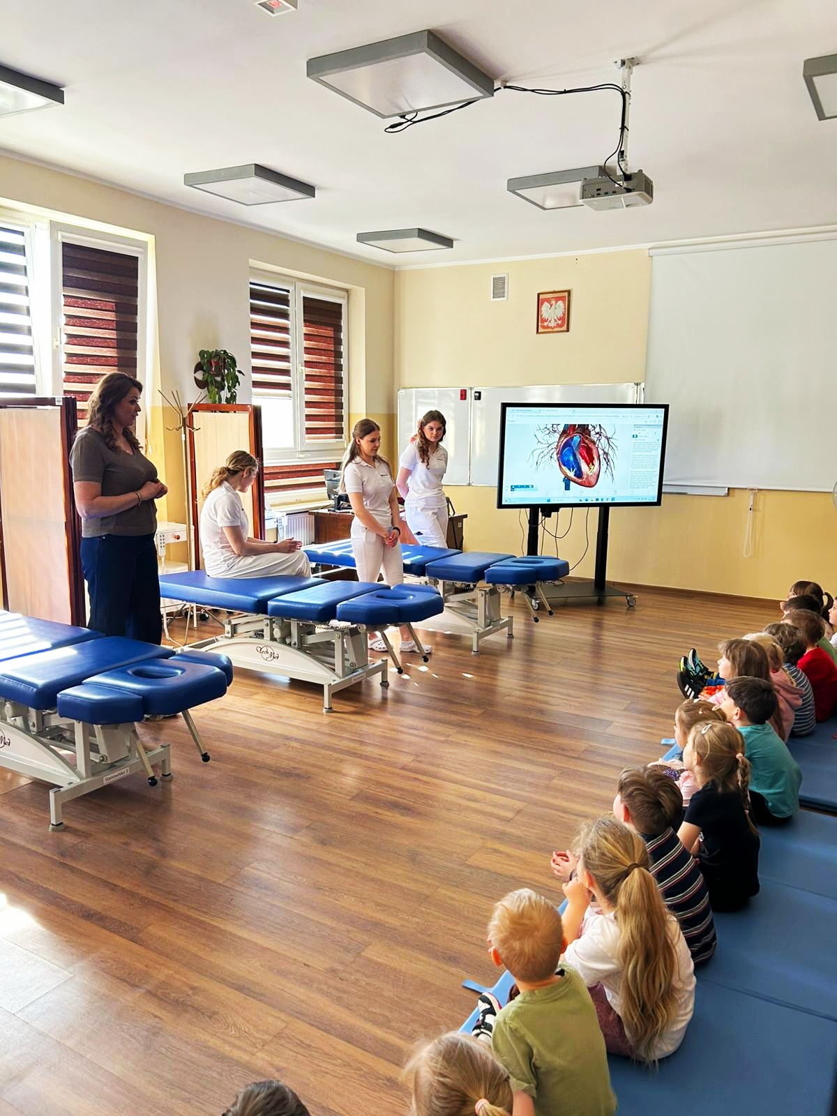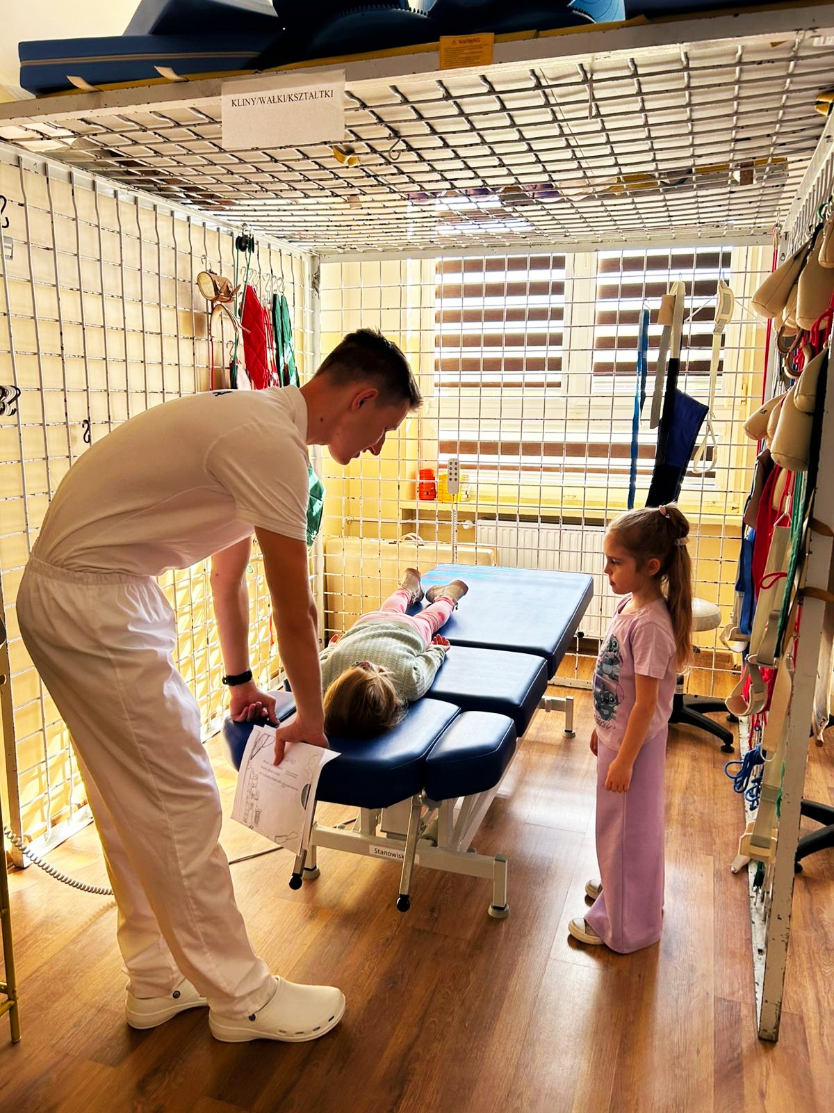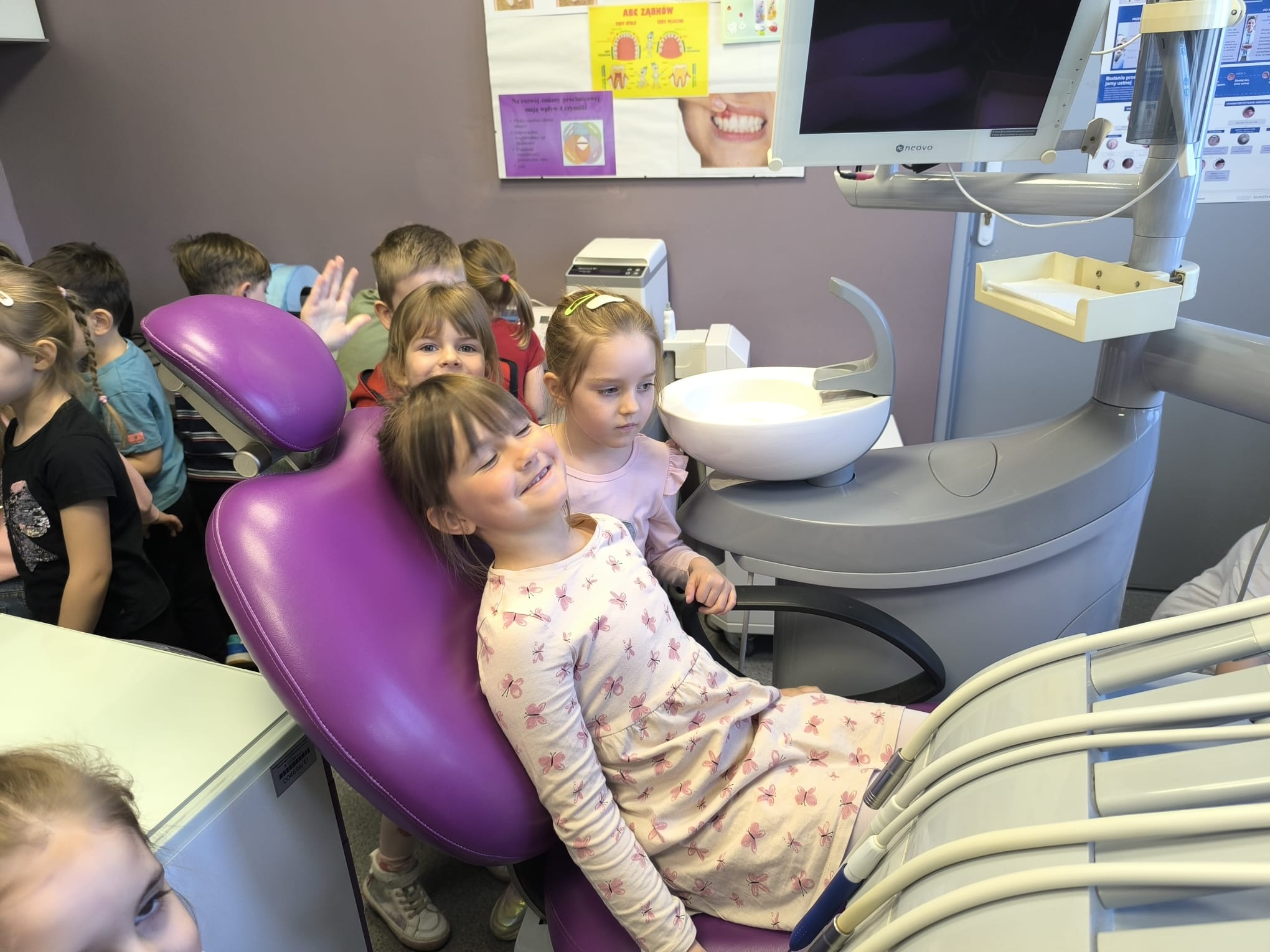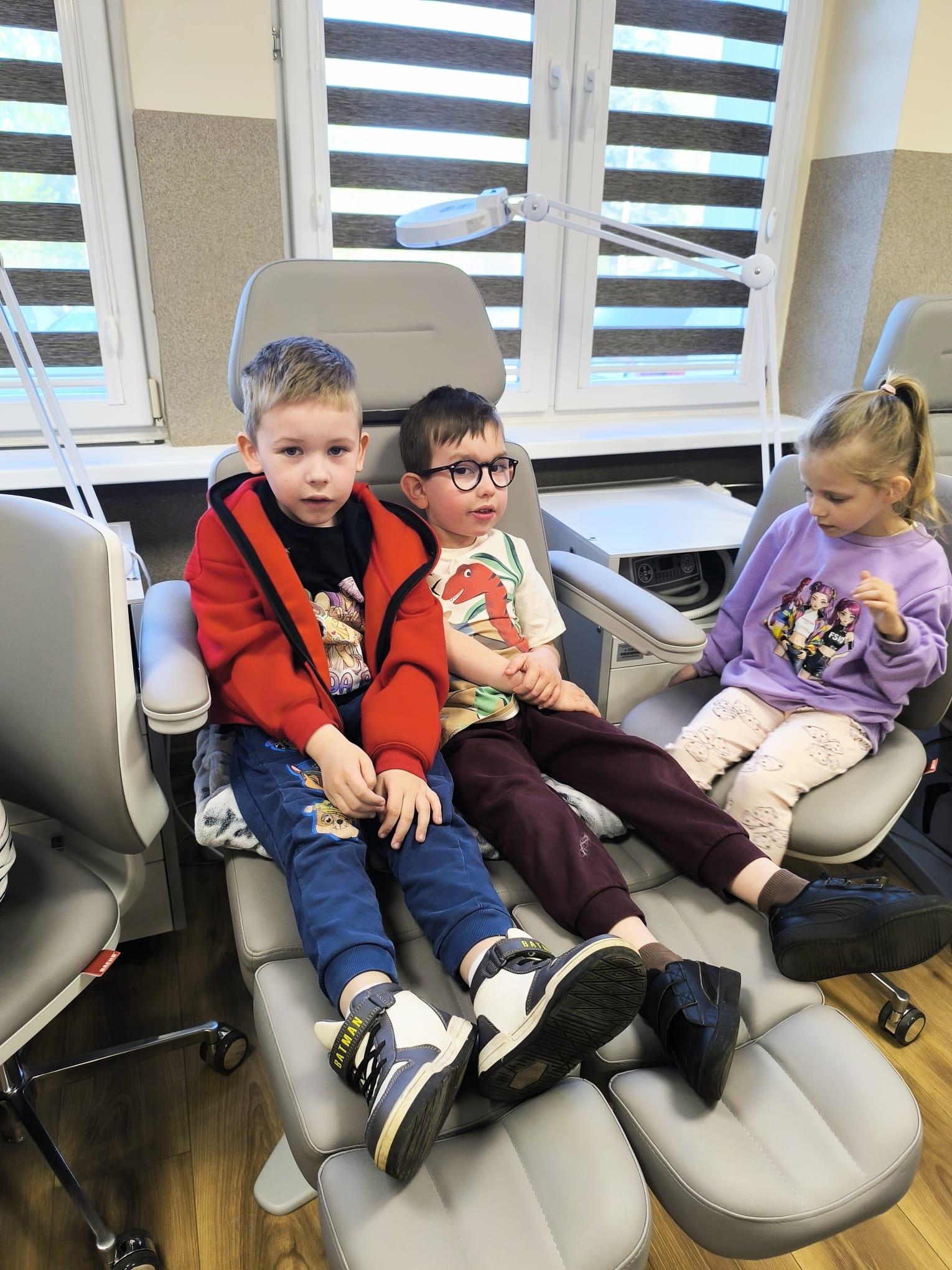 Przedszkolaki z gr. XI i XII w środę 22 kwietnia uczciły niedawno obchodzony Dzień Zdrowia wycieczką do Wielkopolskiego Samorządowego Centrum Kształcenia Zawodowego i Ustawicznego "Medyk" w Koninie. Wizyta w tym miejscu okazała się niezwykle cenną lekcją dla poszerzania wiedzy dzieci na temat zdrowia i prawidłowego stylu życia. W WSCKZiU mogliśmy usłyszeć o wielu zawodach medycznych, do których szkoła przygotowuje chętne osoby. Widzieliśmy również sale wyposażone w profesjonalny sprzęt, by słuchacze mogli zdobywać wiedzę nie tylko teoretyczną, ale również praktyczną- m.in. salę wyglądającą, jak prawdziwy gabinet dentystyczny, czy salę dla chorych, starszych osób, które wymagają szczególnej opieki. Dzieci na własnej skórze mogły doświadczyć masażu, przekonały się, że farmacja i chemia mają wiele wspólnego z magią, a na koniec kolejny raz udowodniły, że ruch to zdrowie. Nie obyło się również bez pysznego poczęstunku- by zdobyć siły do dalszych działań. Wszystkie aktywności, dzięki uprzejmości pracowników i słuchaczy, odbywały się w fantastycznej atmosferze za co z całego serca dziękujemy- szczególnie Panu Wojciechowi Szymczakowi za udzielenie zgody na odwiedziny placówki i miłe powitanie, Panu Piotrowi Rosińskiemu- dziadkowi naszej Antosi z gr. XII za zainicjowanie spotkania oraz Panu Markowi Sobierajskiemu za organizację i koordynowanie wszystkich atrakcji. Mamy nadzieję, że to nie ostatnia wizyta przedszkolaków w tak ciekawym miejscu