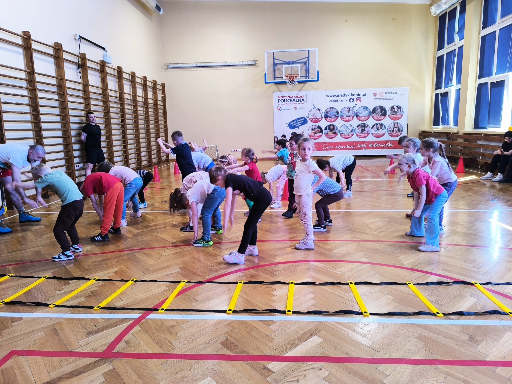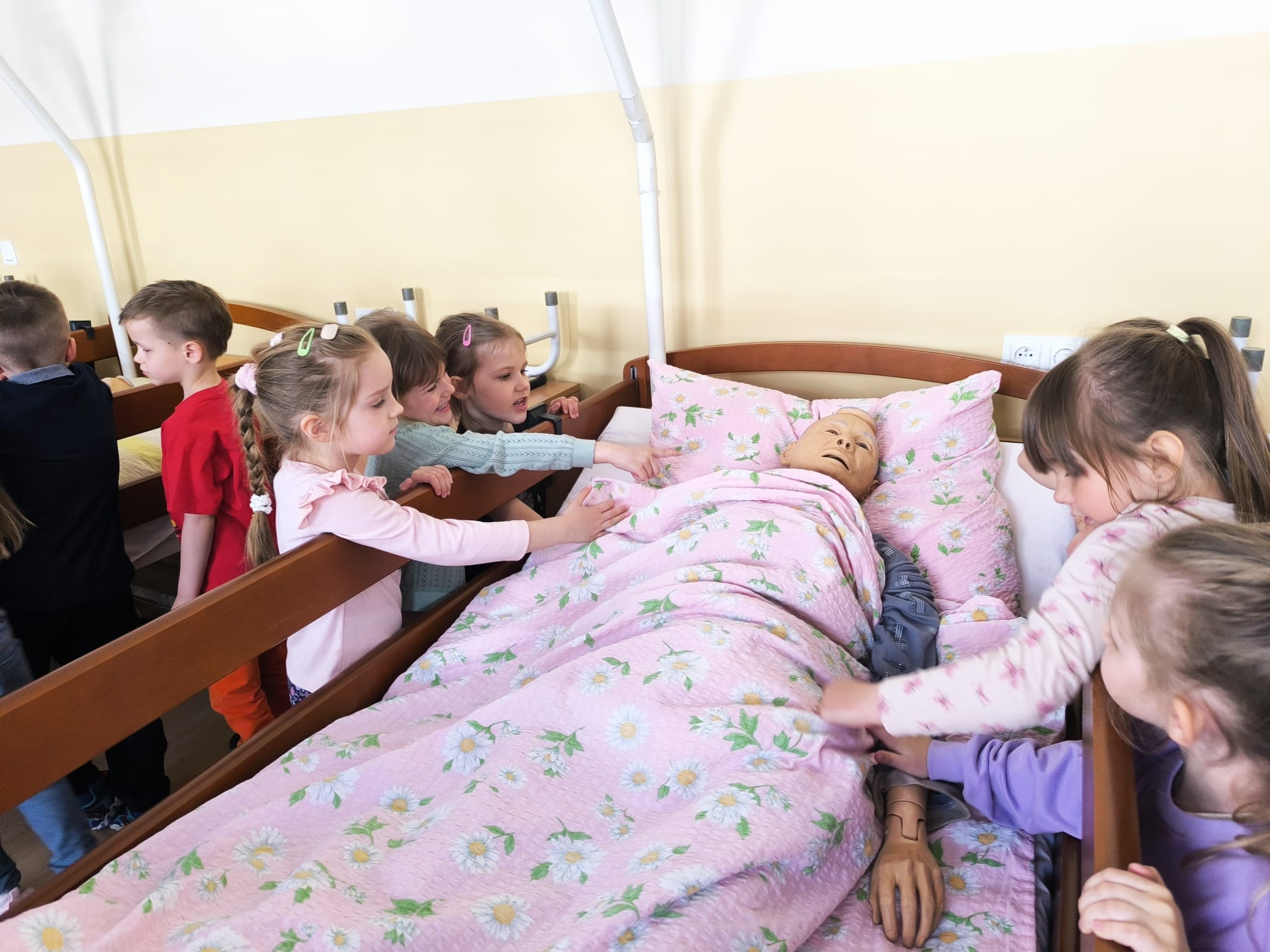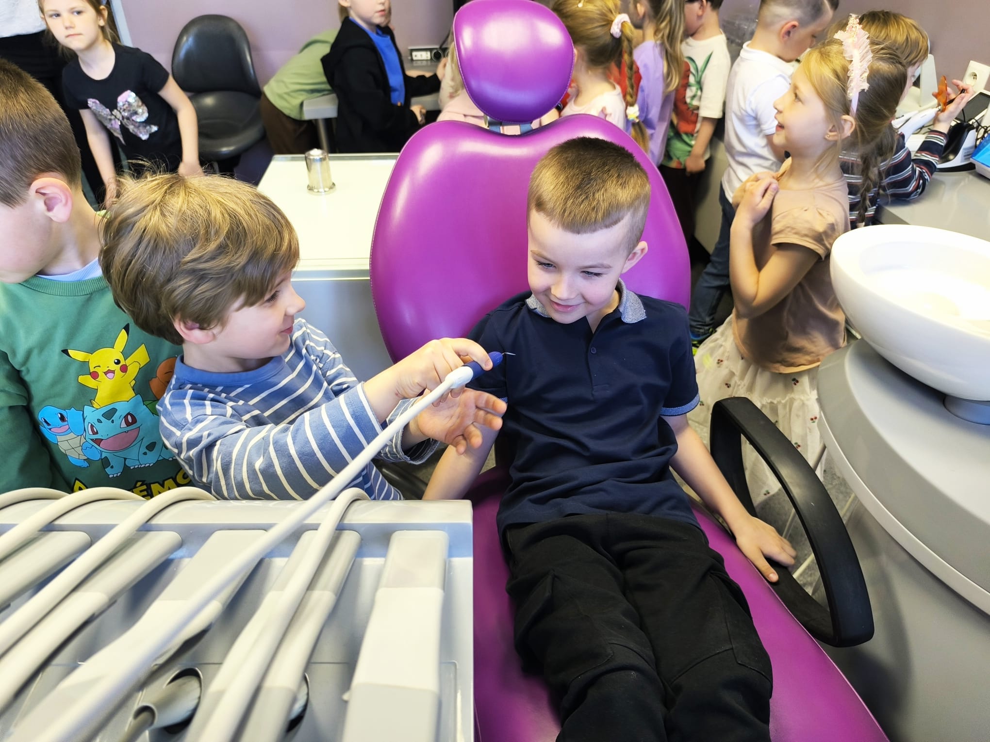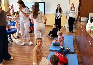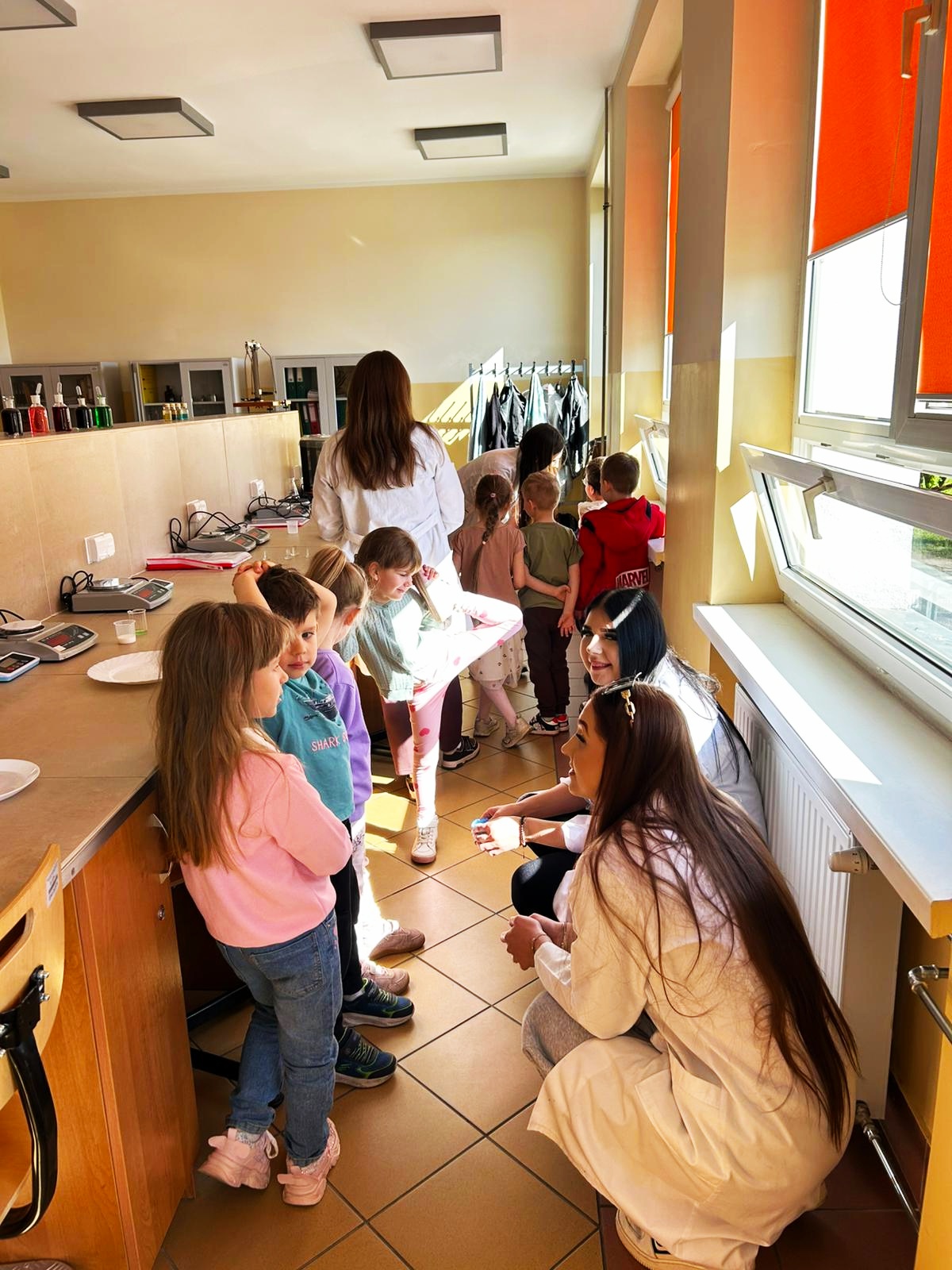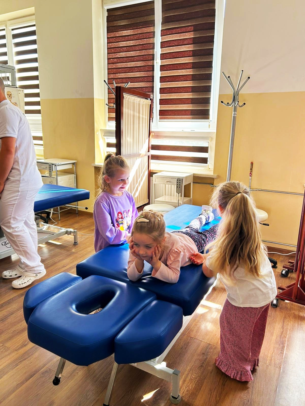 Przedszkolaki z gr. XI i XII w środę 22 kwietnia uczciły niedawno obchodzony Dzień Zdrowia wycieczką do Wielkopolskiego Samorządowego Centrum Kształcenia Zawodowego i Ustawicznego "Medyk" w Koninie. Wizyta w tym miejscu okazała się niezwykle cenną lekcją dla poszerzania wiedzy dzieci na temat zdrowia i prawidłowego stylu życia. W WSCKZiU mogliśmy usłyszeć o wielu zawodach medycznych, do których szkoła przygotowuje chętne osoby. Widzieliśmy również sale wyposażone w profesjonalny sprzęt, by słuchacze mogli zdobywać wiedzę nie tylko teoretyczną, ale również praktyczną- m.in. salę wyglądającą, jak prawdziwy gabinet dentystyczny, czy salę dla chorych, starszych osób, które wymagają szczególnej opieki. Dzieci na własnej skórze mogły doświadczyć masażu, przekonały się, że farmacja i chemia mają wiele wspólnego z magią, a na koniec kolejny raz udowodniły, że ruch to zdrowie. Nie obyło się również bez pysznego poczęstunku- by zdobyć siły do dalszych działań. Wszystkie aktywności, dzięki uprzejmości pracowników i słuchaczy, odbywały się w fantastycznej atmosferze za co z całego serca dziękujemy- szczególnie Panu Wojciechowi Szymczakowi za udzielenie zgody na odwiedziny placówki i miłe powitanie, Panu Piotrowi Rosińskiemu- dziadkowi naszej Antosi z gr. XII za zainicjowanie spotkania oraz Panu Markowi Sobierajskiemu za organizację i koordynowanie wszystkich atrakcji. Mamy nadzieję, że to nie ostatnia wizyta przedszkolaków w tak ciekawym miejscu
