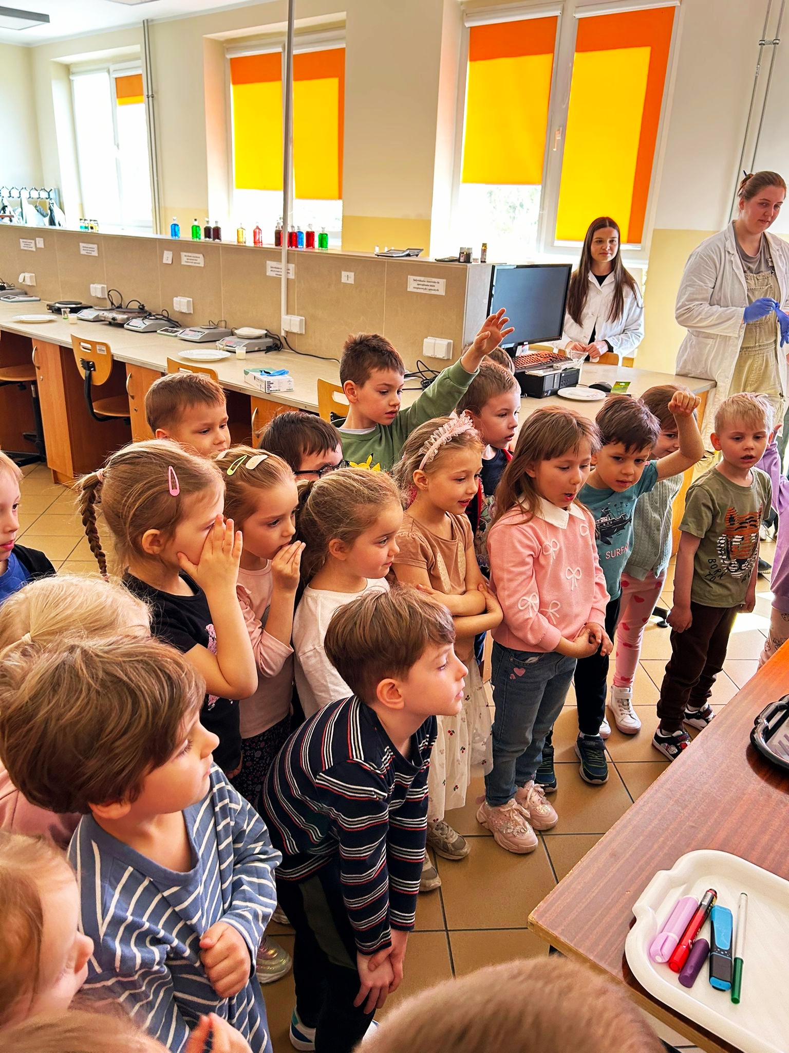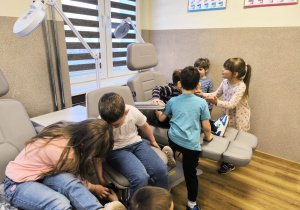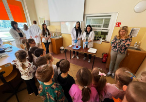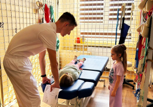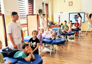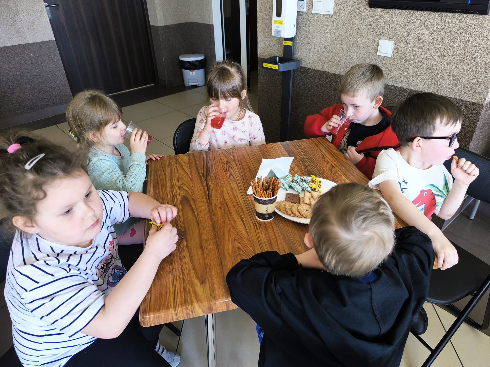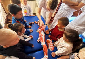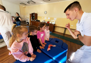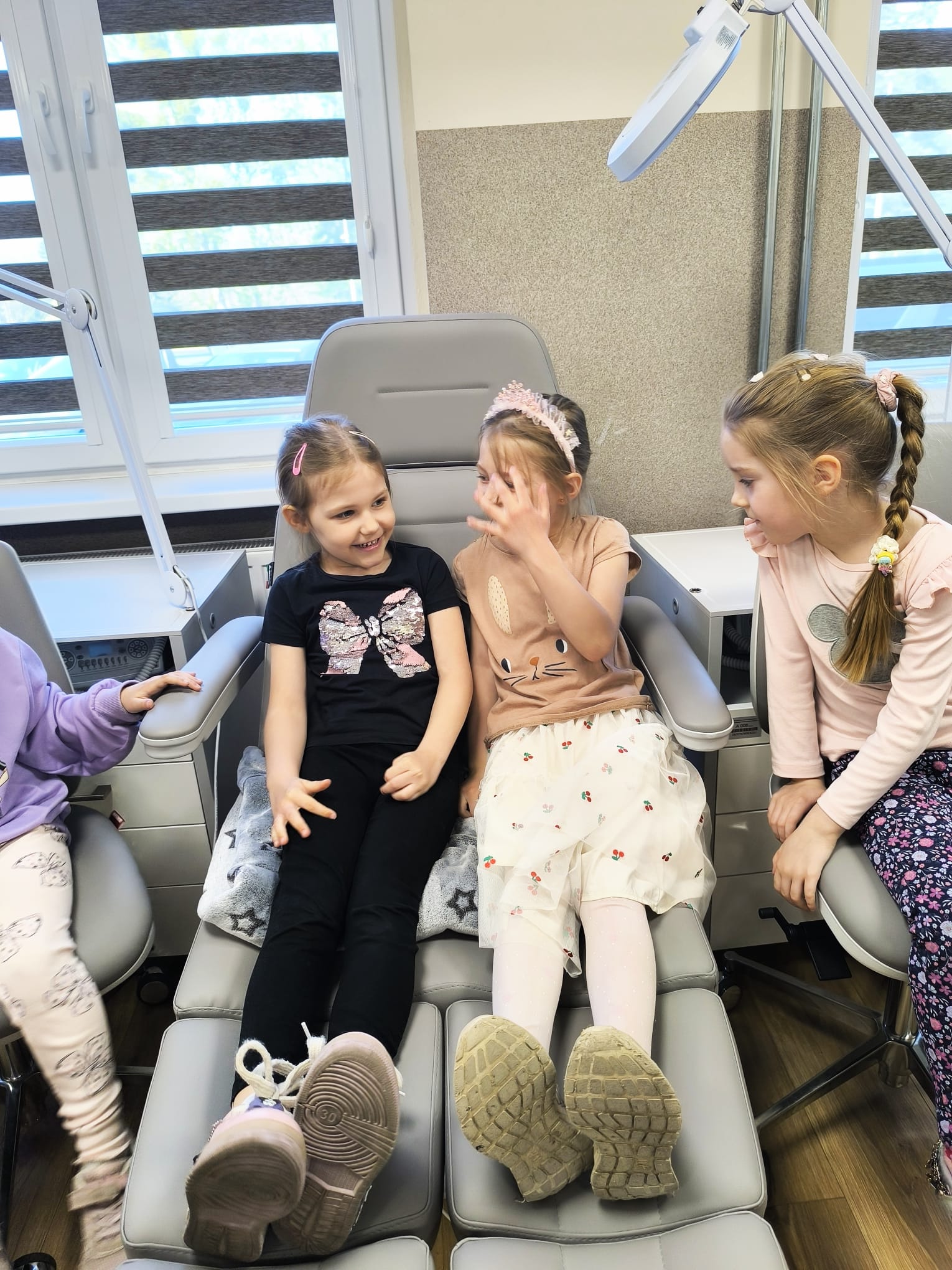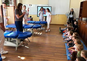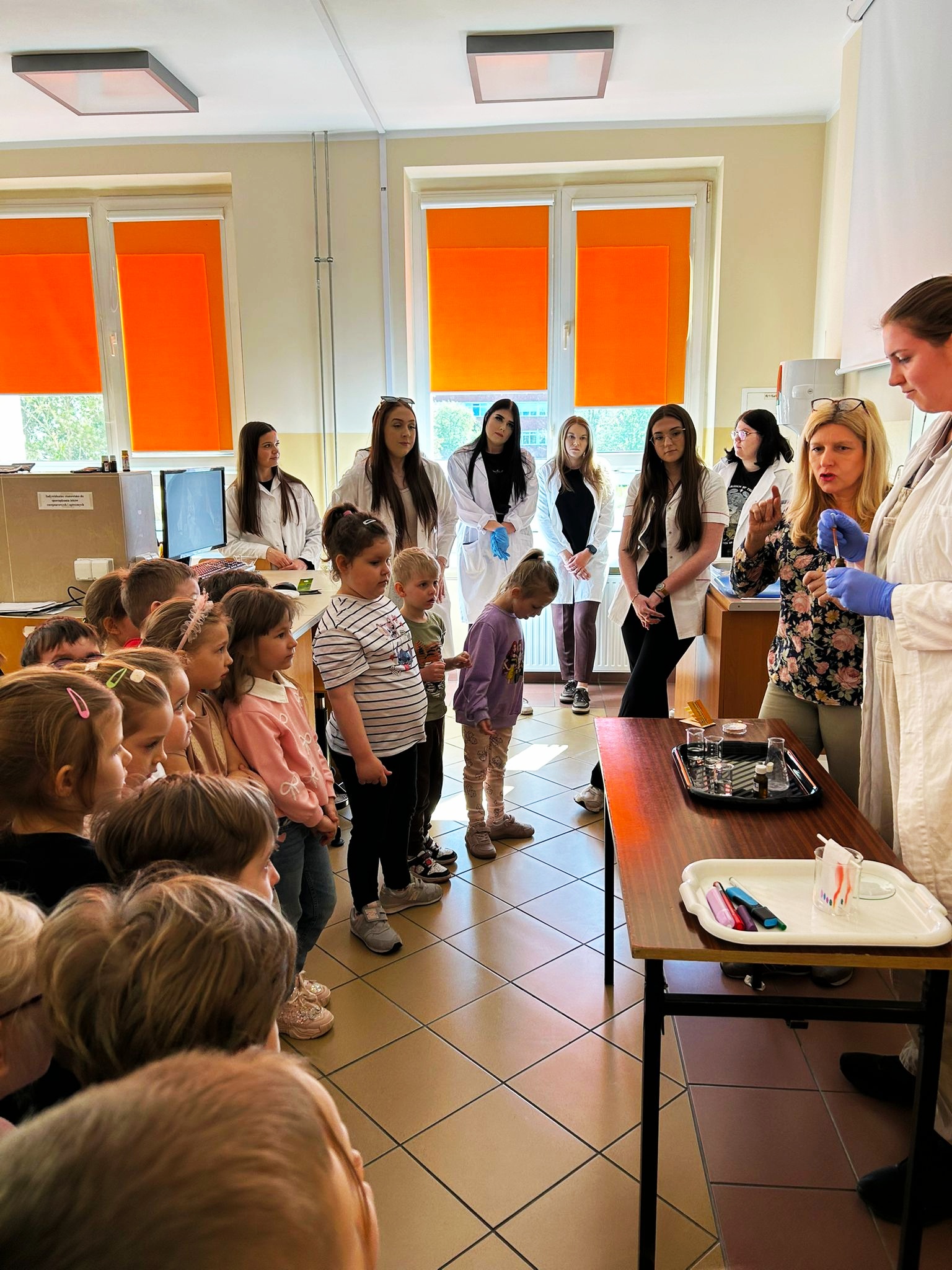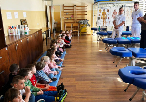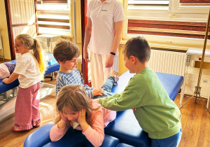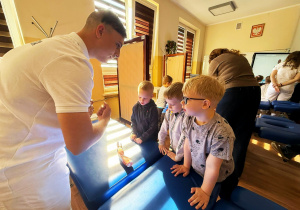 Przedszkolaki z gr. XI i XII w środę 22 kwietnia uczciły niedawno obchodzony Dzień Zdrowia wycieczką do Wielkopolskiego Samorządowego Centrum Kształcenia Zawodowego i Ustawicznego "Medyk" w Koninie. Wizyta w tym miejscu okazała się niezwykle cenną lekcją dla poszerzania wiedzy dzieci na temat zdrowia i prawidłowego stylu życia. W WSCKZiU mogliśmy usłyszeć o wielu zawodach medycznych, do których szkoła przygotowuje chętne osoby. Widzieliśmy również sale wyposażone w profesjonalny sprzęt, by słuchacze mogli zdobywać wiedzę nie tylko teoretyczną, ale również praktyczną- m.in. salę wyglądającą, jak prawdziwy gabinet dentystyczny, czy salę dla chorych, starszych osób, które wymagają szczególnej opieki. Dzieci na własnej skórze mogły doświadczyć masażu, przekonały się, że farmacja i chemia mają wiele wspólnego z magią, a na koniec kolejny raz udowodniły, że ruch to zdrowie. Nie obyło się również bez pysznego poczęstunku- by zdobyć siły do dalszych działań. Wszystkie aktywności, dzięki uprzejmości pracowników i słuchaczy, odbywały się w fantastycznej atmosferze za co z całego serca dziękujemy- szczególnie Panu Wojciechowi Szymczakowi za udzielenie zgody na odwiedziny placówki i miłe powitanie, Panu Piotrowi Rosińskiemu- dziadkowi naszej Antosi z gr. XII za zainicjowanie spotkania oraz Panu Markowi Sobierajskiemu za organizację i koordynowanie wszystkich atrakcji. Mamy nadzieję, że to nie ostatnia wizyta przedszkolaków w tak ciekawym miejscu