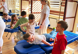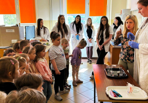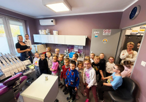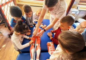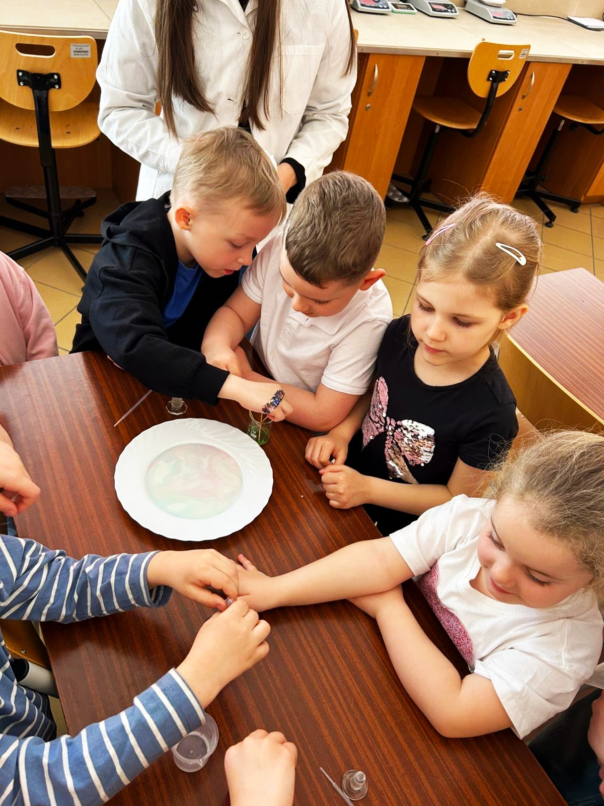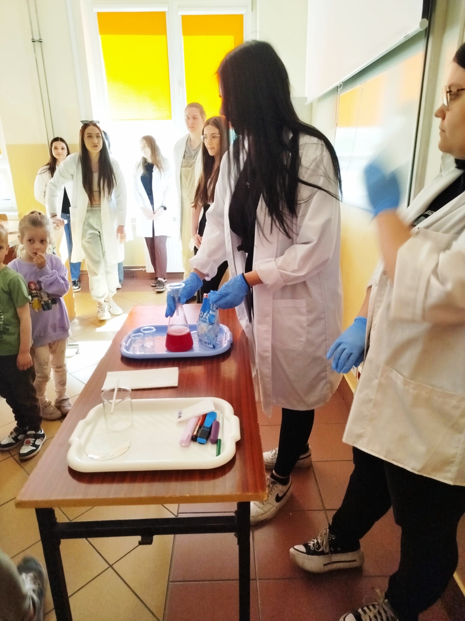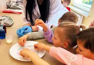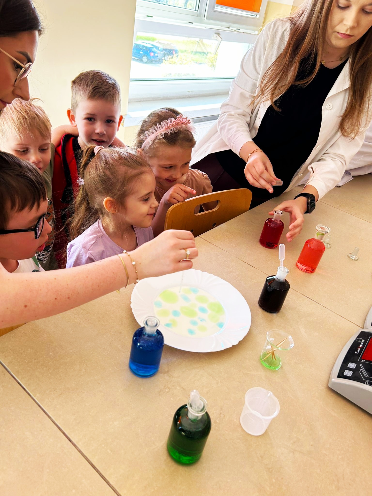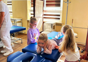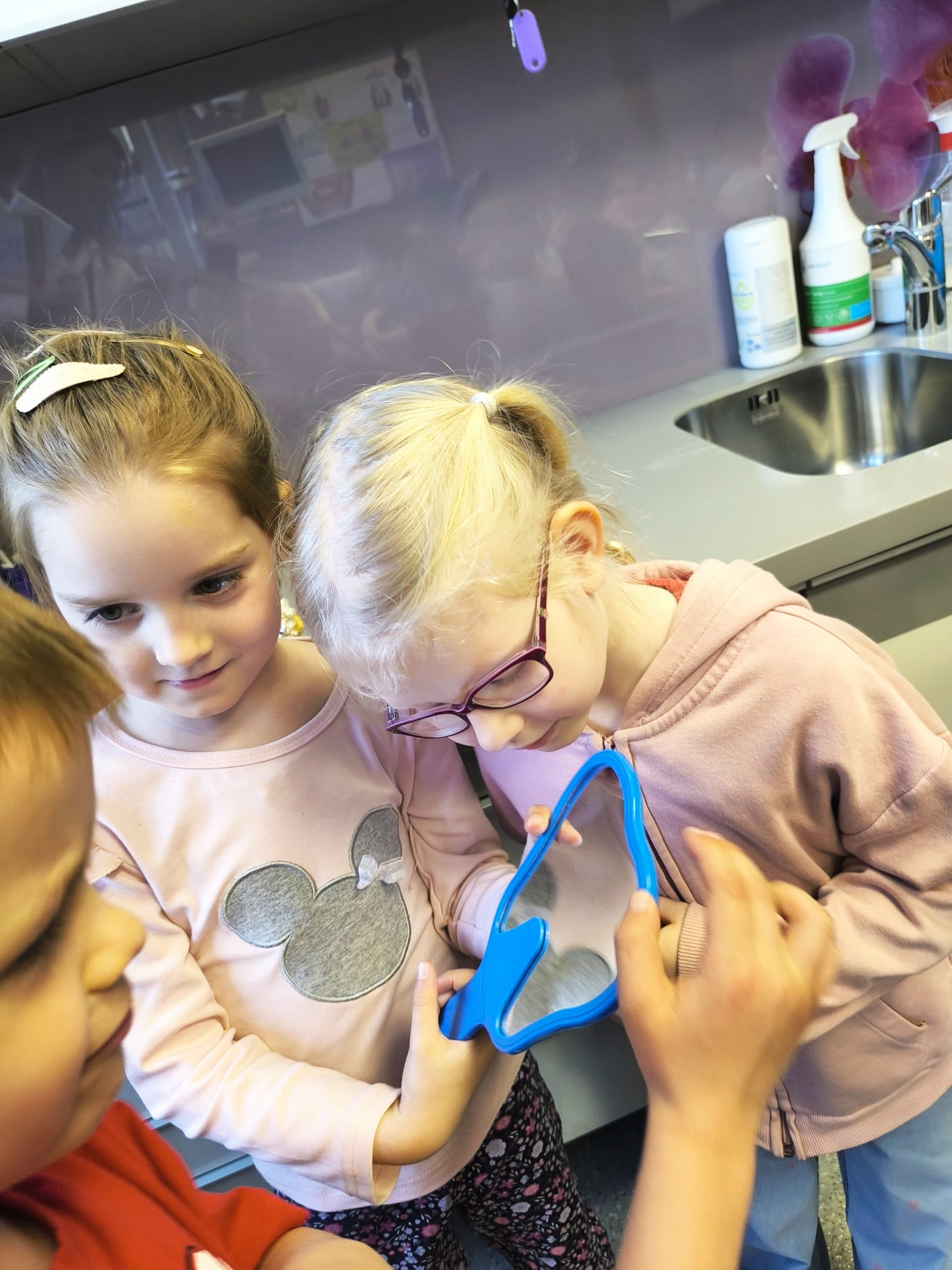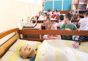 Przedszkolaki z gr. XI i XII w środę 22 kwietnia uczciły niedawno obchodzony Dzień Zdrowia wycieczką do Wielkopolskiego Samorządowego Centrum Kształcenia Zawodowego i Ustawicznego "Medyk" w Koninie. Wizyta w tym miejscu okazała się niezwykle cenną lekcją dla poszerzania wiedzy dzieci na temat zdrowia i prawidłowego stylu życia. W WSCKZiU mogliśmy usłyszeć o wielu zawodach medycznych, do których szkoła przygotowuje chętne osoby. Widzieliśmy również sale wyposażone w profesjonalny sprzęt, by słuchacze mogli zdobywać wiedzę nie tylko teoretyczną, ale również praktyczną- m.in. salę wyglądającą, jak prawdziwy gabinet dentystyczny, czy salę dla chorych, starszych osób, które wymagają szczególnej opieki. Dzieci na własnej skórze mogły doświadczyć masażu, przekonały się, że farmacja i chemia mają wiele wspólnego z magią, a na koniec kolejny raz udowodniły, że ruch to zdrowie. Nie obyło się również bez pysznego poczęstunku- by zdobyć siły do dalszych działań. Wszystkie aktywności, dzięki uprzejmości pracowników i słuchaczy, odbywały się w fantastycznej atmosferze za co z całego serca dziękujemy- szczególnie Panu Wojciechowi Szymczakowi za udzielenie zgody na odwiedziny placówki i miłe powitanie, Panu Piotrowi Rosińskiemu- dziadkowi naszej Antosi z gr. XII za zainicjowanie spotkania oraz Panu Markowi Sobierajskiemu za organizację i koordynowanie wszystkich atrakcji. Mamy nadzieję, że to nie ostatnia wizyta przedszkolaków w tak ciekawym miejscu