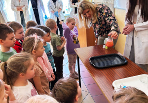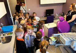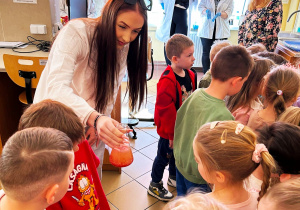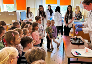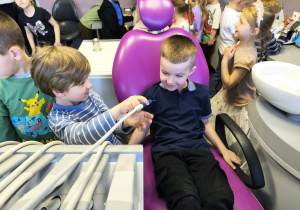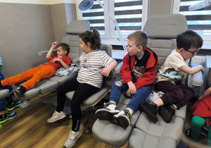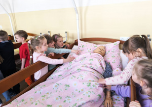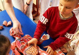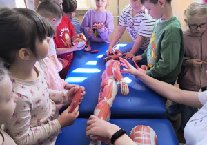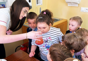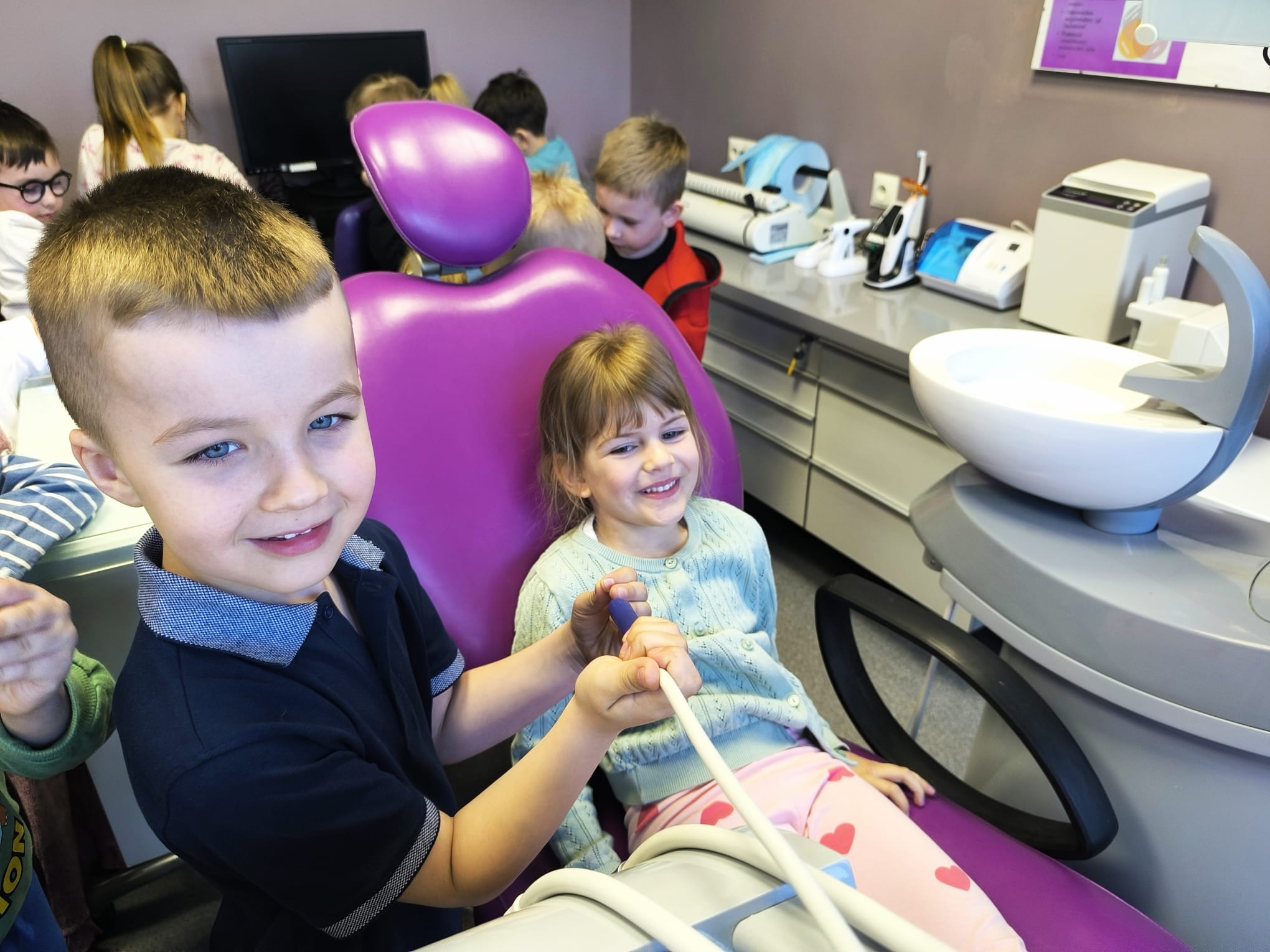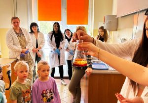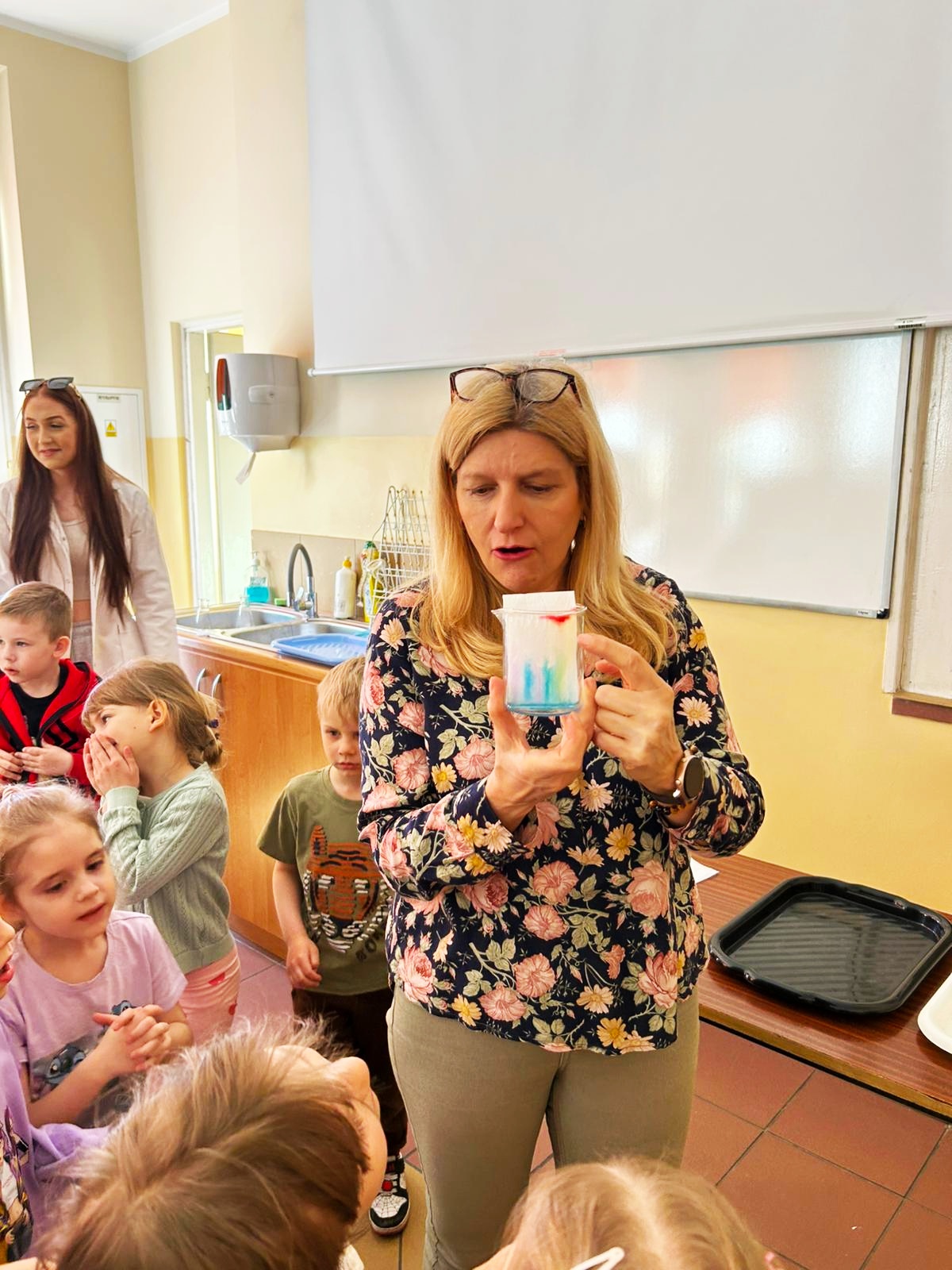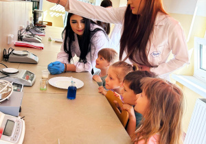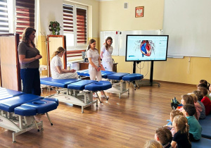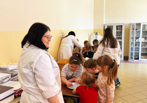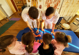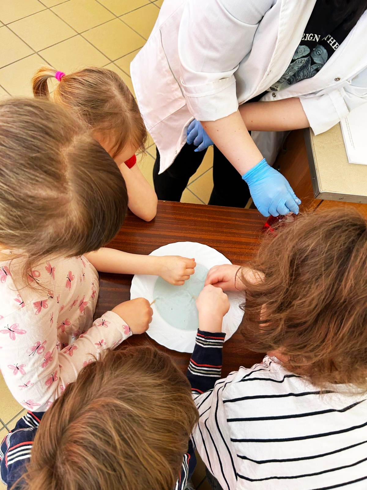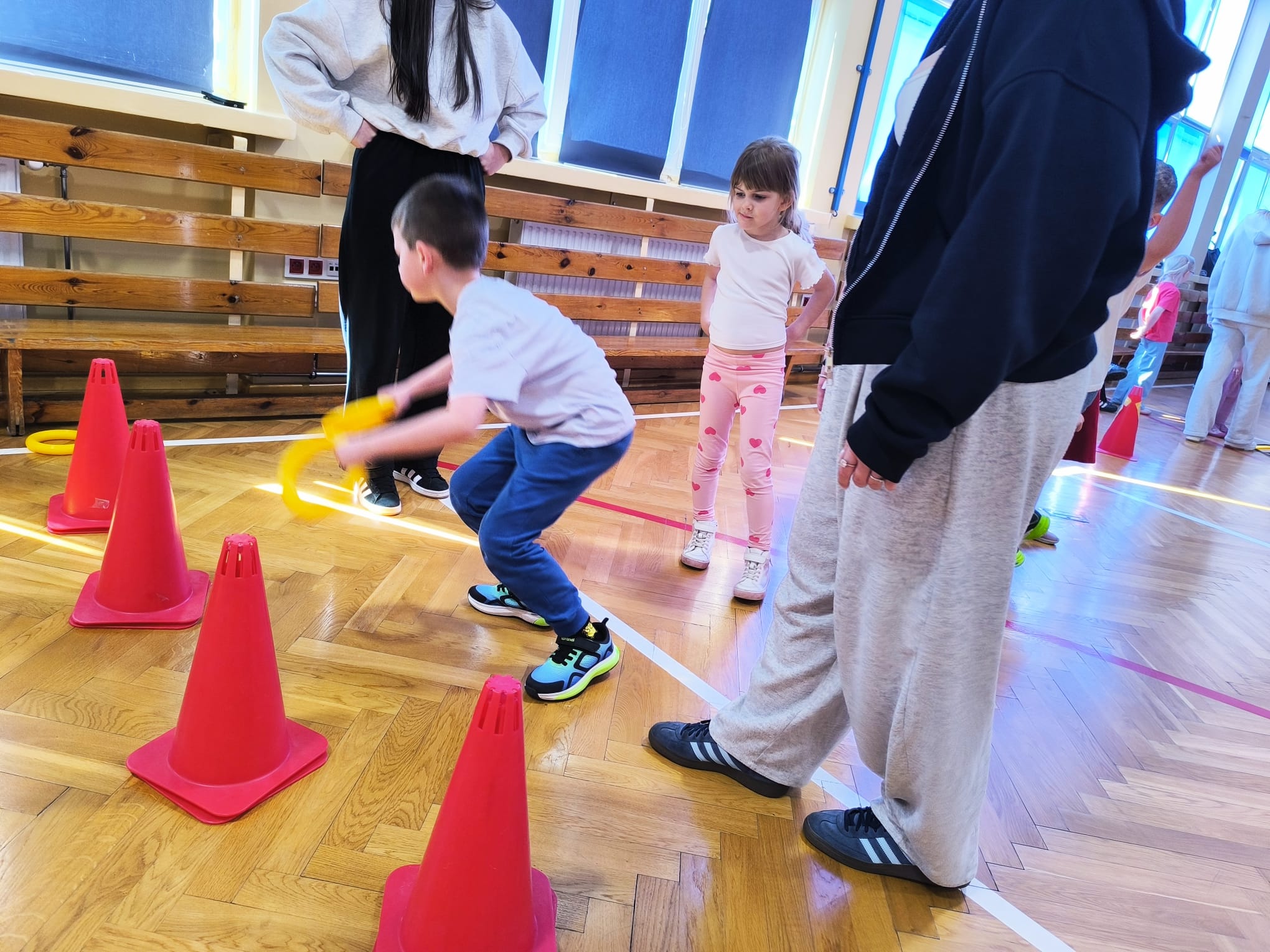 Przedszkolaki z gr. XI i XII w środę 22 kwietnia uczciły niedawno obchodzony Dzień Zdrowia wycieczką do Wielkopolskiego Samorządowego Centrum Kształcenia Zawodowego i Ustawicznego "Medyk" w Koninie. Wizyta w tym miejscu okazała się niezwykle cenną lekcją dla poszerzania wiedzy dzieci na temat zdrowia i prawidłowego stylu życia. W WSCKZiU mogliśmy usłyszeć o wielu zawodach medycznych, do których szkoła przygotowuje chętne osoby. Widzieliśmy również sale wyposażone w profesjonalny sprzęt, by słuchacze mogli zdobywać wiedzę nie tylko teoretyczną, ale również praktyczną- m.in. salę wyglądającą, jak prawdziwy gabinet dentystyczny, czy salę dla chorych, starszych osób, które wymagają szczególnej opieki. Dzieci na własnej skórze mogły doświadczyć masażu, przekonały się, że farmacja i chemia mają wiele wspólnego z magią, a na koniec kolejny raz udowodniły, że ruch to zdrowie. Nie obyło się również bez pysznego poczęstunku- by zdobyć siły do dalszych działań. Wszystkie aktywności, dzięki uprzejmości pracowników i słuchaczy, odbywały się w fantastycznej atmosferze za co z całego serca dziękujemy- szczególnie Panu Wojciechowi Szymczakowi za udzielenie zgody na odwiedziny placówki i miłe powitanie, Panu Piotrowi Rosińskiemu- dziadkowi naszej Antosi z gr. XII za zainicjowanie spotkania oraz Panu Markowi Sobierajskiemu za organizację i koordynowanie wszystkich atrakcji. Mamy nadzieję, że to nie ostatnia wizyta przedszkolaków w tak ciekawym miejscu