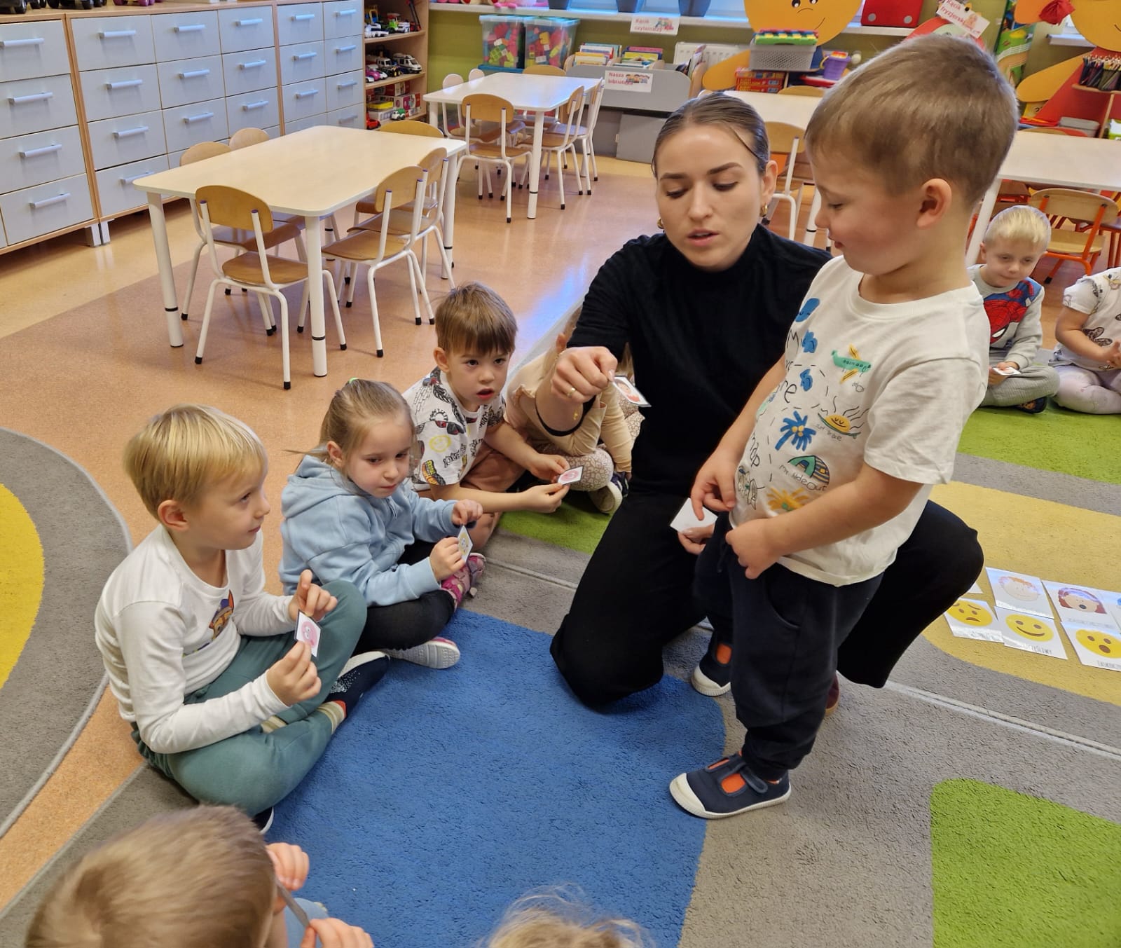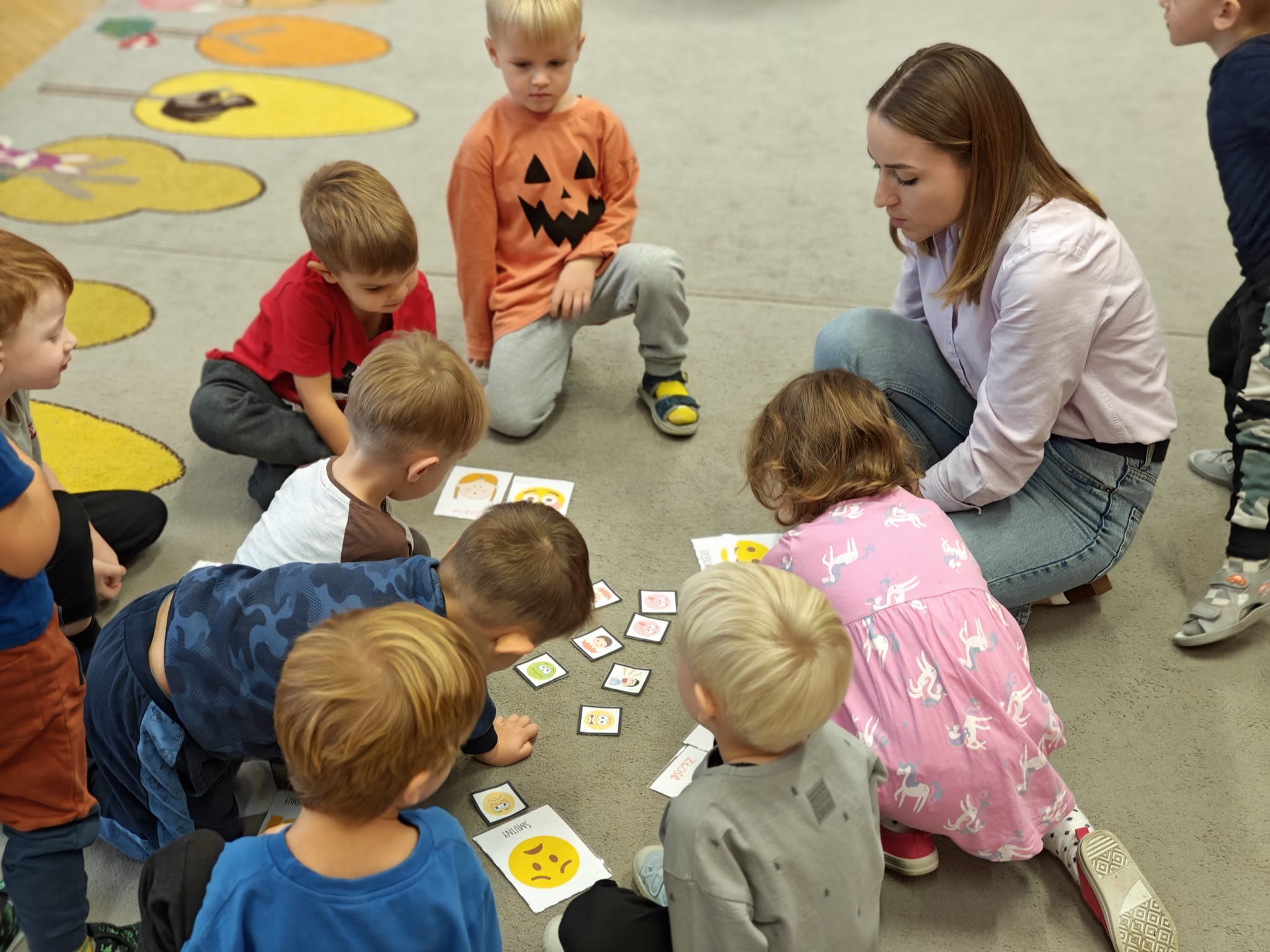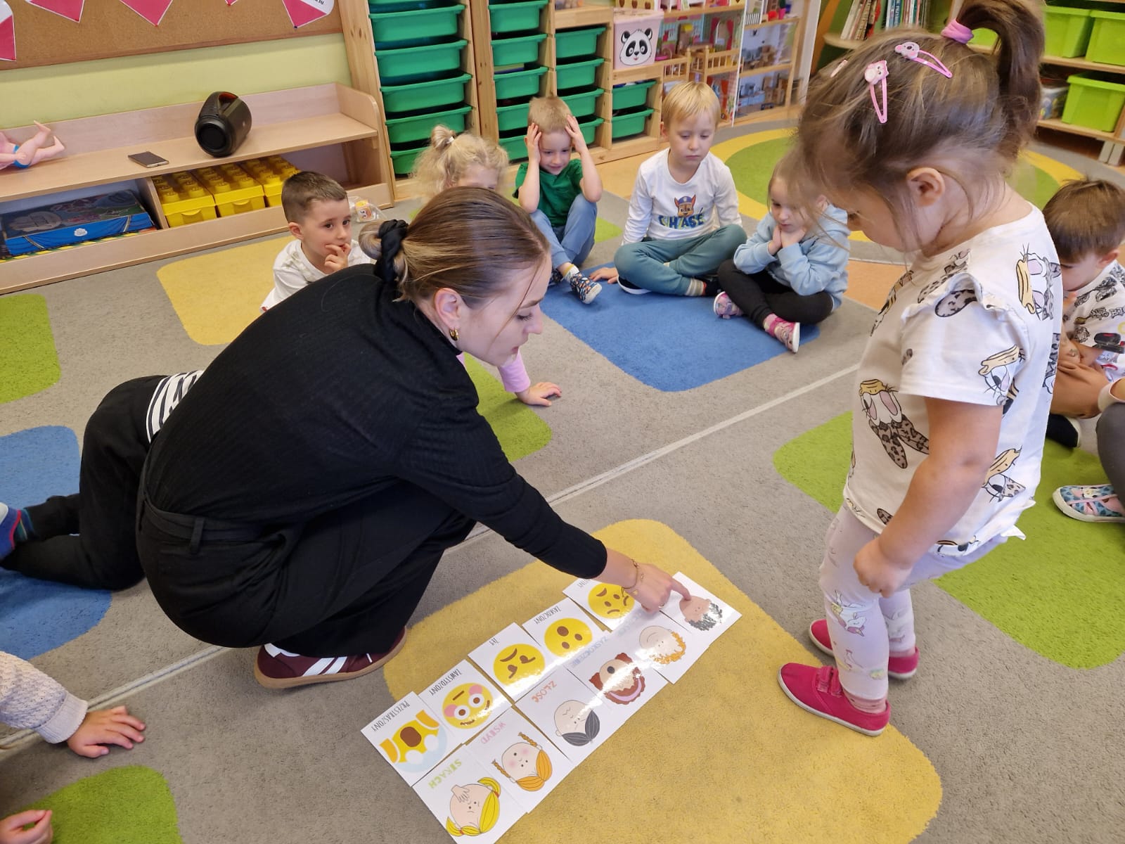 Moje emocje: głównym celem zajęć było rozwijanie u dzieci umiejętności rozpoznawania, nazywania oraz wyrażania emocji. Dzięki temu dzieci uczą się lepiej rozumieć swoje uczucia oraz uczucia innych, co sprzyja budowaniu empatii i poprawia komunikację społeczną.