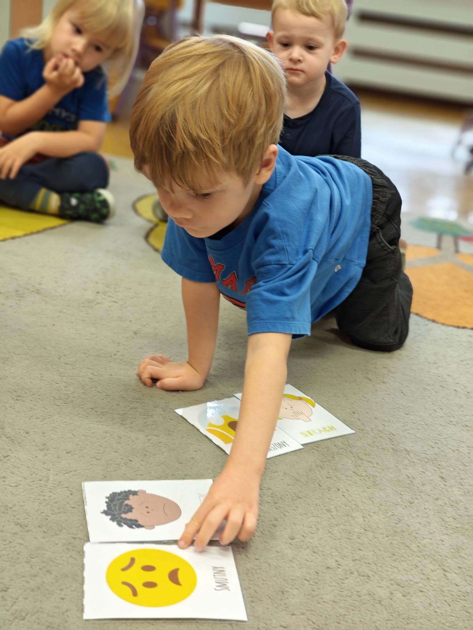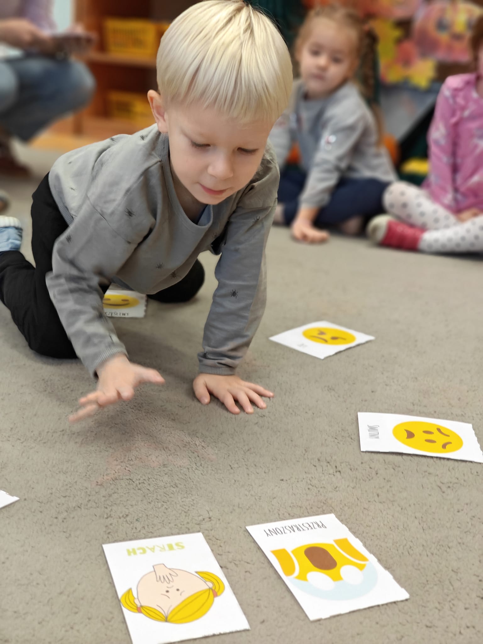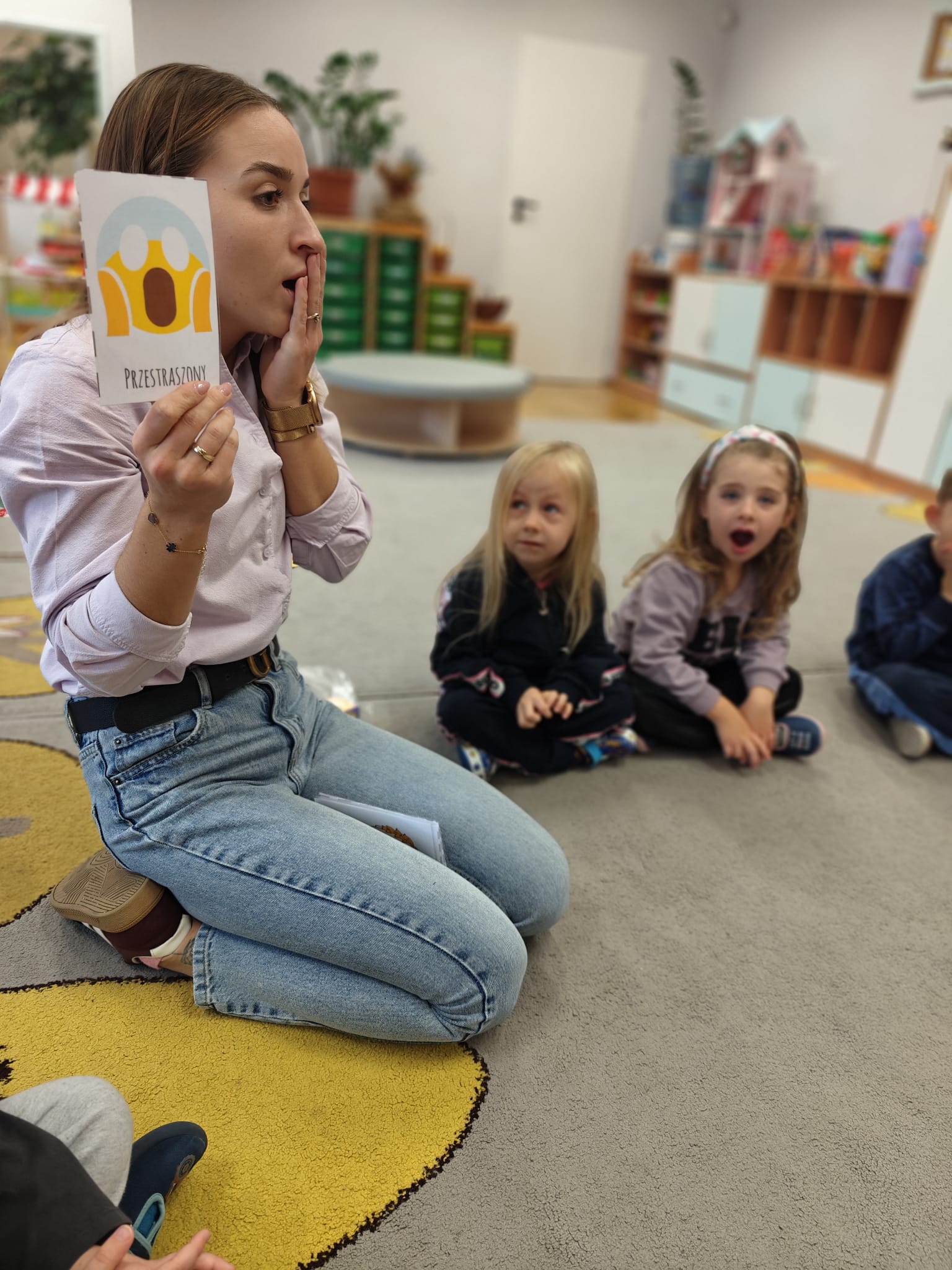Moje emocje: głównym celem zajęć było rozwijanie u dzieci umiejętności rozpoznawania, nazywania oraz wyrażania emocji. Dzięki temu dzieci uczą się lepiej rozumieć swoje uczucia oraz uczucia innych, co sprzyja budowaniu empatii i poprawia komunikację społeczną.