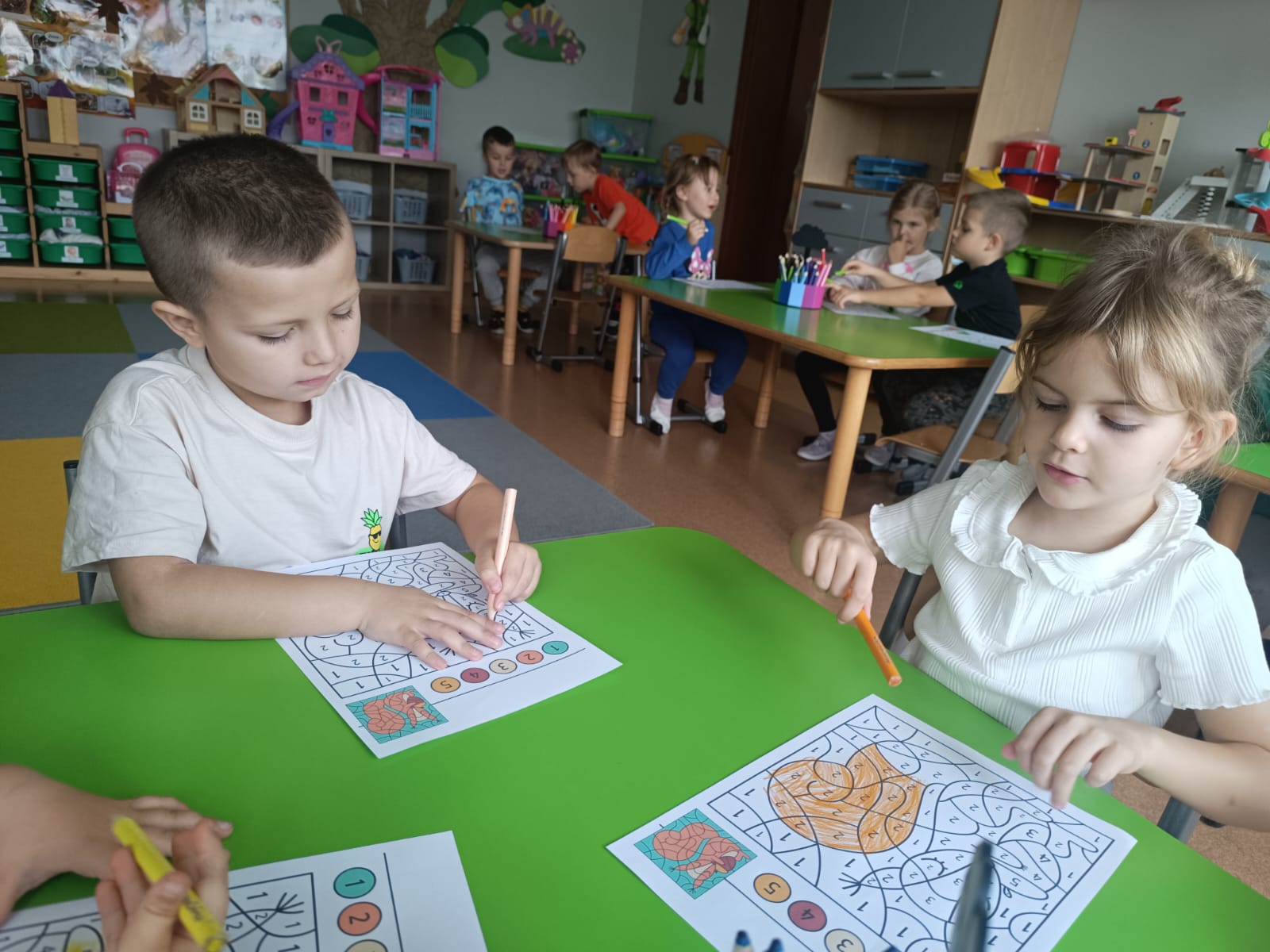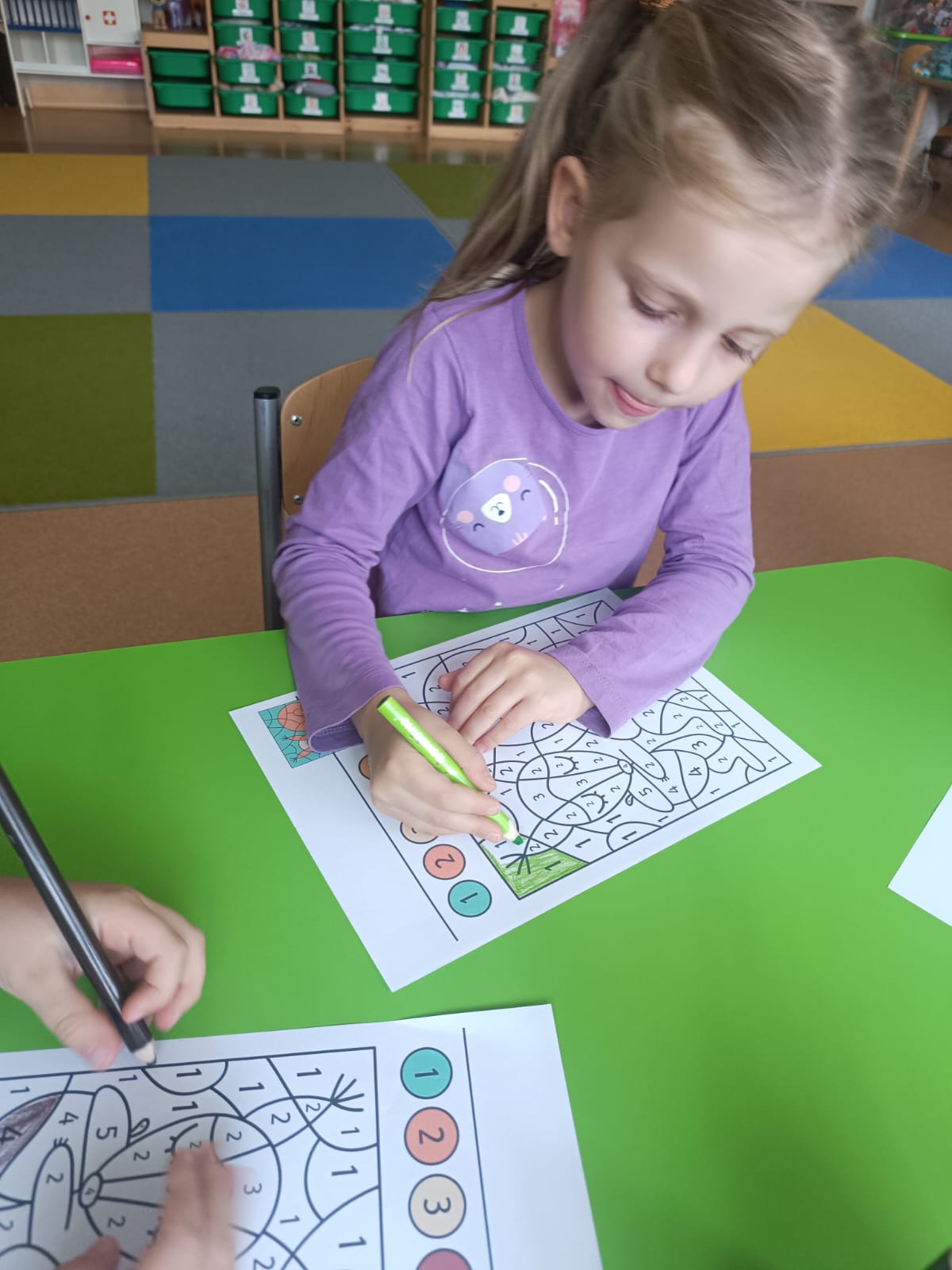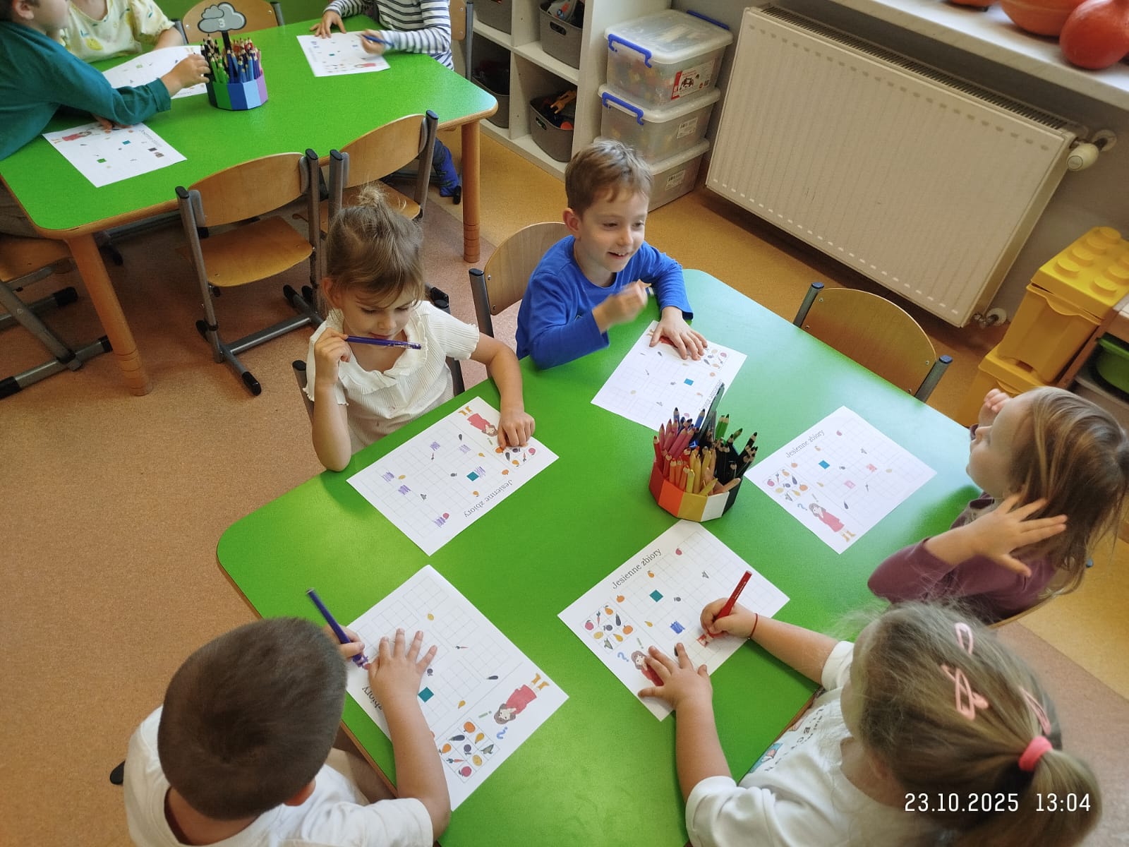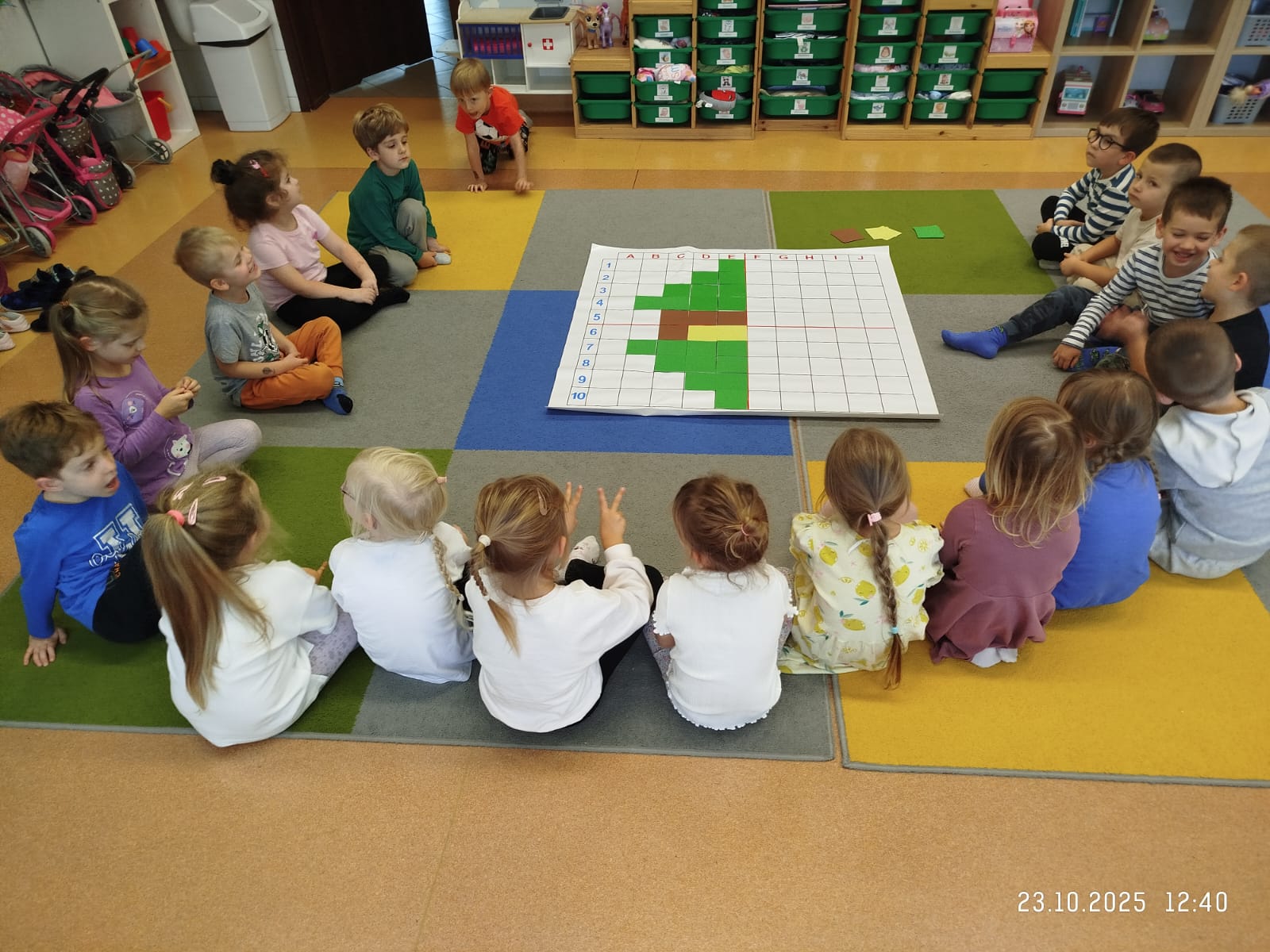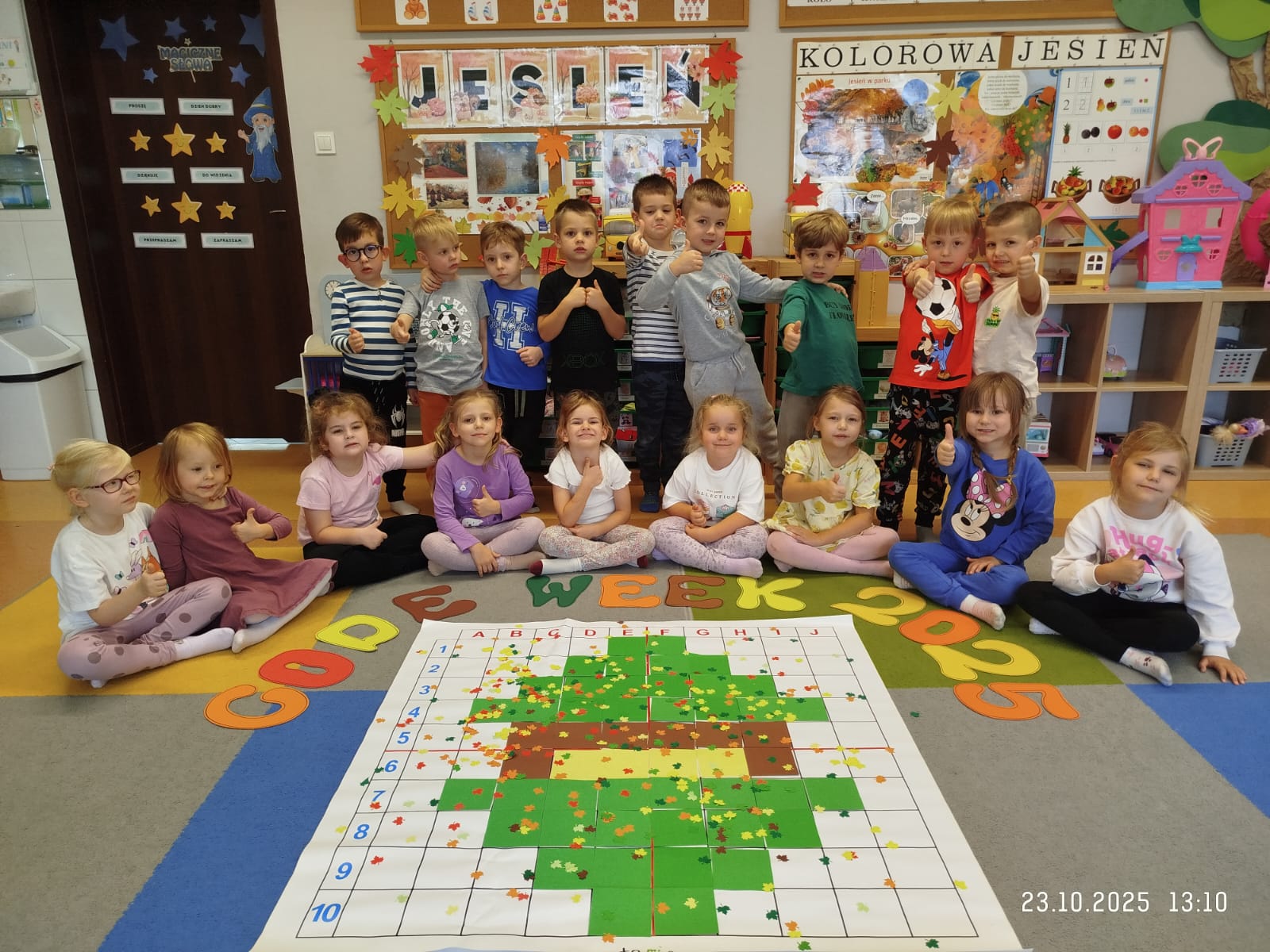 CodeWeek, czyli Europejski Tydzień Kodowania, to inicjatywa promująca programowanie i umiejętności cyfrowe wśród uczestników w ciekawy i interesujący sposób. W tym czasie przedszkolaki podejmowały wiele ciekawych aktywności, rozbudzały swoją wyobraźnię, szukały rozwiązań oraz wyciągały wnioski podczas wspólnych zabaw. Dzieci zaznajomiły się z różnymi narzędziami do kodowania i chętnie uczestniczyły w zabawach. Przedszkolaki poprzez kodowanie rozwijały min. logiczne myślenie, wyobraźnię, spostrzegawczość, dedukcję, umiejętność współpracy, planowania i analizowania. Podczas zabawy dydaktycznej "Skarby jesieni" na macie do kodowania ułożyły wzór kasztana wzdłuż osi symetrii, poznając przy tym nowe pojęcie matematyczne. Zadania te sprawiły dzieciom dużą frajdę, dlatego też będziemy kontynuować naszą przygodę z kodowaniem w kolejnych latach.