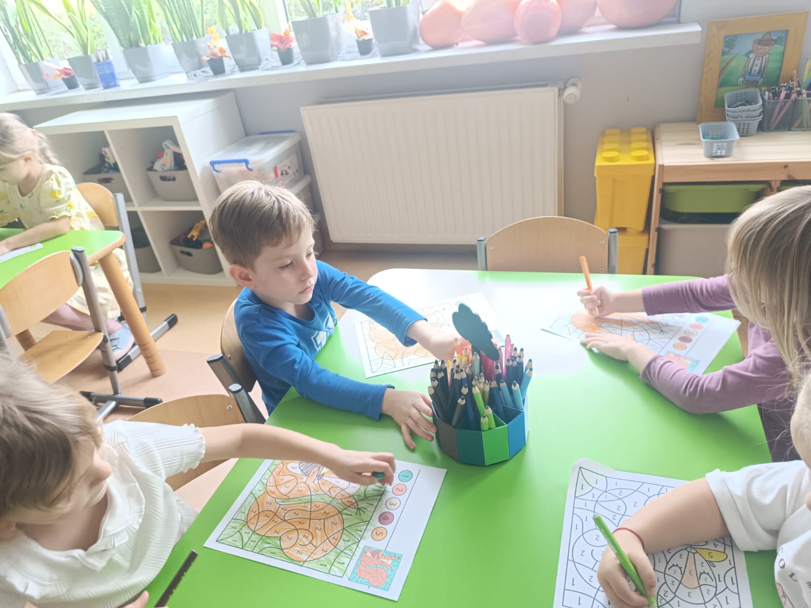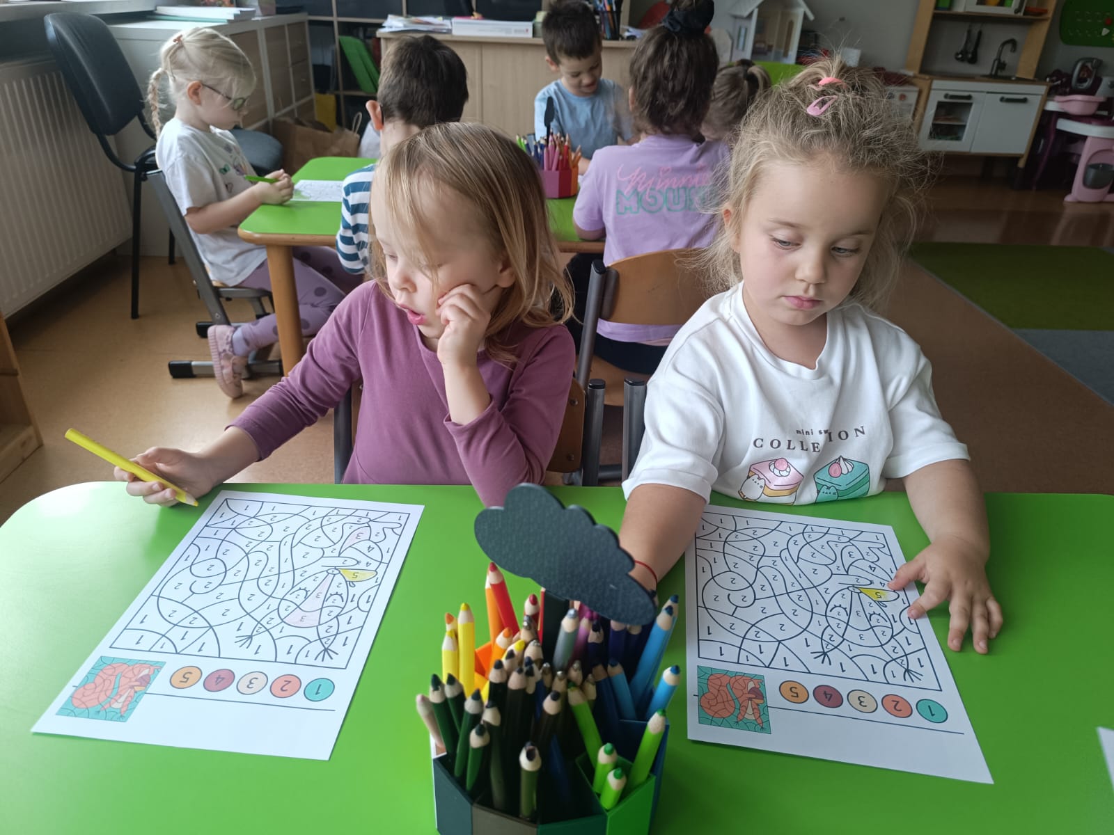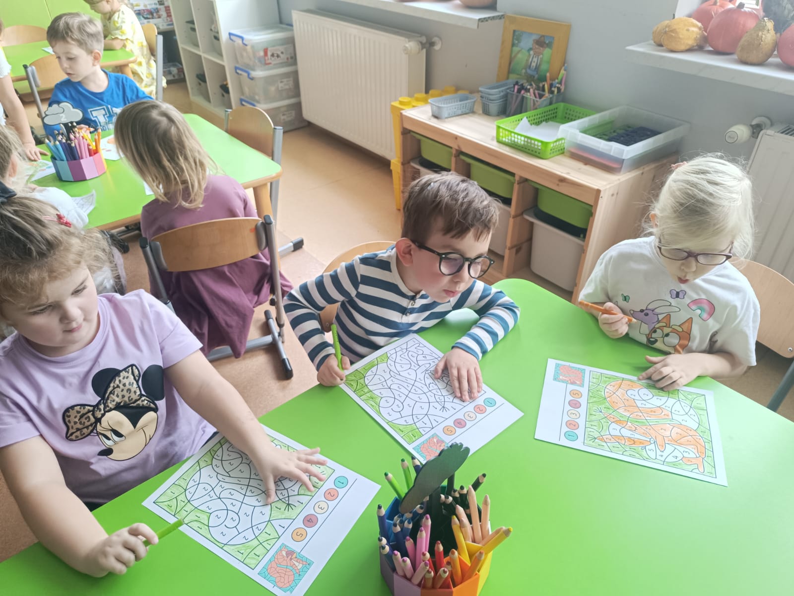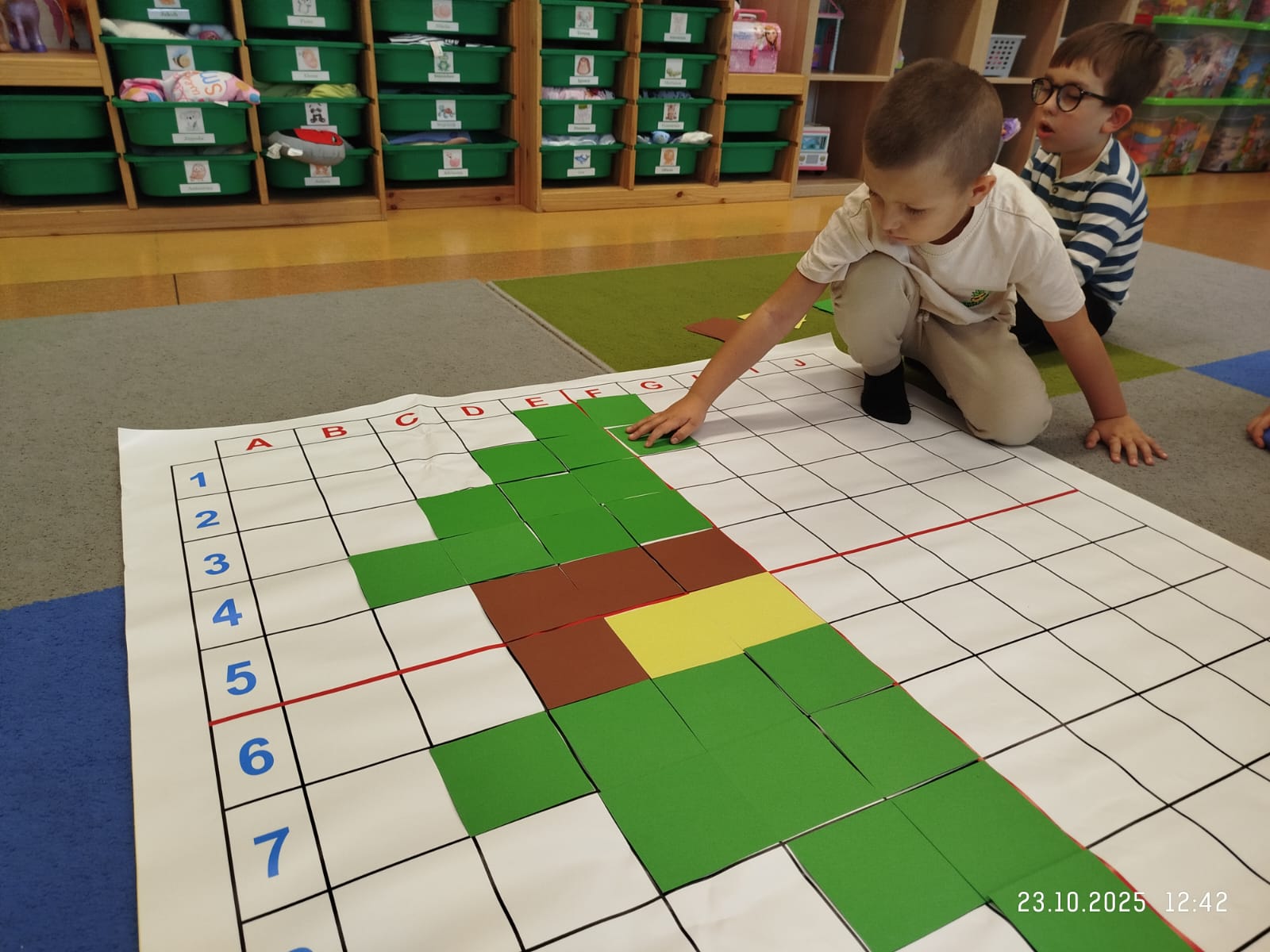 CodeWeek, czyli Europejski Tydzień Kodowania, to inicjatywa promująca programowanie i umiejętności cyfrowe wśród uczestników w ciekawy i interesujący sposób. W tym czasie przedszkolaki podejmowały wiele ciekawych aktywności, rozbudzały swoją wyobraźnię, szukały rozwiązań oraz wyciągały wnioski podczas wspólnych zabaw. Dzieci zaznajomiły się z różnymi narzędziami do kodowania i chętnie uczestniczyły w zabawach. Przedszkolaki poprzez kodowanie rozwijały min. logiczne myślenie, wyobraźnię, spostrzegawczość, dedukcję, umiejętność współpracy, planowania i analizowania. Podczas zabawy dydaktycznej "Skarby jesieni" na macie do kodowania ułożyły wzór kasztana wzdłuż osi symetrii, poznając przy tym nowe pojęcie matematyczne. Zadania te sprawiły dzieciom dużą frajdę, dlatego też będziemy kontynuować naszą przygodę z kodowaniem w kolejnych latach.