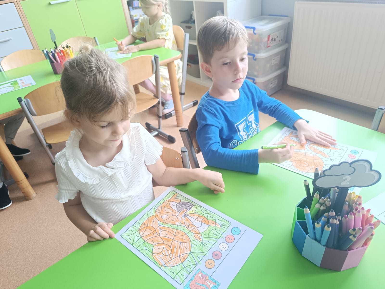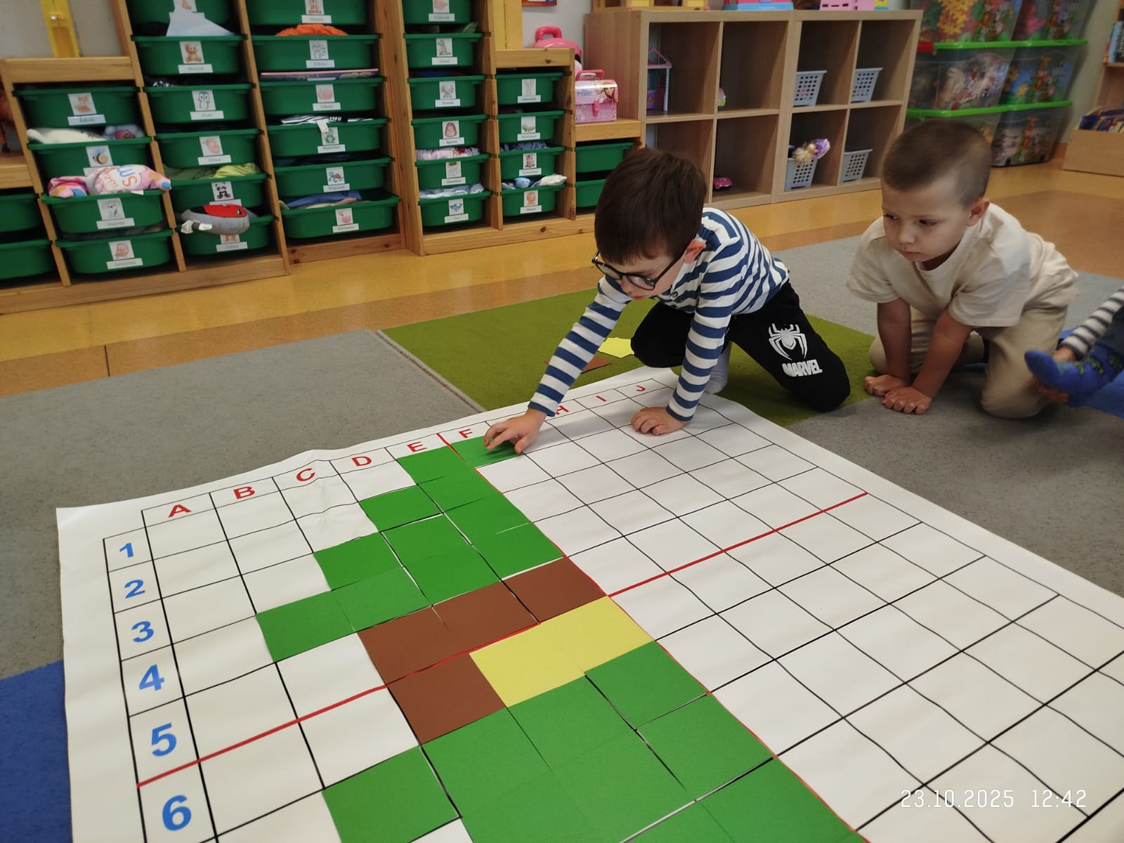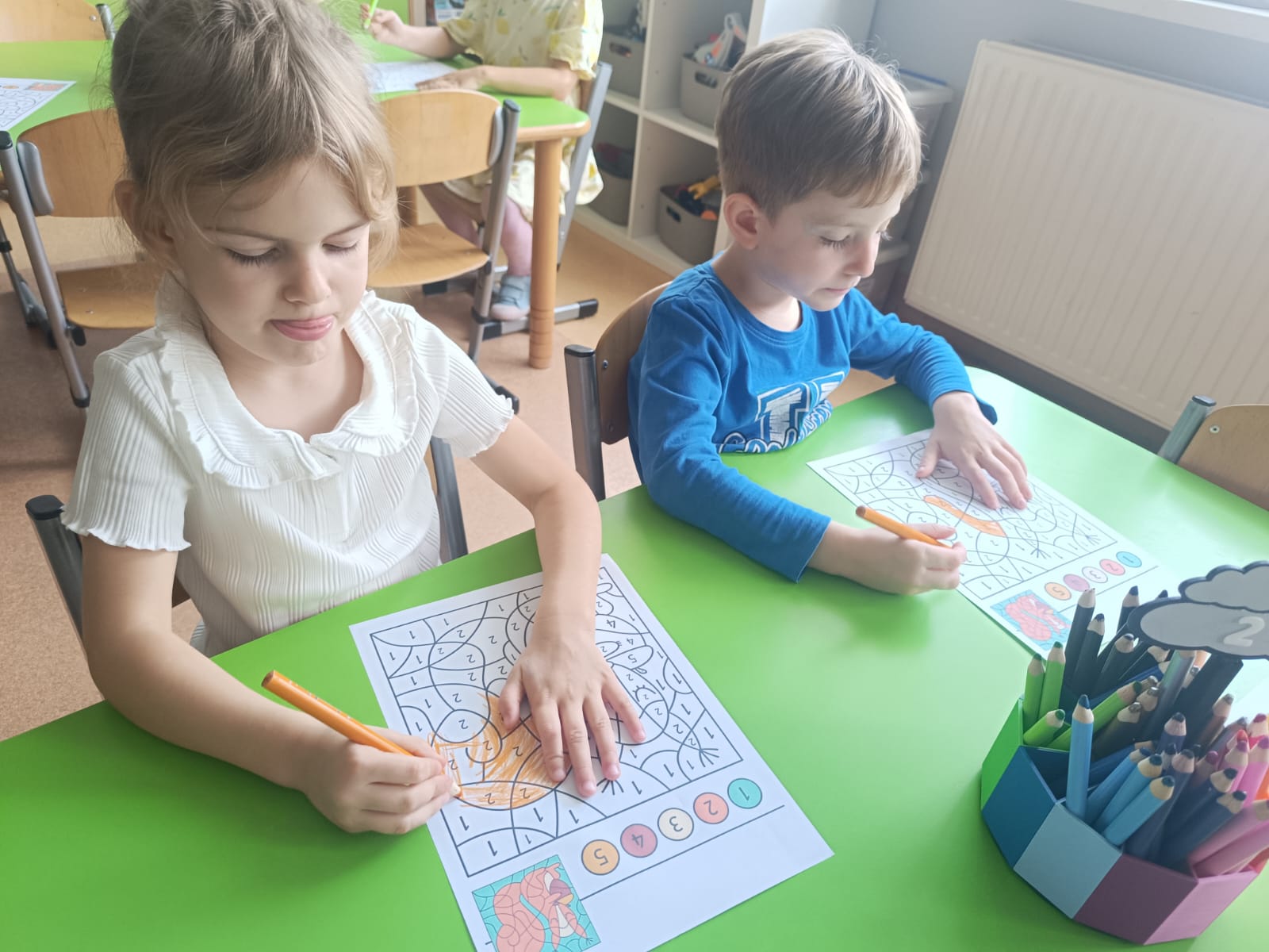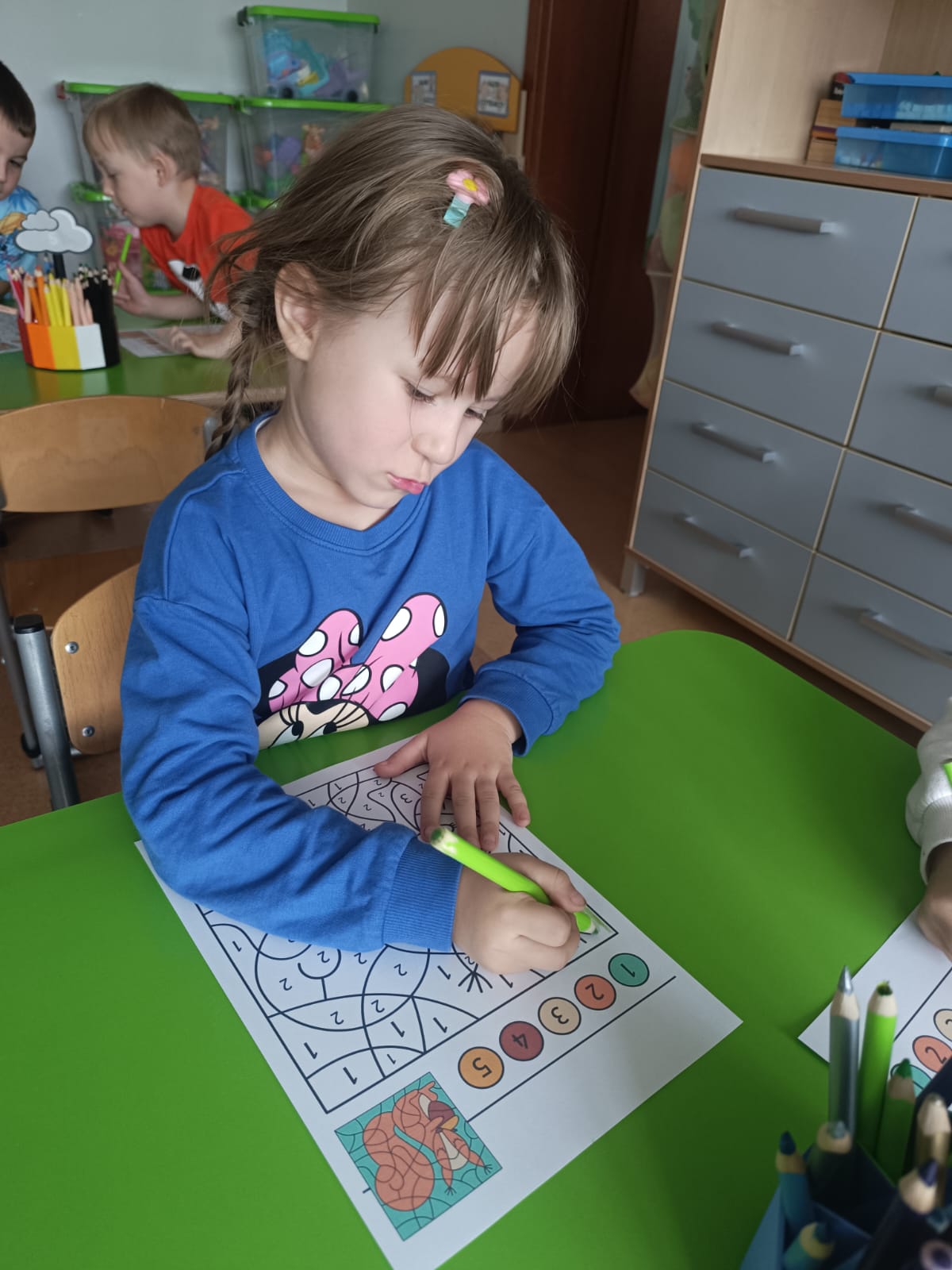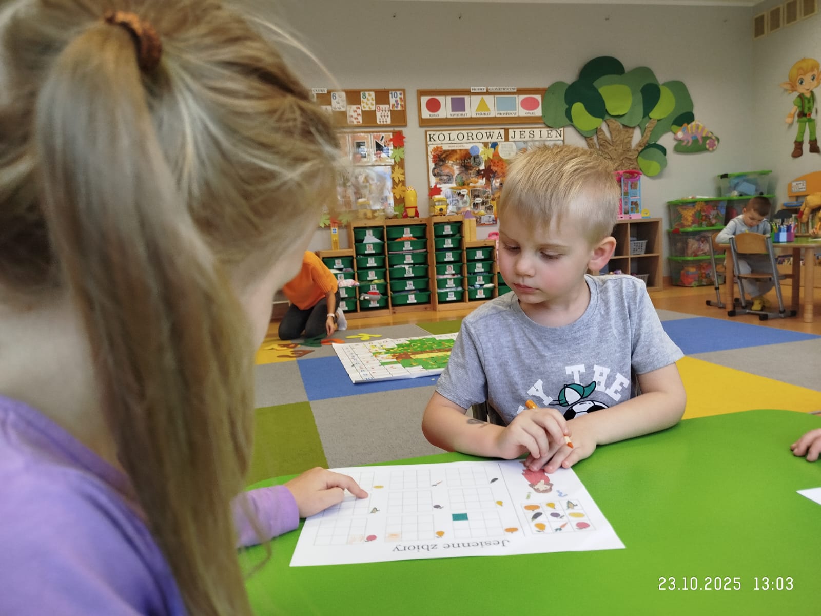 CodeWeek, czyli Europejski Tydzień Kodowania, to inicjatywa promująca programowanie i umiejętności cyfrowe wśród uczestników w ciekawy i interesujący sposób. W tym czasie przedszkolaki podejmowały wiele ciekawych aktywności, rozbudzały swoją wyobraźnię, szukały rozwiązań oraz wyciągały wnioski podczas wspólnych zabaw. Dzieci zaznajomiły się z różnymi narzędziami do kodowania i chętnie uczestniczyły w zabawach. Przedszkolaki poprzez kodowanie rozwijały min. logiczne myślenie, wyobraźnię, spostrzegawczość, dedukcję, umiejętność współpracy, planowania i analizowania. Podczas zabawy dydaktycznej "Skarby jesieni" na macie do kodowania ułożyły wzór kasztana wzdłuż osi symetrii, poznając przy tym nowe pojęcie matematyczne. Zadania te sprawiły dzieciom dużą frajdę, dlatego też będziemy kontynuować naszą przygodę z kodowaniem w kolejnych latach.