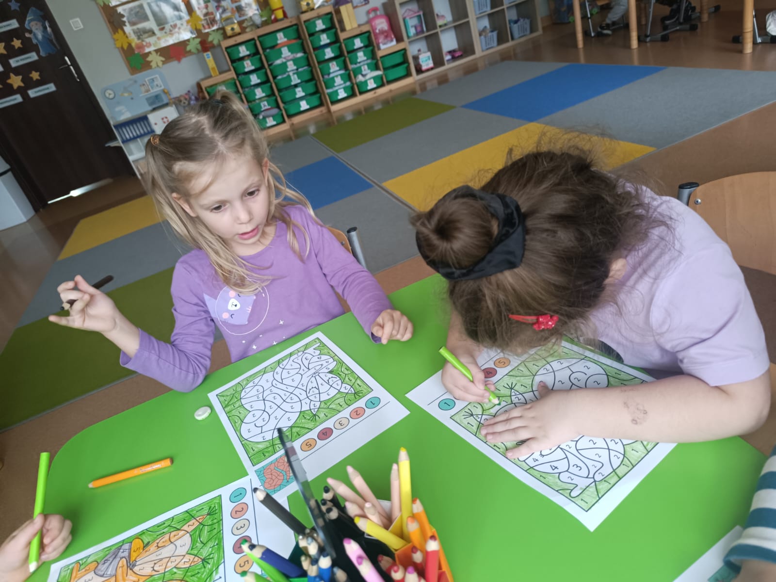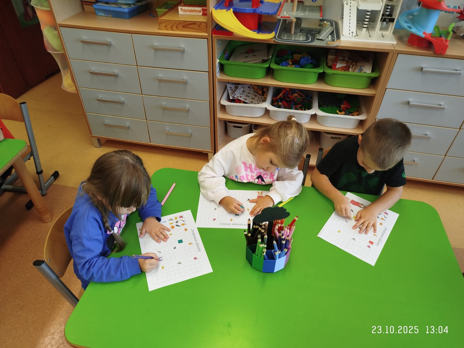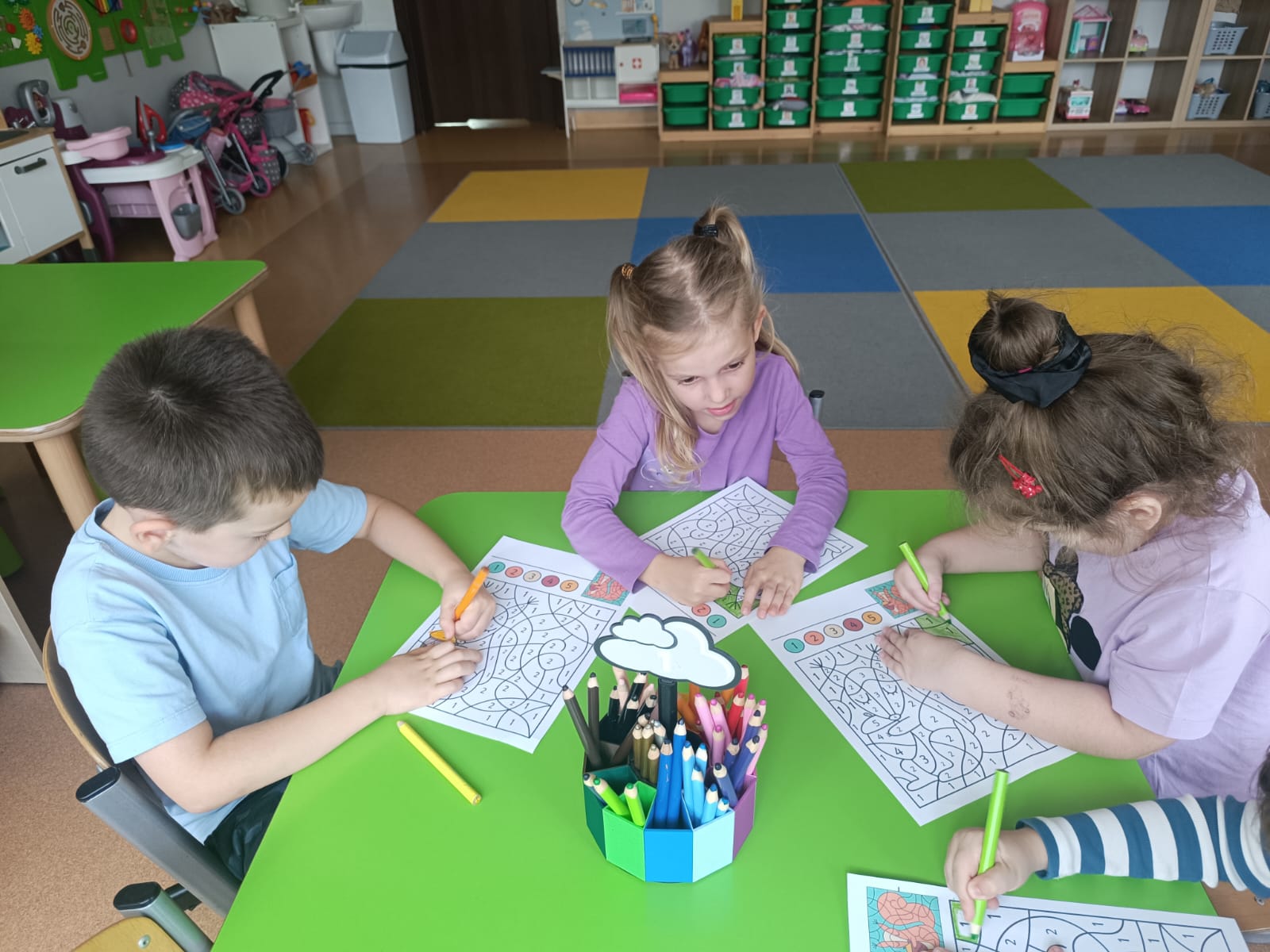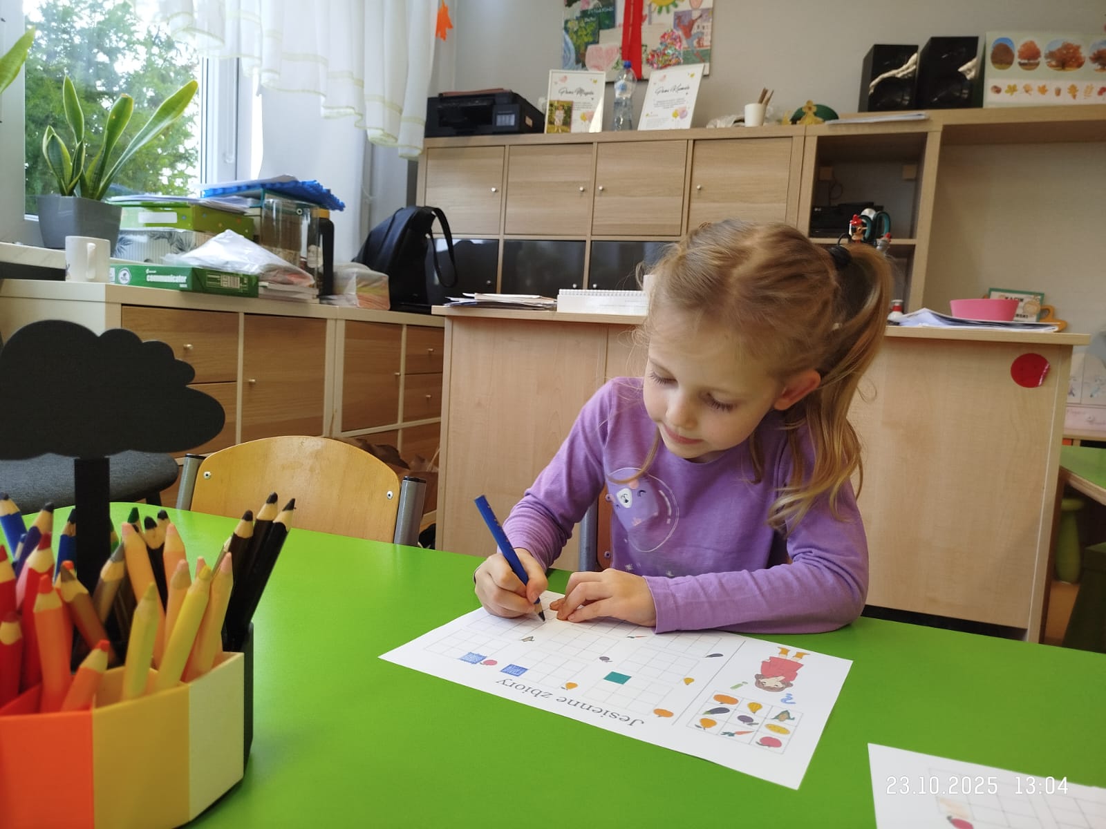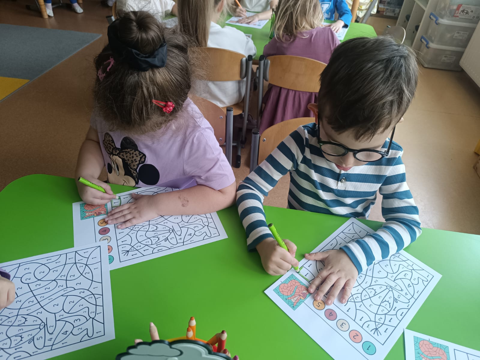 CodeWeek, czyli Europejski Tydzień Kodowania, to inicjatywa promująca programowanie i umiejętności cyfrowe wśród uczestników w ciekawy i interesujący sposób. W tym czasie przedszkolaki podejmowały wiele ciekawych aktywności, rozbudzały swoją wyobraźnię, szukały rozwiązań oraz wyciągały wnioski podczas wspólnych zabaw. Dzieci zaznajomiły się z różnymi narzędziami do kodowania i chętnie uczestniczyły w zabawach. Przedszkolaki poprzez kodowanie rozwijały min. logiczne myślenie, wyobraźnię, spostrzegawczość, dedukcję, umiejętność współpracy, planowania i analizowania. Podczas zabawy dydaktycznej "Skarby jesieni" na macie do kodowania ułożyły wzór kasztana wzdłuż osi symetrii, poznając przy tym nowe pojęcie matematyczne. Zadania te sprawiły dzieciom dużą frajdę, dlatego też będziemy kontynuować naszą przygodę z kodowaniem w kolejnych latach.