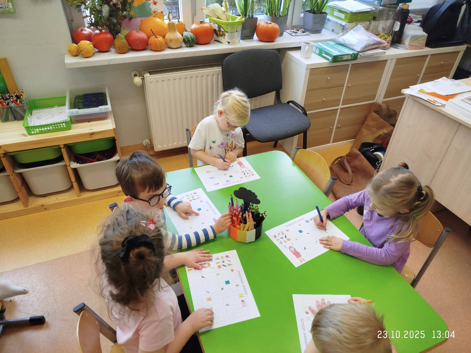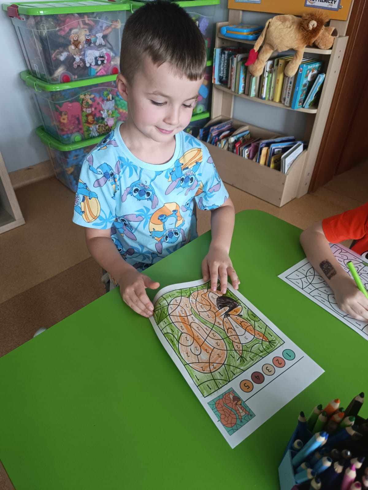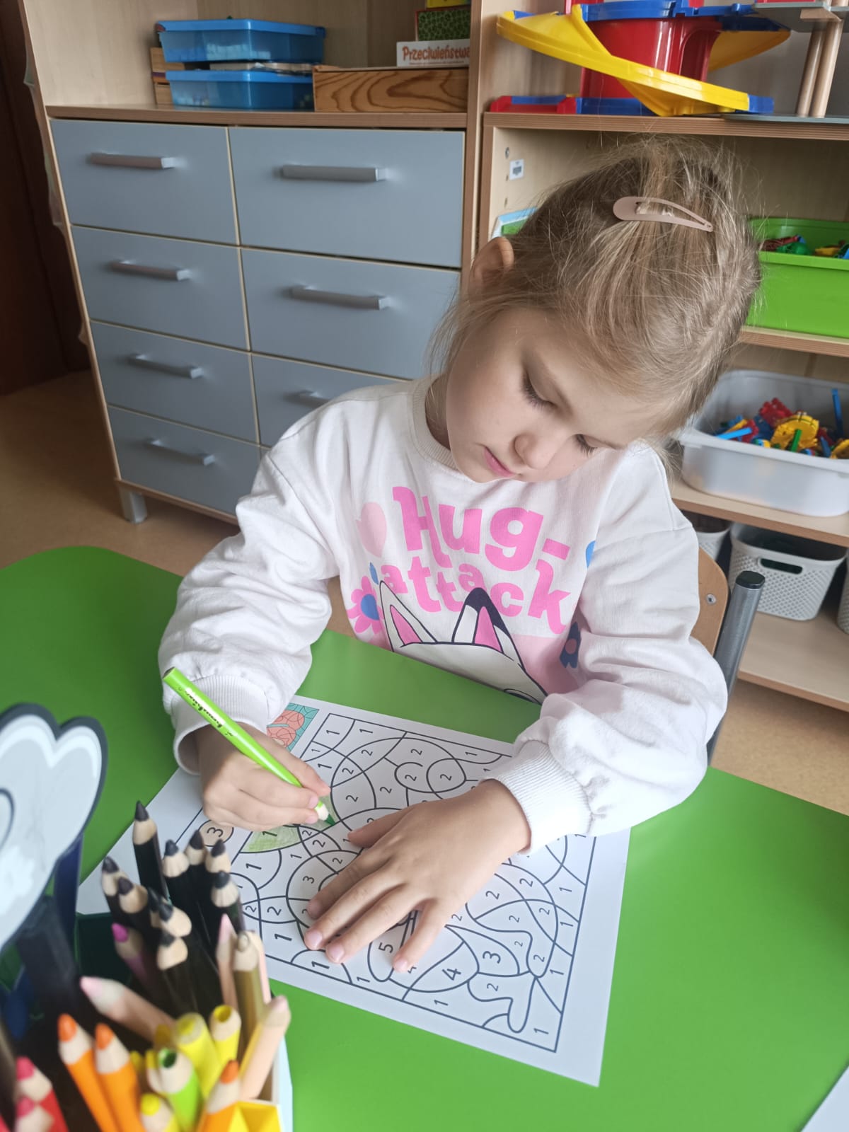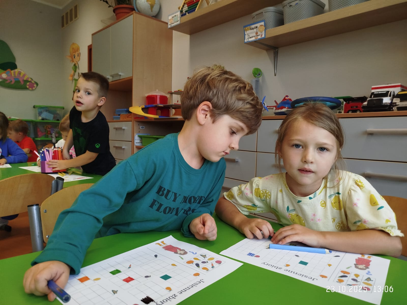 CodeWeek, czyli Europejski Tydzień Kodowania, to inicjatywa promująca programowanie i umiejętności cyfrowe wśród uczestników w ciekawy i interesujący sposób. W tym czasie przedszkolaki podejmowały wiele ciekawych aktywności, rozbudzały swoją wyobraźnię, szukały rozwiązań oraz wyciągały wnioski podczas wspólnych zabaw. Dzieci zaznajomiły się z różnymi narzędziami do kodowania i chętnie uczestniczyły w zabawach. Przedszkolaki poprzez kodowanie rozwijały min. logiczne myślenie, wyobraźnię, spostrzegawczość, dedukcję, umiejętność współpracy, planowania i analizowania. Podczas zabawy dydaktycznej "Skarby jesieni" na macie do kodowania ułożyły wzór kasztana wzdłuż osi symetrii, poznając przy tym nowe pojęcie matematyczne. Zadania te sprawiły dzieciom dużą frajdę, dlatego też będziemy kontynuować naszą przygodę z kodowaniem w kolejnych latach.