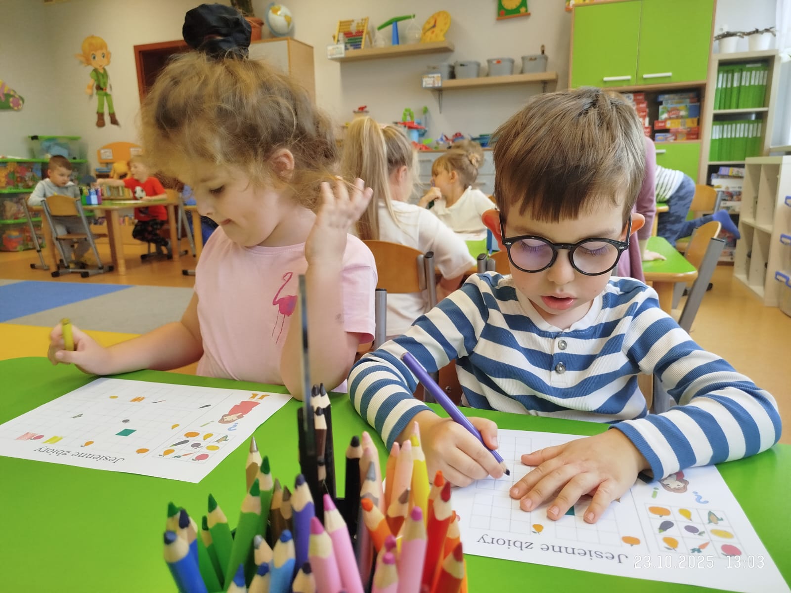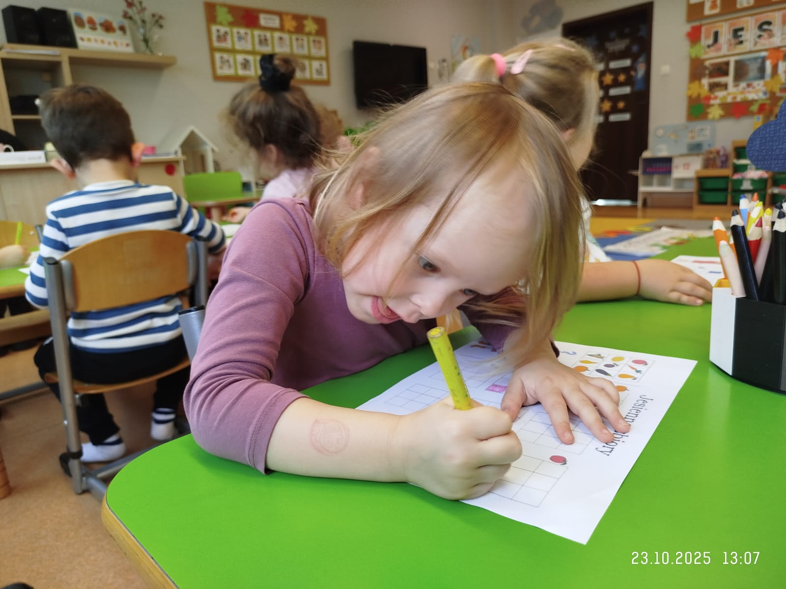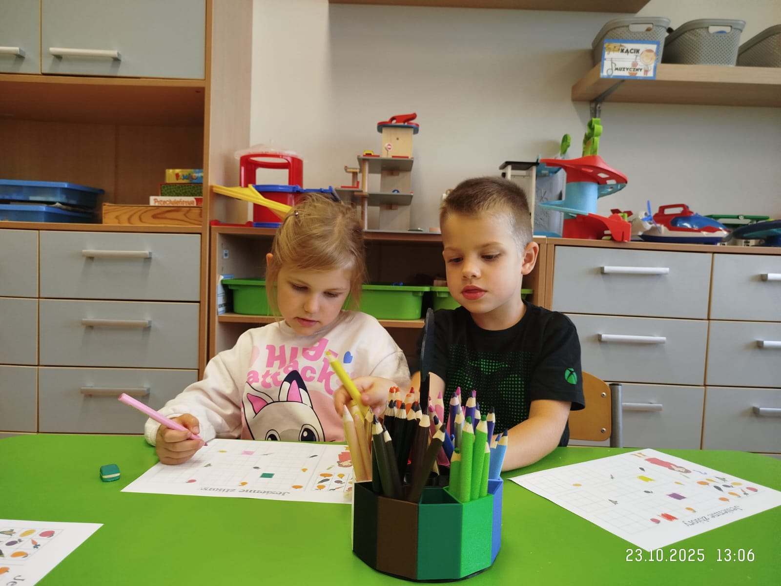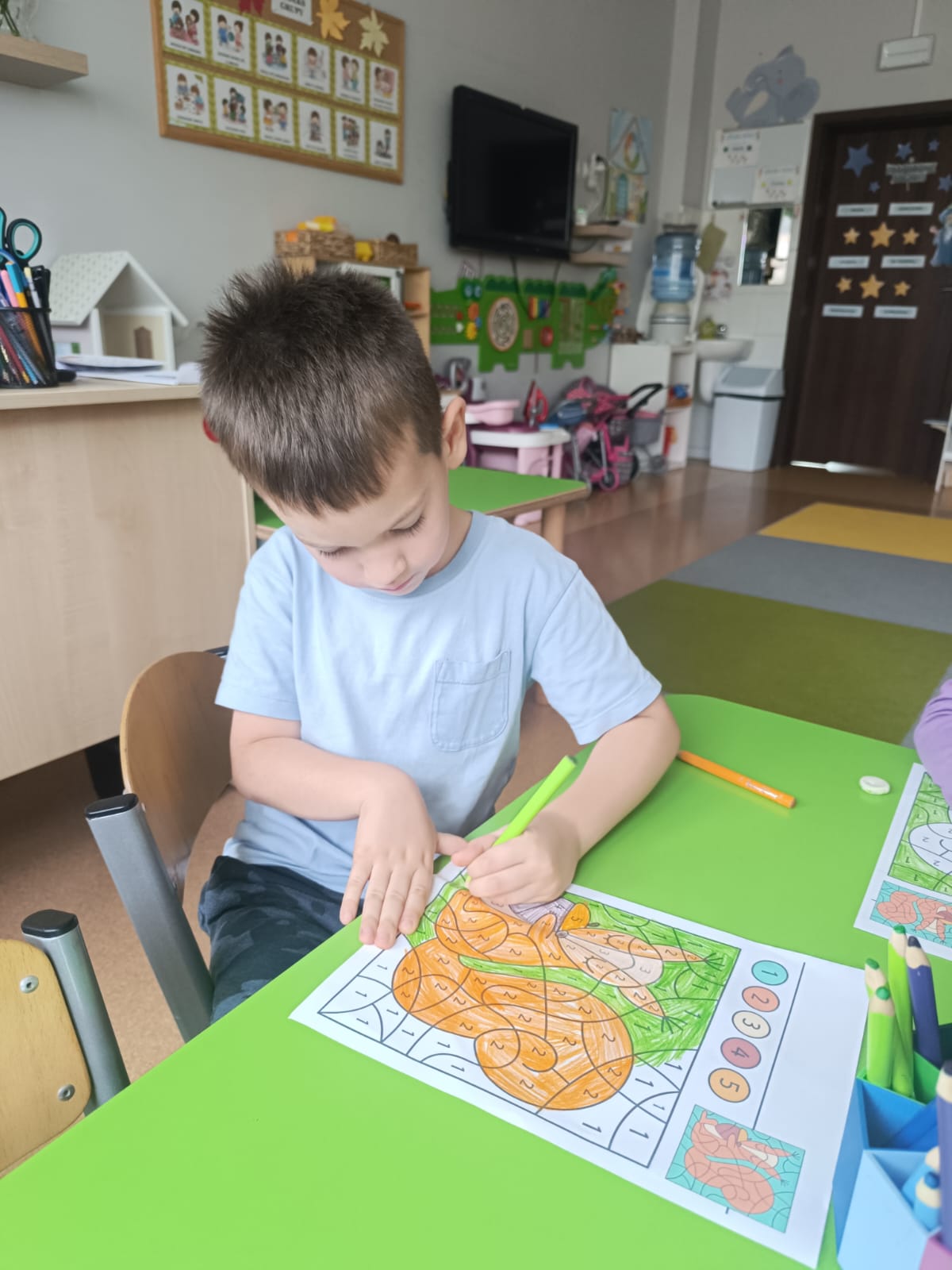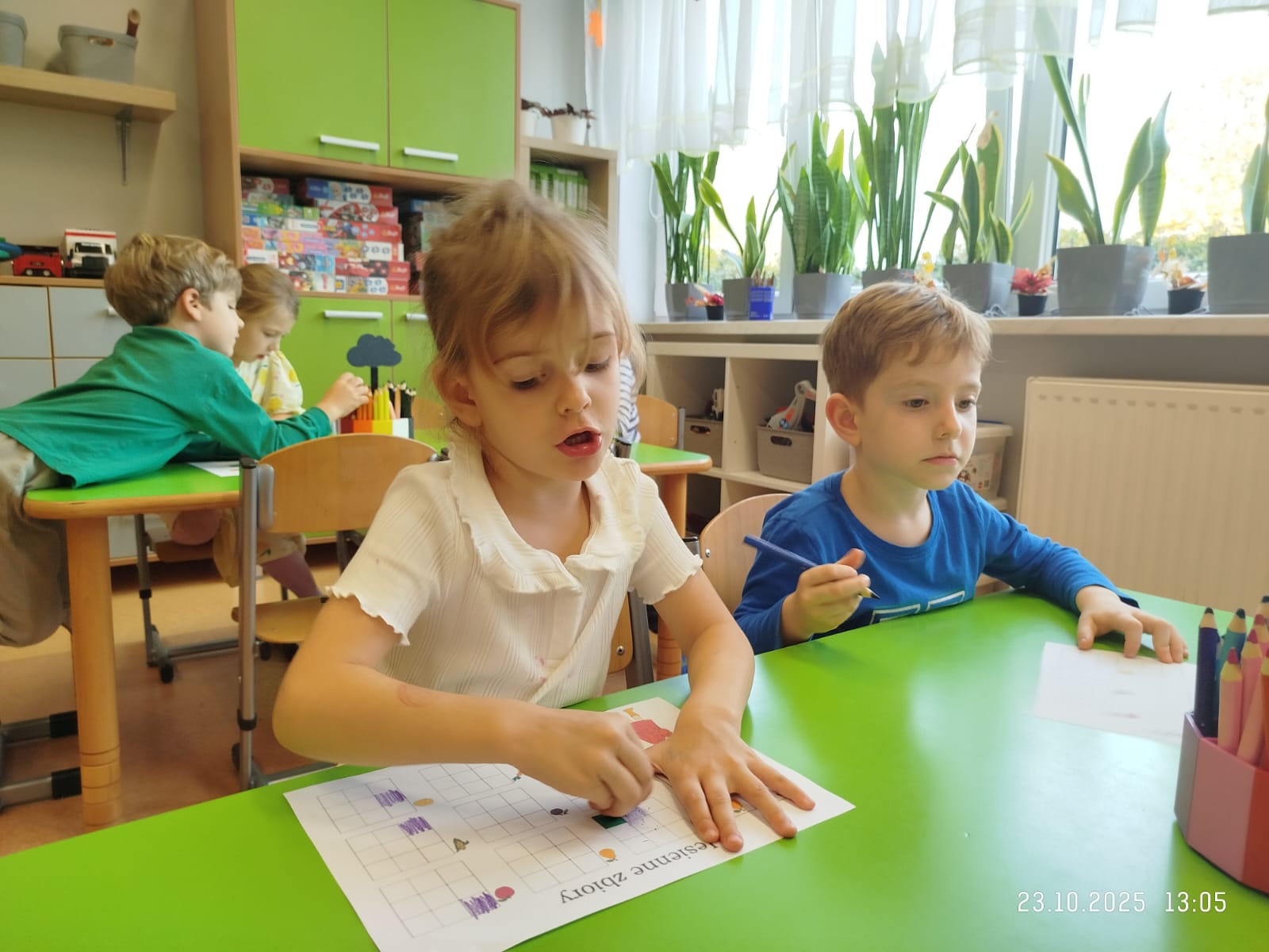 CodeWeek, czyli Europejski Tydzień Kodowania, to inicjatywa promująca programowanie i umiejętności cyfrowe wśród uczestników w ciekawy i interesujący sposób. W tym czasie przedszkolaki podejmowały wiele ciekawych aktywności, rozbudzały swoją wyobraźnię, szukały rozwiązań oraz wyciągały wnioski podczas wspólnych zabaw. Dzieci zaznajomiły się z różnymi narzędziami do kodowania i chętnie uczestniczyły w zabawach. Przedszkolaki poprzez kodowanie rozwijały min. logiczne myślenie, wyobraźnię, spostrzegawczość, dedukcję, umiejętność współpracy, planowania i analizowania. Podczas zabawy dydaktycznej "Skarby jesieni" na macie do kodowania ułożyły wzór kasztana wzdłuż osi symetrii, poznając przy tym nowe pojęcie matematyczne. Zadania te sprawiły dzieciom dużą frajdę, dlatego też będziemy kontynuować naszą przygodę z kodowaniem w kolejnych latach.