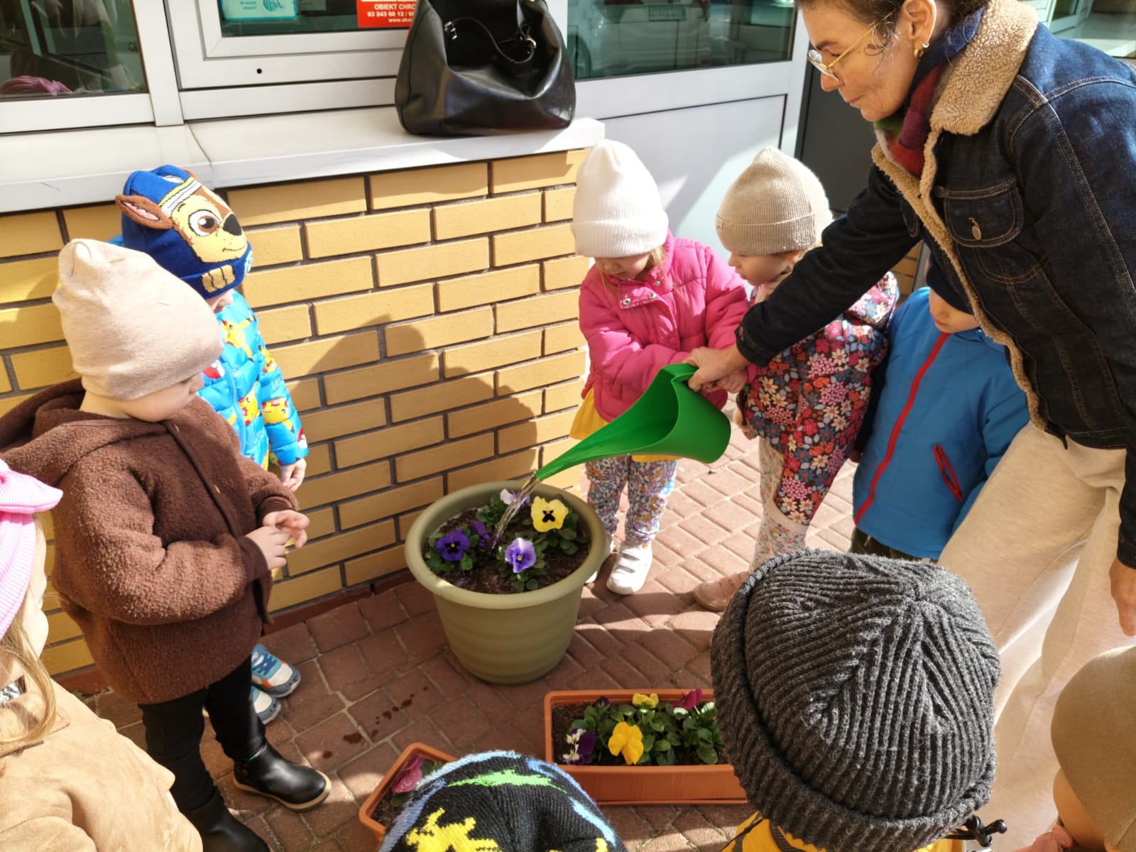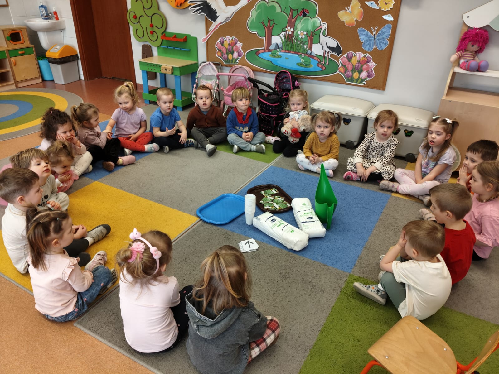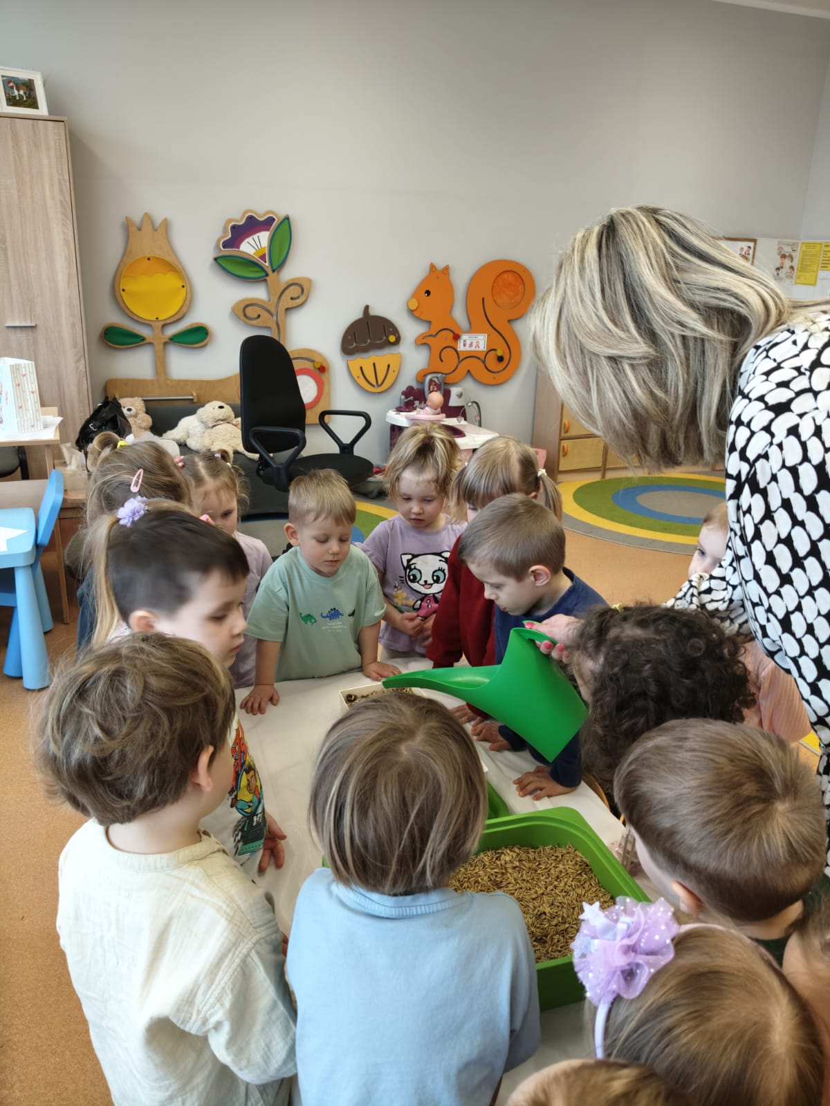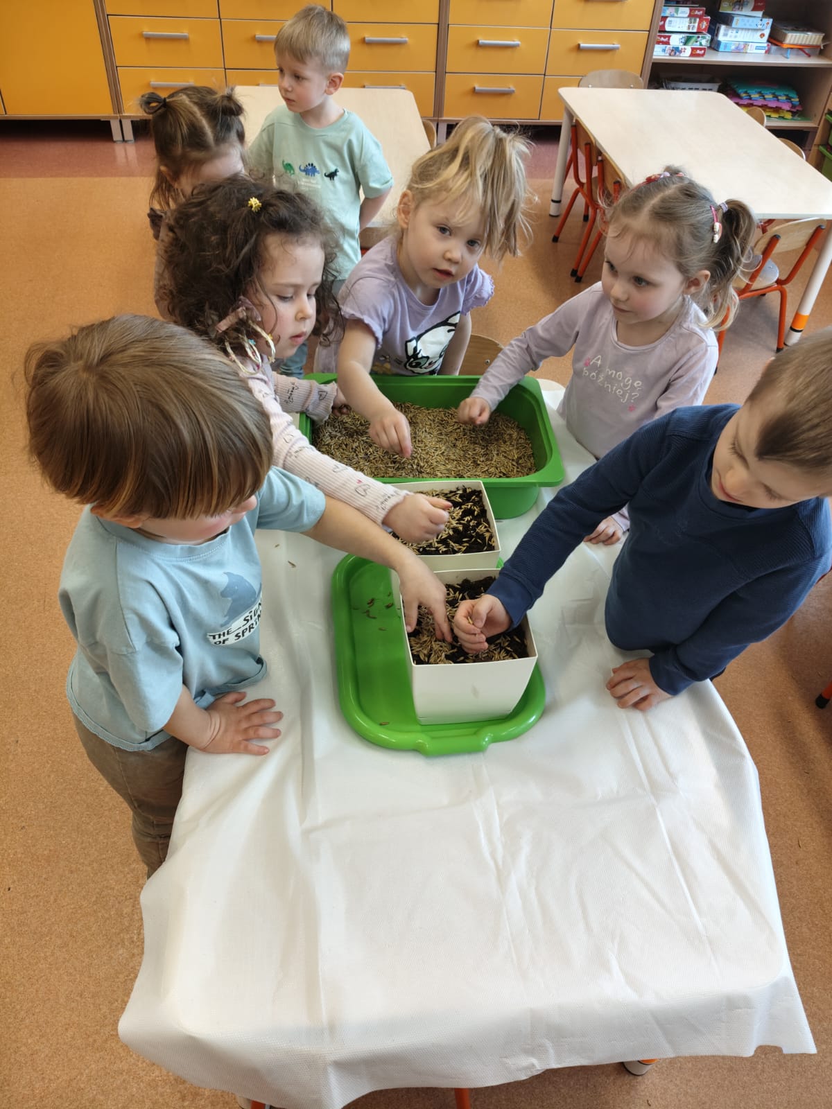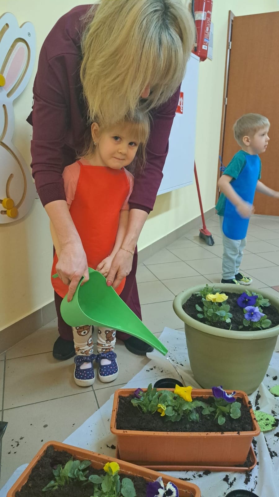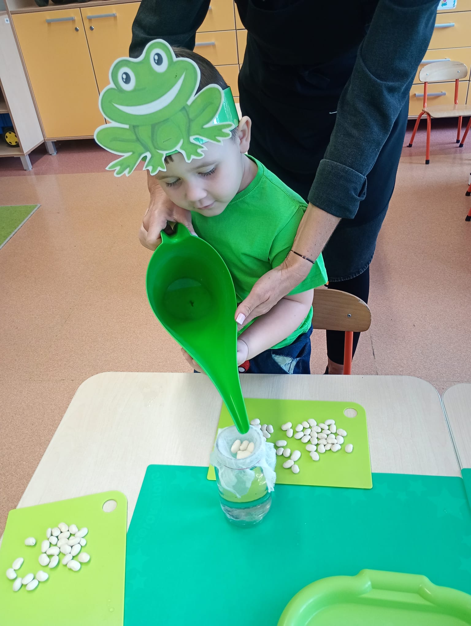 Wraz z nadejściem wiosny z powodzeniem założyliśmy zielony kącik na parapecie okiennym. Dzieci przy niewielkiej pomocy, przygotowały niezbędny warsztat pracy tj.: ziemię, nasiona, cebulki, wodę. Następnie samodzielnie zasiały nasiona rzeżuchy w pojemniczkach z namoczoną watą, w słoiczkach z wodą na gazie ziarenka fasoli, a w pojemniczkach z ziemią zasadziły cebulki i kolorowe bratki. Założone uprawy dzieci pielęgnowały, podlewał oraz każdego dnia obserwowały zmiany zachodzące w roślinach, zauważały kiełkowanie, wzrost łodyg, liści, dowiedziały się, co jest potrzebne roślinom do wzrostu. Miały możliwość zapoznania się z różnymi rodzajami nasion oraz dowiedziały jakie są sposoby uprawy roślin i ich pielęgnacji. Od momentu zakładania zielonego ogródka, doświadczały wielu wrażeń zmysłowych. Przygotowanie podłoża, dotykanie różnych części roślin, czynności pielęgnacyjne – to stymulacja zmysłu dotyku. Przy sprawdzaniu twardości nasion, przy sadzenie aktywowały czucie głębokie. Przyglądanie się efektom hodowli, wyszukiwanie zmian i innych ciekawostek pobudzało do pracy zmysł wzroku, nie zapominaliśmy także o zmysłach powonienia i smaku. Uprawa ogródka ziołowego była również naturalną okazją do rozmów z dziećmi o zasadach zdrowego żywienia. Udział w projekcie był dla dzieci wyzwaniem, które stawiało je w roli aktywnych i czujnych obserwatorów otaczającego świata. Rozbudzało zainteresowania, mobilizowało do poszukiwania odpowiedzi na różne pytania, uczyło twórczego myślenia i zaspokajało potrzeby poznawcze. Dzieci uczyły się planowania i organizacji pracy, współpracy, pozytywnej komunikacji. Doświadczały radości, satysfakcji, oraz wzmacniały poczucie własnej wartości.