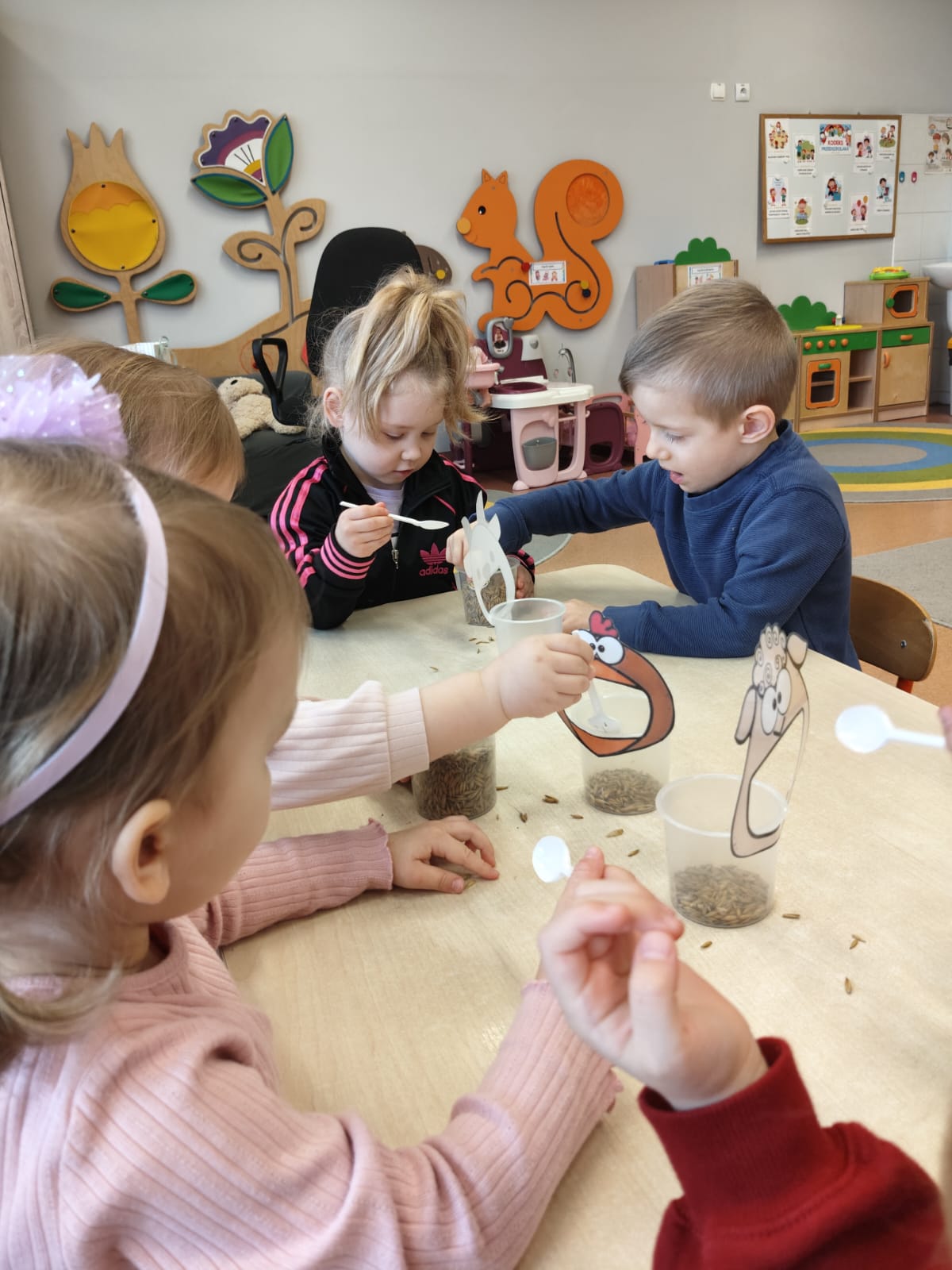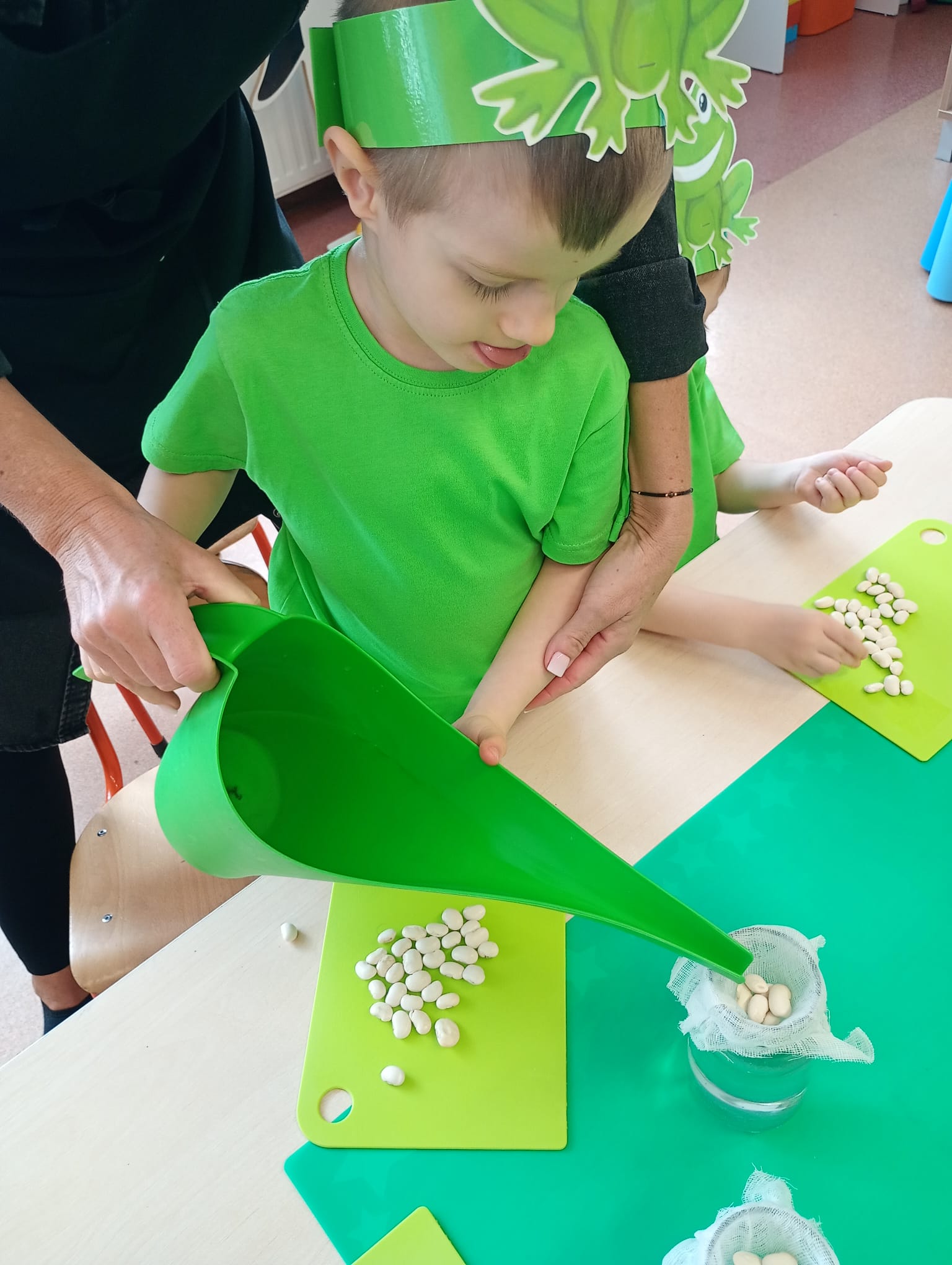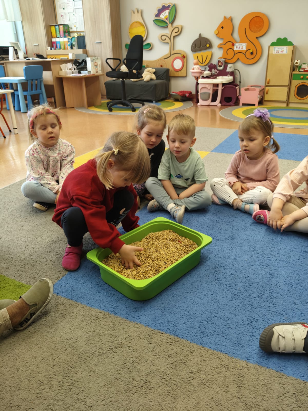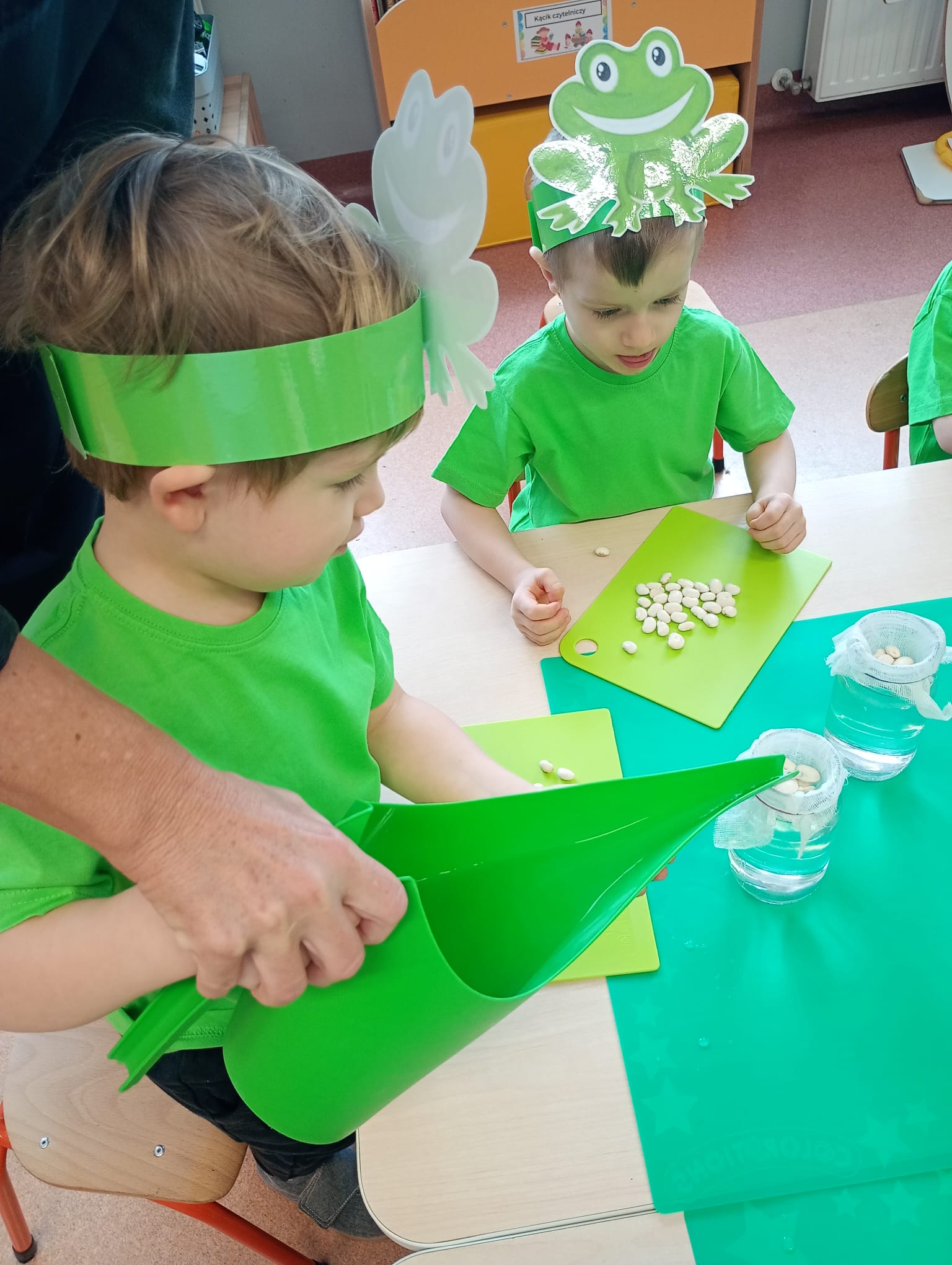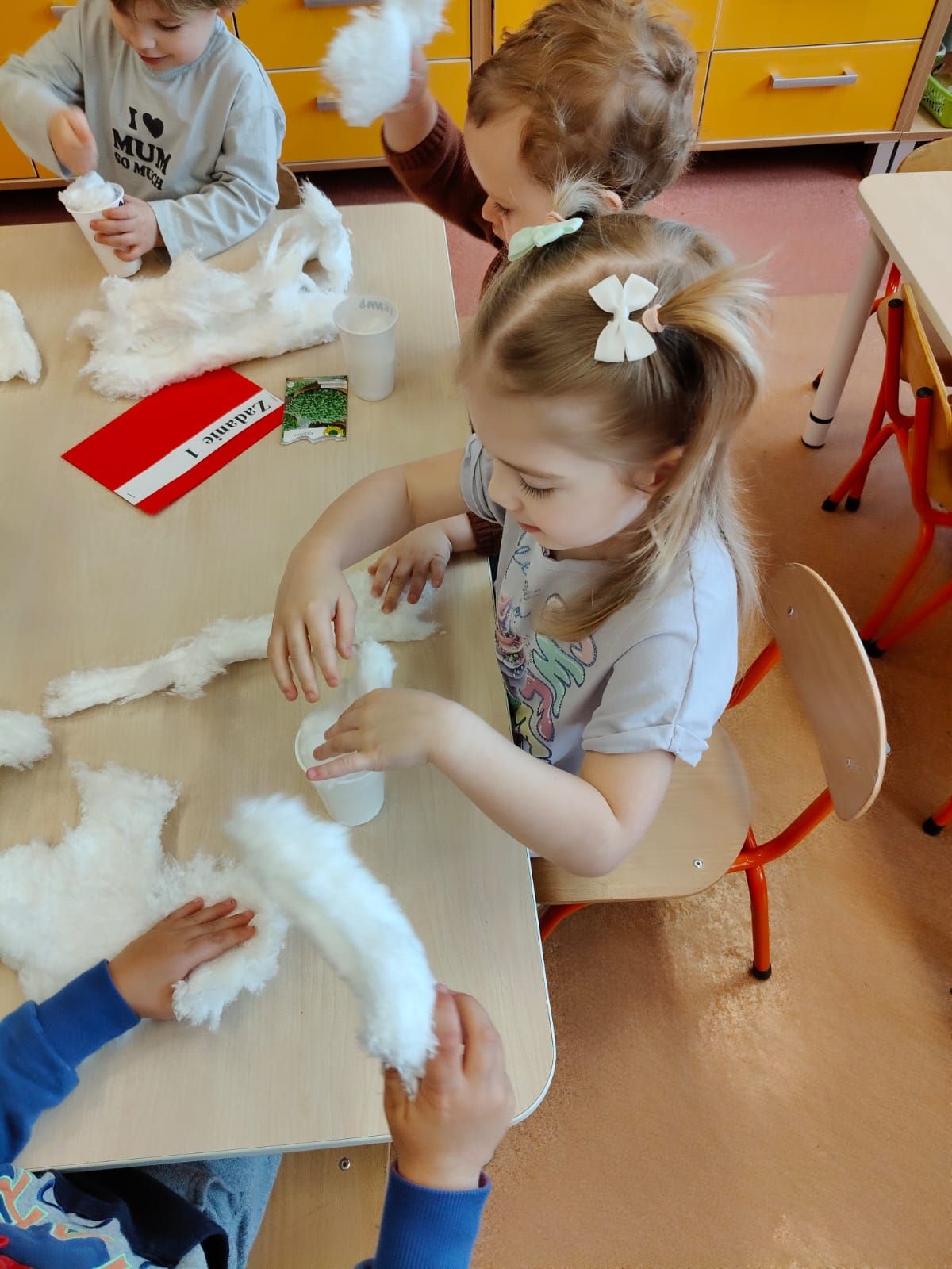 Wraz z nadejściem wiosny z powodzeniem założyliśmy zielony kącik na parapecie okiennym. Dzieci przy niewielkiej pomocy, przygotowały niezbędny warsztat pracy tj.: ziemię, nasiona, cebulki, wodę. Następnie samodzielnie zasiały nasiona rzeżuchy w pojemniczkach z namoczoną watą, w słoiczkach z wodą na gazie ziarenka fasoli, a w pojemniczkach z ziemią zasadziły cebulki i kolorowe bratki. Założone uprawy dzieci pielęgnowały, podlewał oraz każdego dnia obserwowały zmiany zachodzące w roślinach, zauważały kiełkowanie, wzrost łodyg, liści, dowiedziały się, co jest potrzebne roślinom do wzrostu. Miały możliwość zapoznania się z różnymi rodzajami nasion oraz dowiedziały jakie są sposoby uprawy roślin i ich pielęgnacji. Od momentu zakładania zielonego ogródka, doświadczały wielu wrażeń zmysłowych. Przygotowanie podłoża, dotykanie różnych części roślin, czynności pielęgnacyjne – to stymulacja zmysłu dotyku. Przy sprawdzaniu twardości nasion, przy sadzenie aktywowały czucie głębokie. Przyglądanie się efektom hodowli, wyszukiwanie zmian i innych ciekawostek pobudzało do pracy zmysł wzroku, nie zapominaliśmy także o zmysłach powonienia i smaku. Uprawa ogródka ziołowego była również naturalną okazją do rozmów z dziećmi o zasadach zdrowego żywienia. Udział w projekcie był dla dzieci wyzwaniem, które stawiało je w roli aktywnych i czujnych obserwatorów otaczającego świata. Rozbudzało zainteresowania, mobilizowało do poszukiwania odpowiedzi na różne pytania, uczyło twórczego myślenia i zaspokajało potrzeby poznawcze. Dzieci uczyły się planowania i organizacji pracy, współpracy, pozytywnej komunikacji. Doświadczały radości, satysfakcji, oraz wzmacniały poczucie własnej wartości.