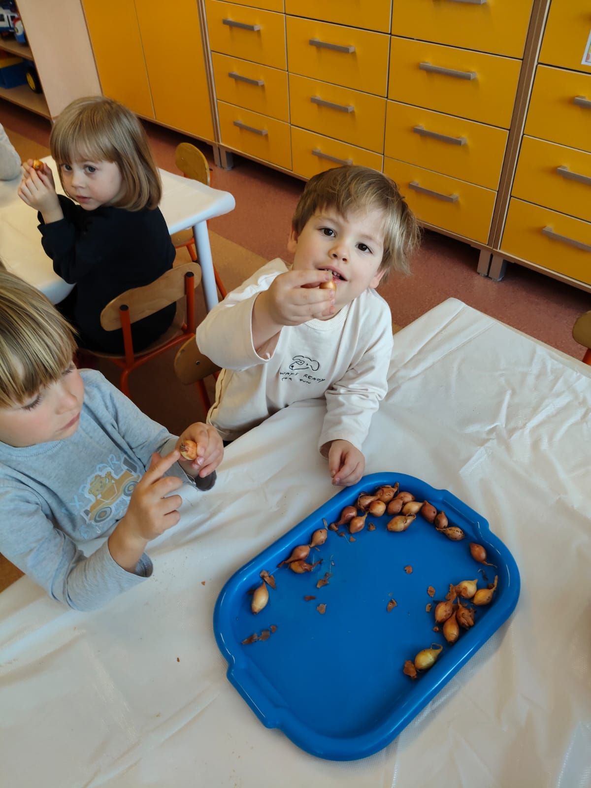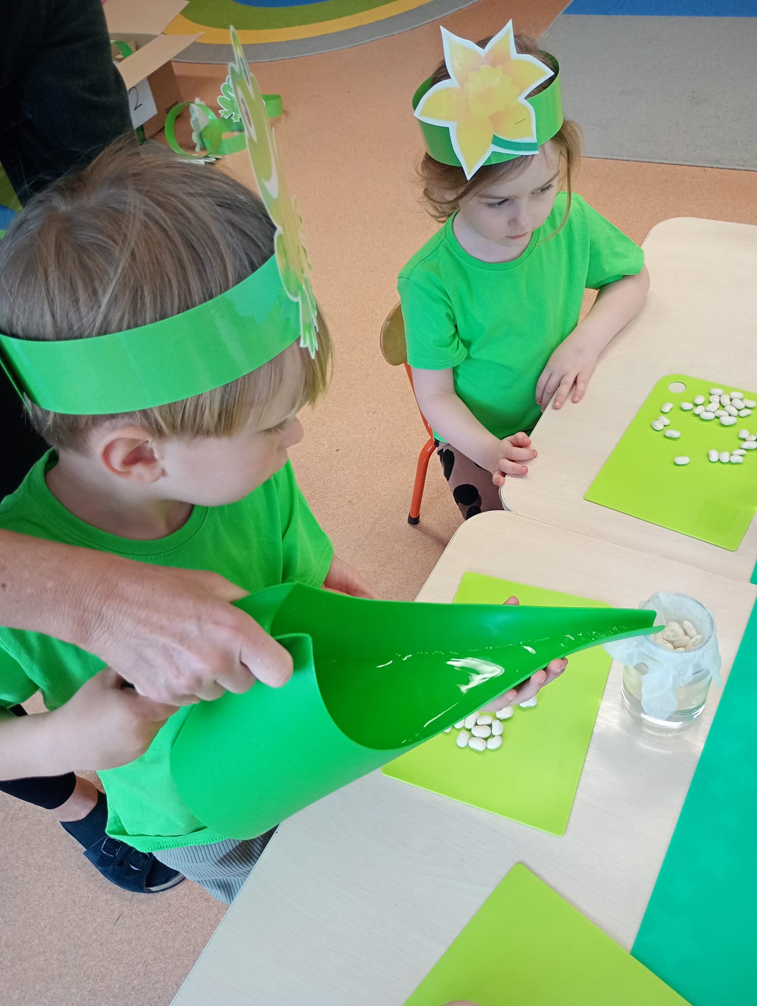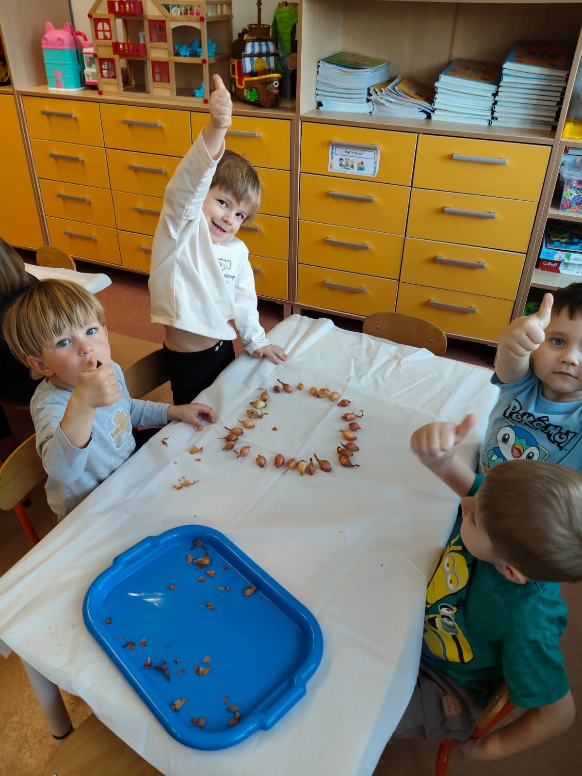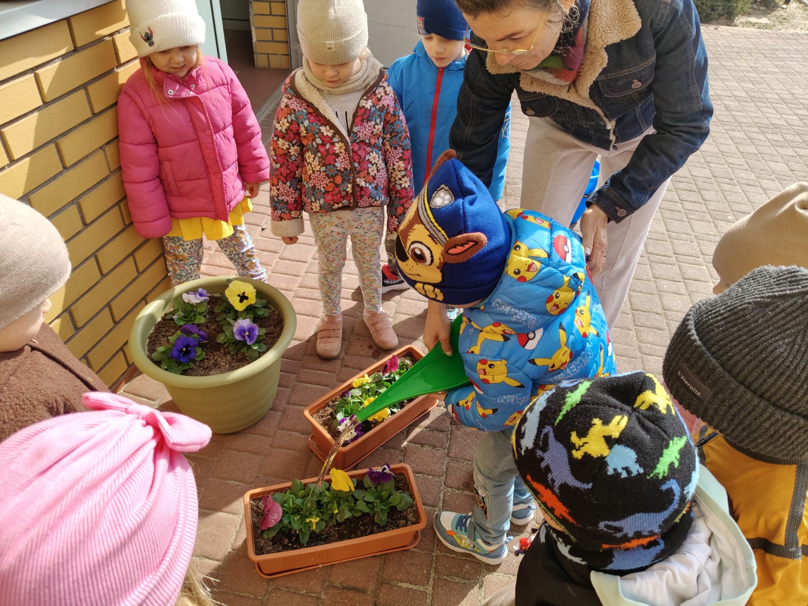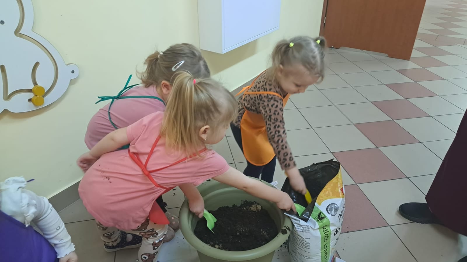 Wraz z nadejściem wiosny z powodzeniem założyliśmy zielony kącik na parapecie okiennym. Dzieci przy niewielkiej pomocy, przygotowały niezbędny warsztat pracy tj.: ziemię, nasiona, cebulki, wodę. Następnie samodzielnie zasiały nasiona rzeżuchy w pojemniczkach z namoczoną watą, w słoiczkach z wodą na gazie ziarenka fasoli, a w pojemniczkach z ziemią zasadziły cebulki i kolorowe bratki. Założone uprawy dzieci pielęgnowały, podlewał oraz każdego dnia obserwowały zmiany zachodzące w roślinach, zauważały kiełkowanie, wzrost łodyg, liści, dowiedziały się, co jest potrzebne roślinom do wzrostu. Miały możliwość zapoznania się z różnymi rodzajami nasion oraz dowiedziały jakie są sposoby uprawy roślin i ich pielęgnacji. Od momentu zakładania zielonego ogródka, doświadczały wielu wrażeń zmysłowych. Przygotowanie podłoża, dotykanie różnych części roślin, czynności pielęgnacyjne – to stymulacja zmysłu dotyku. Przy sprawdzaniu twardości nasion, przy sadzenie aktywowały czucie głębokie. Przyglądanie się efektom hodowli, wyszukiwanie zmian i innych ciekawostek pobudzało do pracy zmysł wzroku, nie zapominaliśmy także o zmysłach powonienia i smaku. Uprawa ogródka ziołowego była również naturalną okazją do rozmów z dziećmi o zasadach zdrowego żywienia. Udział w projekcie był dla dzieci wyzwaniem, które stawiało je w roli aktywnych i czujnych obserwatorów otaczającego świata. Rozbudzało zainteresowania, mobilizowało do poszukiwania odpowiedzi na różne pytania, uczyło twórczego myślenia i zaspokajało potrzeby poznawcze. Dzieci uczyły się planowania i organizacji pracy, współpracy, pozytywnej komunikacji. Doświadczały radości, satysfakcji, oraz wzmacniały poczucie własnej wartości.
