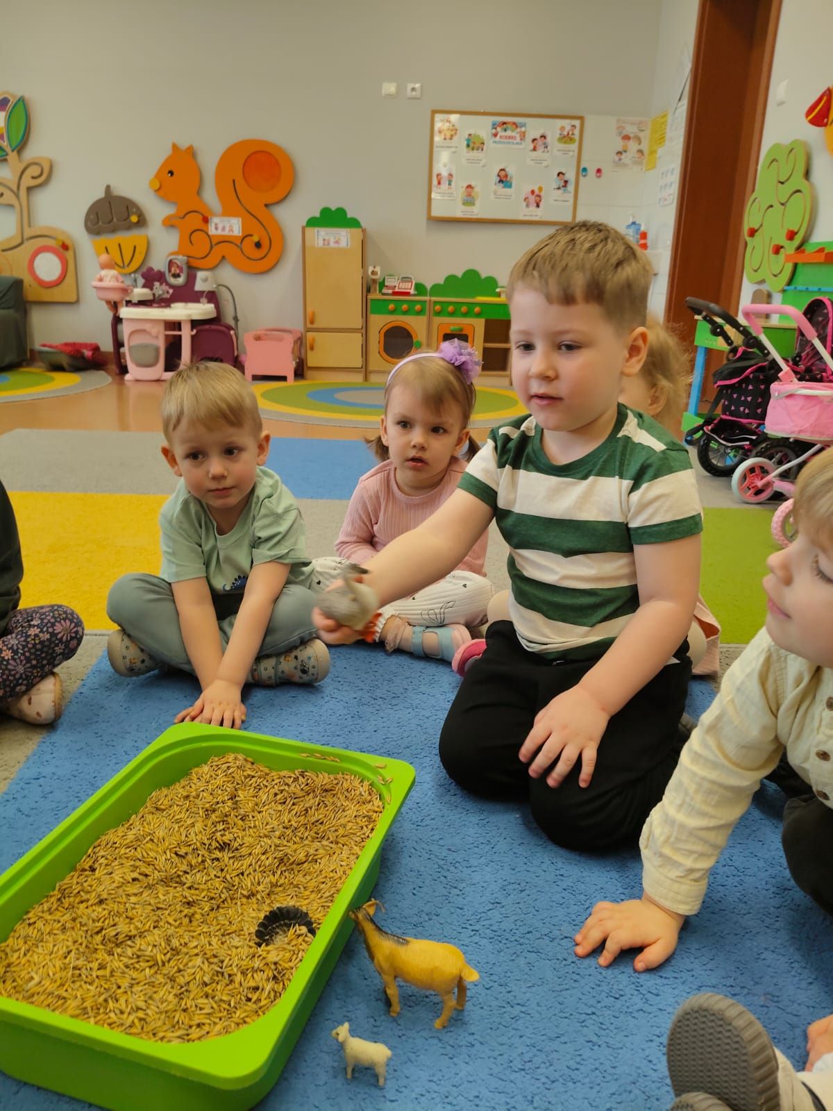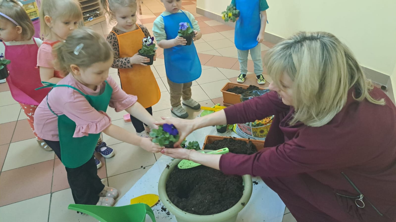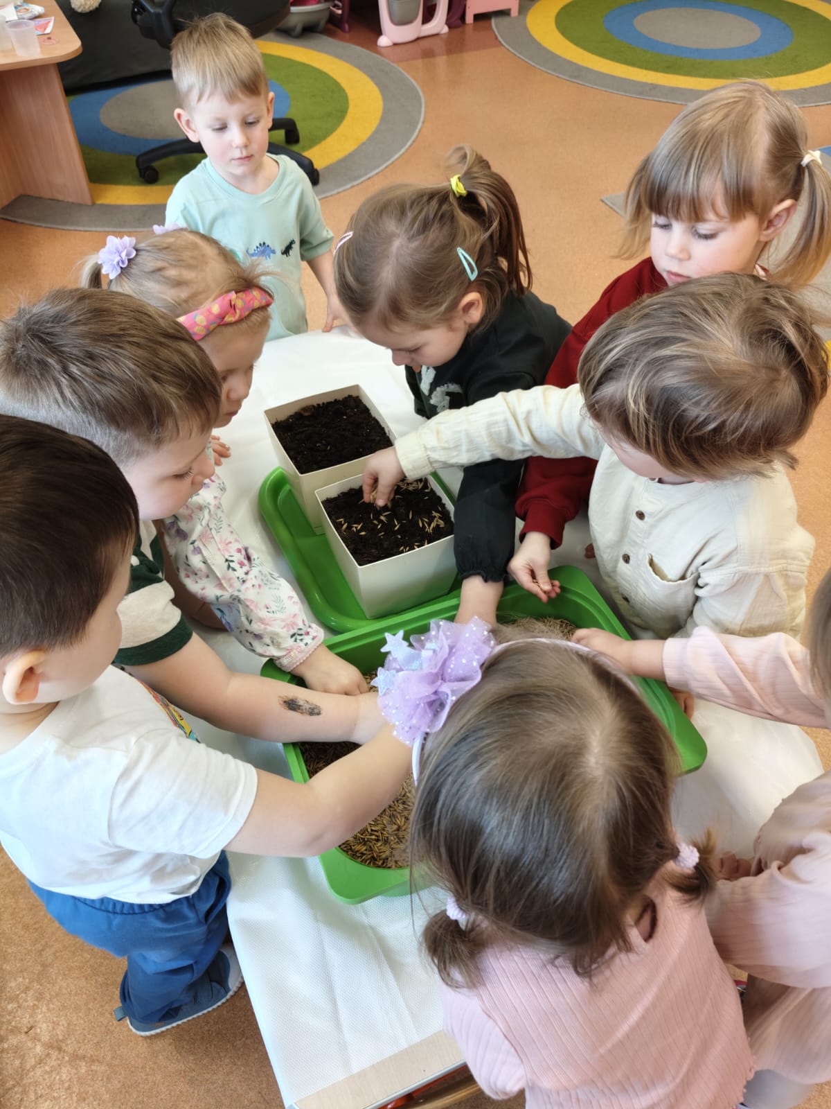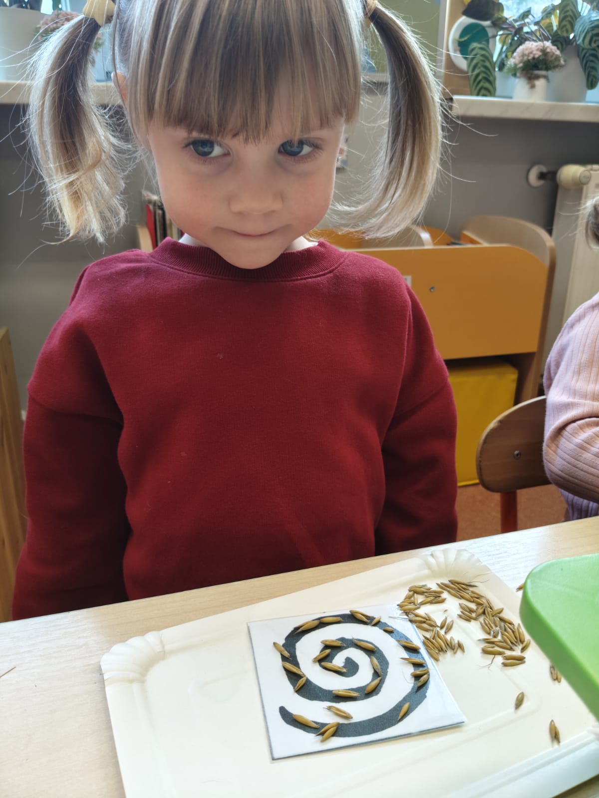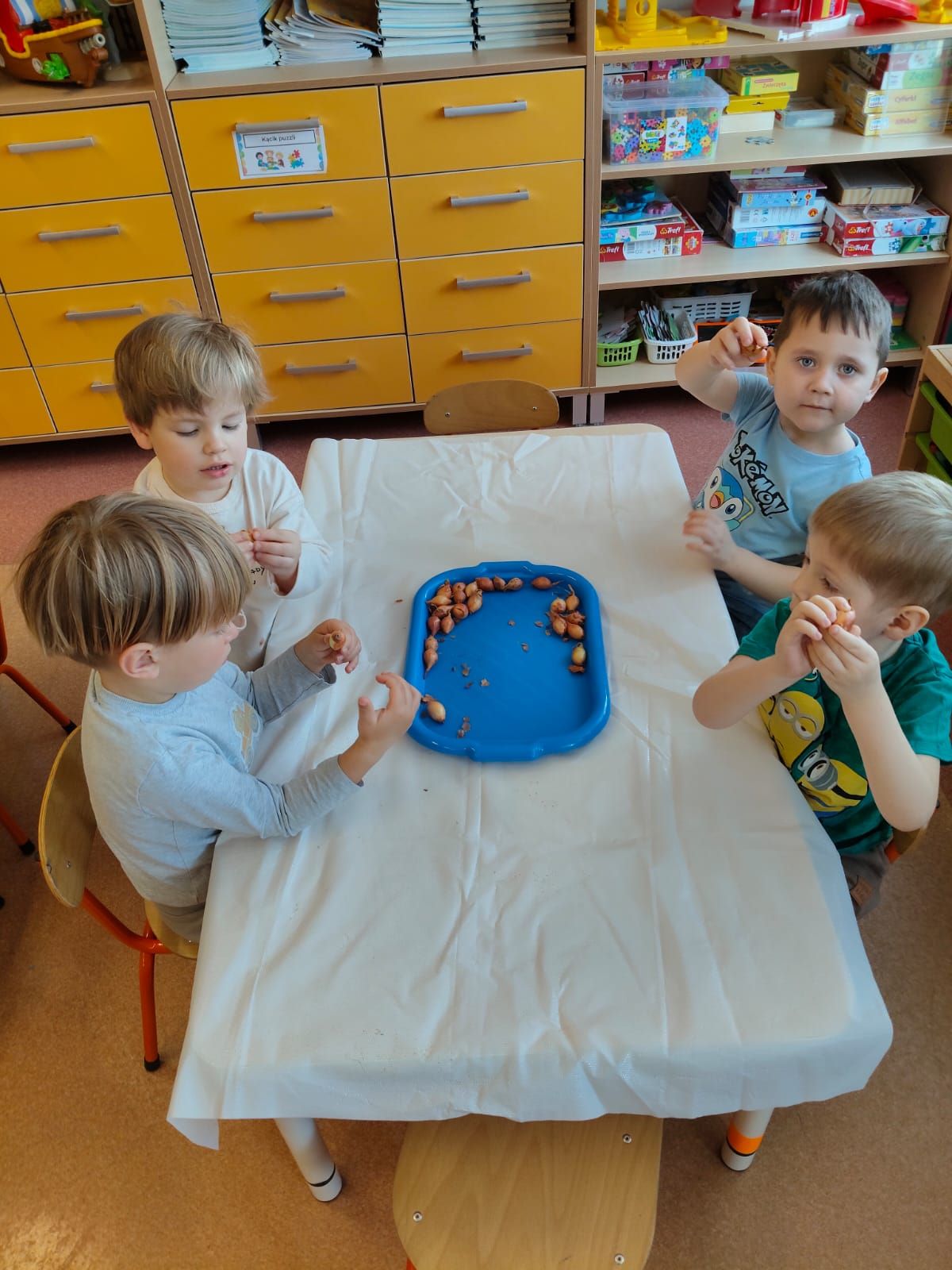 Wraz z nadejściem wiosny z powodzeniem założyliśmy zielony kącik na parapecie okiennym. Dzieci przy niewielkiej pomocy, przygotowały niezbędny warsztat pracy tj.: ziemię, nasiona, cebulki, wodę. Następnie samodzielnie zasiały nasiona rzeżuchy w pojemniczkach z namoczoną watą, w słoiczkach z wodą na gazie ziarenka fasoli, a w pojemniczkach z ziemią zasadziły cebulki i kolorowe bratki. Założone uprawy dzieci pielęgnowały, podlewał oraz każdego dnia obserwowały zmiany zachodzące w roślinach, zauważały kiełkowanie, wzrost łodyg, liści, dowiedziały się, co jest potrzebne roślinom do wzrostu. Miały możliwość zapoznania się z różnymi rodzajami nasion oraz dowiedziały jakie są sposoby uprawy roślin i ich pielęgnacji. Od momentu zakładania zielonego ogródka, doświadczały wielu wrażeń zmysłowych. Przygotowanie podłoża, dotykanie różnych części roślin, czynności pielęgnacyjne – to stymulacja zmysłu dotyku. Przy sprawdzaniu twardości nasion, przy sadzenie aktywowały czucie głębokie. Przyglądanie się efektom hodowli, wyszukiwanie zmian i innych ciekawostek pobudzało do pracy zmysł wzroku, nie zapominaliśmy także o zmysłach powonienia i smaku. Uprawa ogródka ziołowego była również naturalną okazją do rozmów z dziećmi o zasadach zdrowego żywienia. Udział w projekcie był dla dzieci wyzwaniem, które stawiało je w roli aktywnych i czujnych obserwatorów otaczającego świata. Rozbudzało zainteresowania, mobilizowało do poszukiwania odpowiedzi na różne pytania, uczyło twórczego myślenia i zaspokajało potrzeby poznawcze. Dzieci uczyły się planowania i organizacji pracy, współpracy, pozytywnej komunikacji. Doświadczały radości, satysfakcji, oraz wzmacniały poczucie własnej wartości.