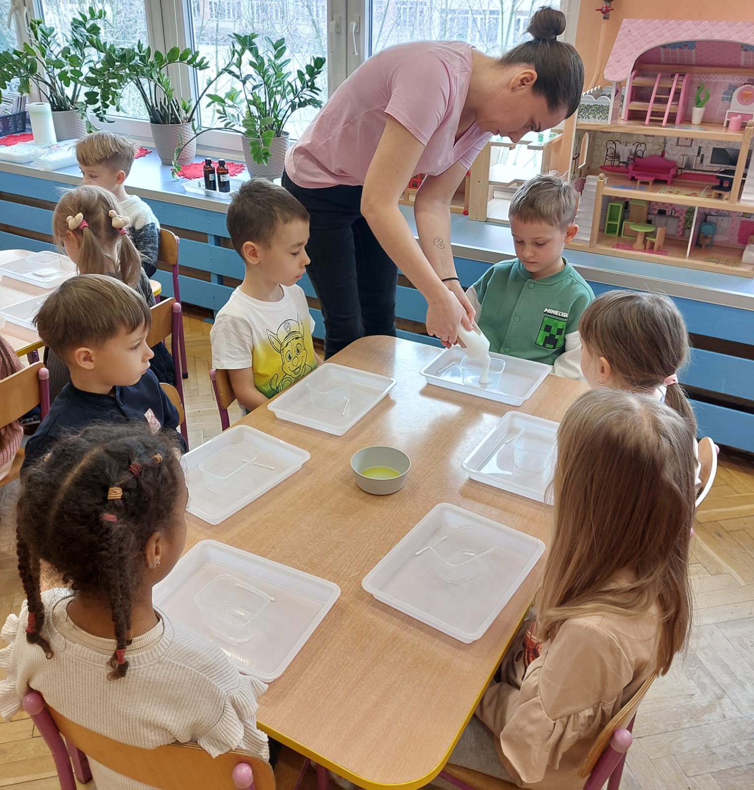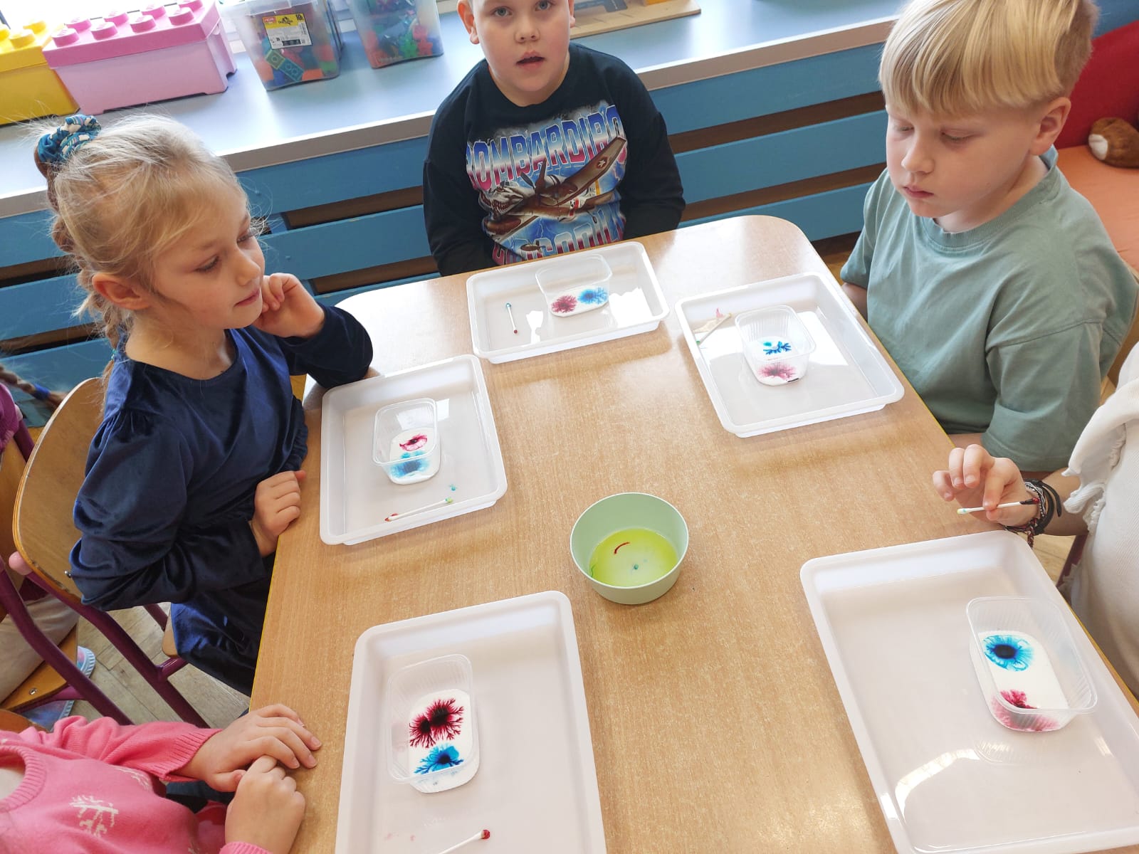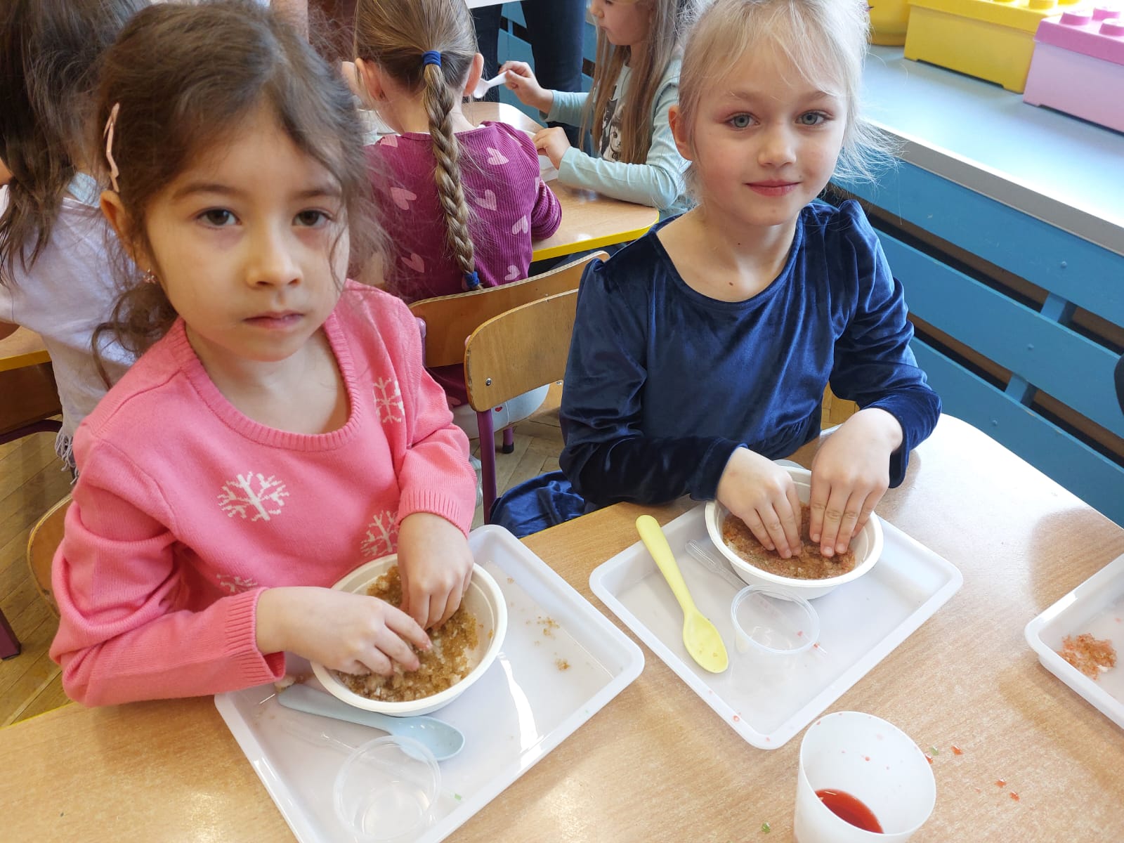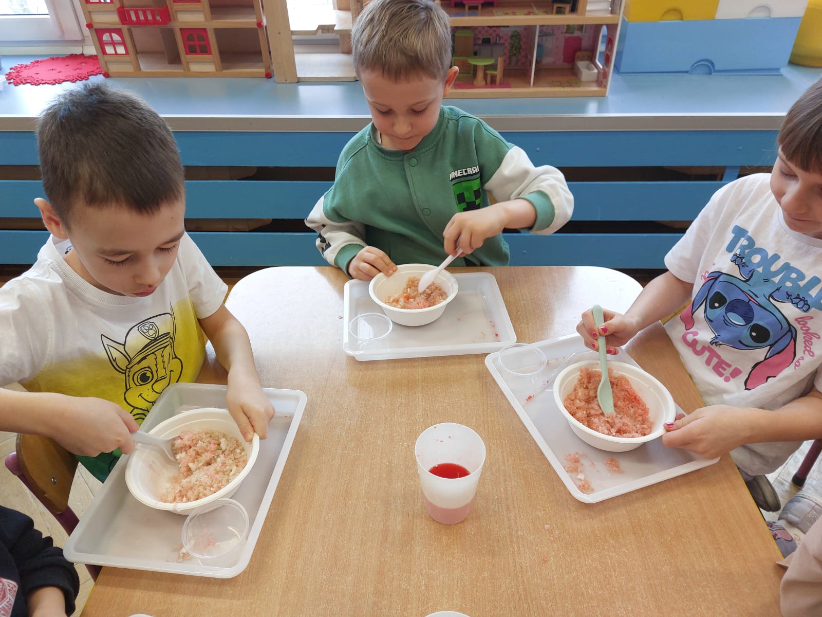 Zima to doskonały czas na odkrywanie fascynujących zjawisk przyrodniczych! Dzieci z grupy V miały okazję dziś uczestniczyć w niezwykłych eksperymentach, które wywołały prawdziwy efekt WOW! Dzięki nim nauka stała się świetną zabawą, a mali odkrywcy byli zachwyceni. Dzisiejsze eksperymenty to „kolorowe śnieżynki” i „sztuczny śnieg”. Pierwszy z nich polegał na połączeniu kleju z barwnikiem i płynem do naczyń, co dało piękne kolorowe płatki. Drugi eksperyment polegał na stworzeniu sztucznego białego i kolorowego śniegu, który po połączeniu poliakrylu sodu z wodą był biały, następnie dzieci dodały kolorowy barwnik, który zmienił śnieg w kolor. To były prawdziwe czary…. Te zimowe eksperymenty pokazały dzieciom, że nauka może być ekscytująca i pełna niespodzianek! To była świetna okazja do rozwijania kreatywności oraz zdobywania wiedzy poprzez zabawę.