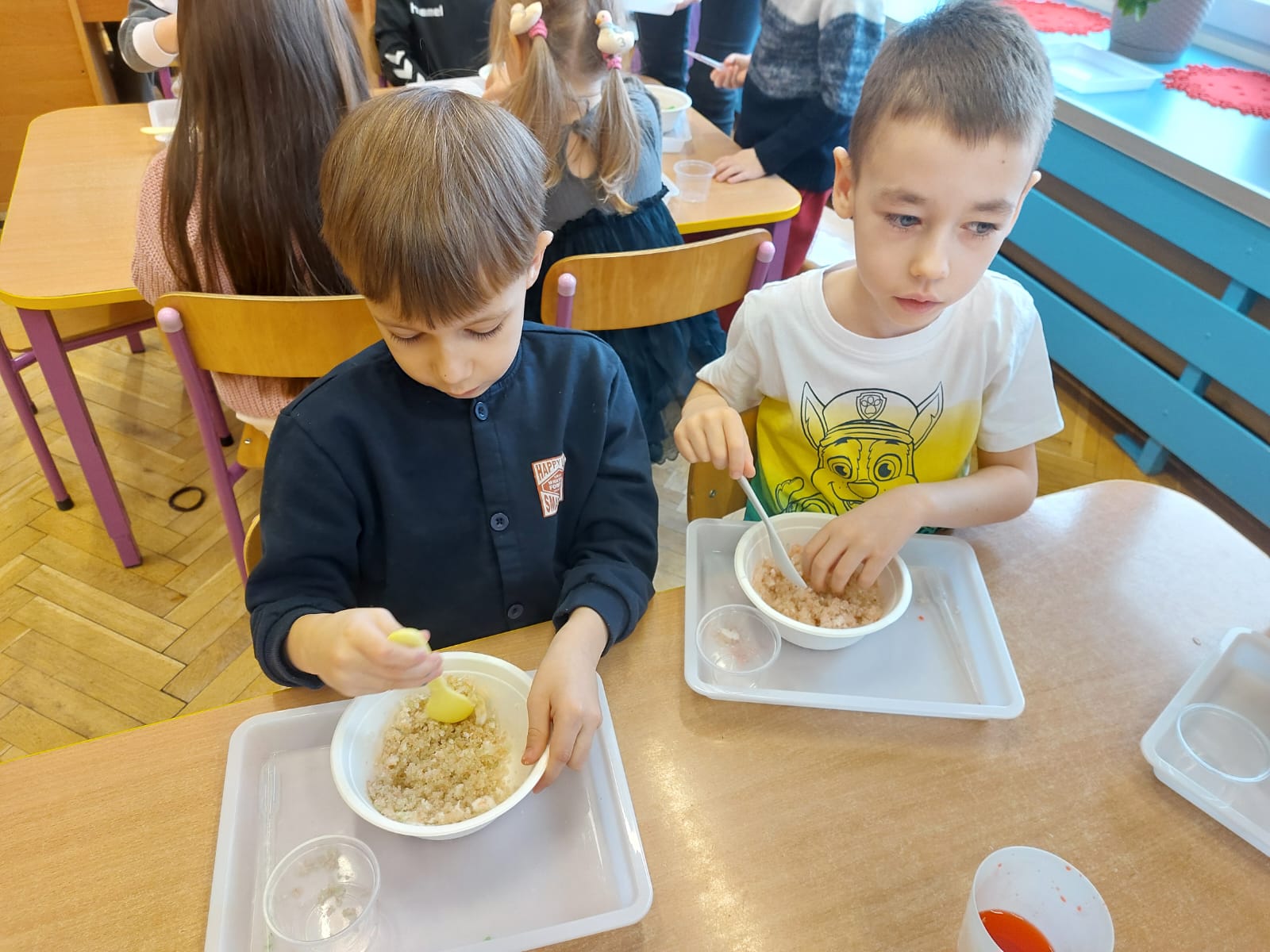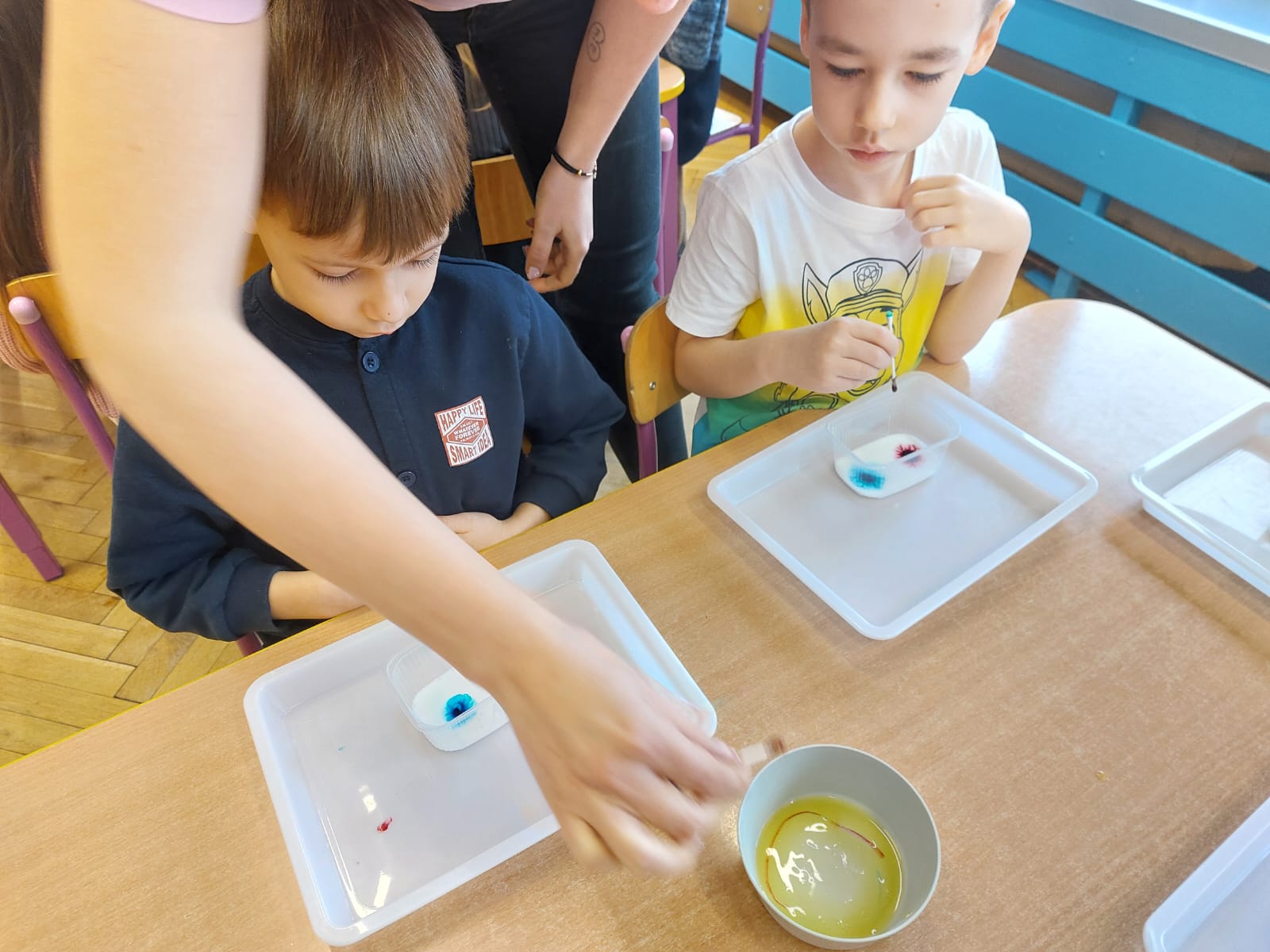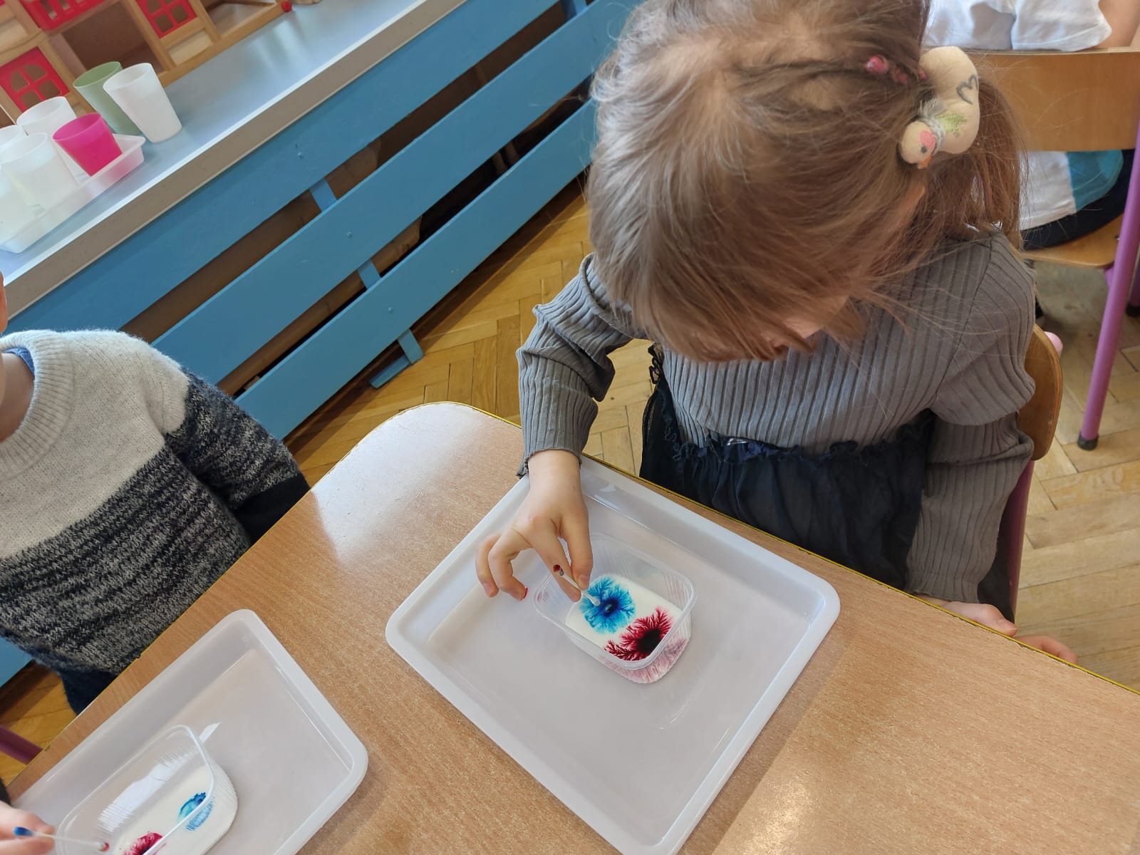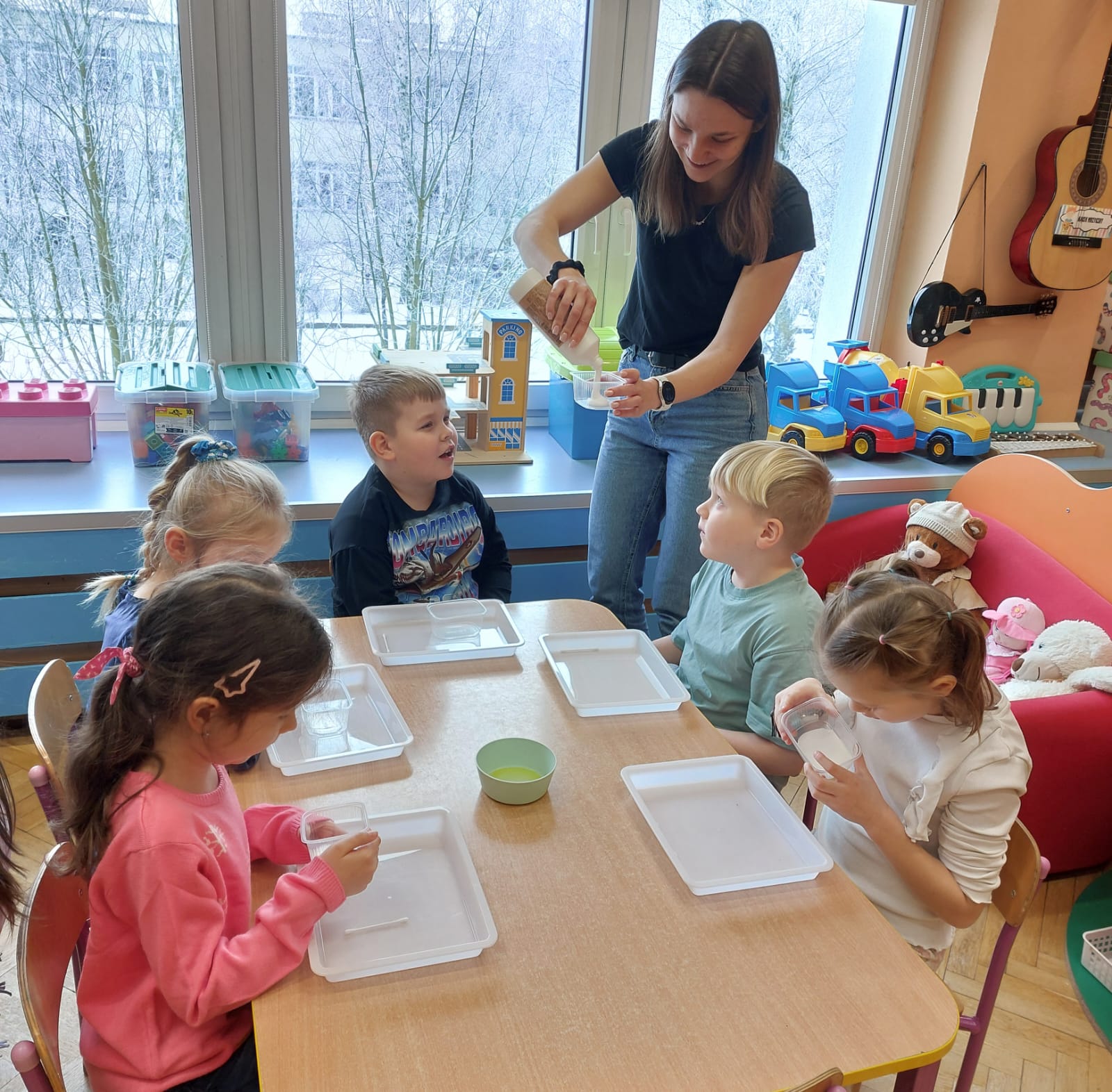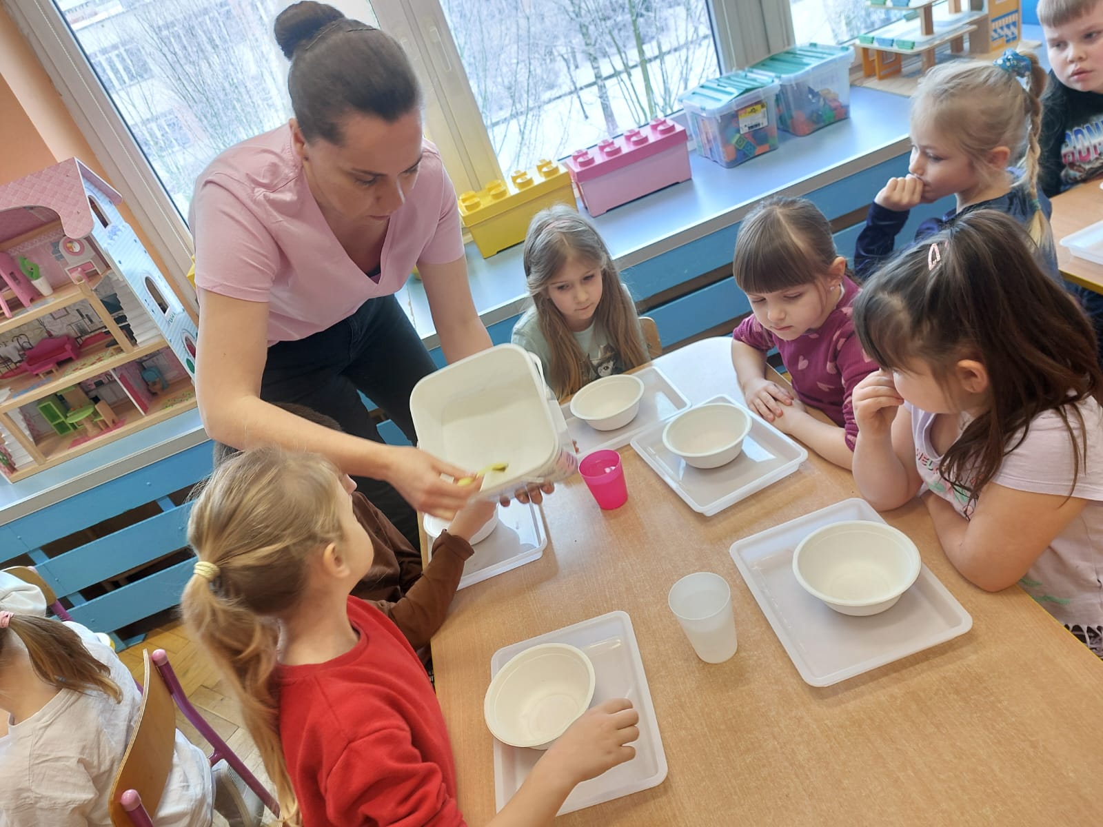 Zima to doskonały czas na odkrywanie fascynujących zjawisk przyrodniczych! Dzieci z grupy V miały okazję dziś uczestniczyć w niezwykłych eksperymentach, które wywołały prawdziwy efekt WOW! Dzięki nim nauka stała się świetną zabawą, a mali odkrywcy byli zachwyceni. Dzisiejsze eksperymenty to „kolorowe śnieżynki” i „sztuczny śnieg”. Pierwszy z nich polegał na połączeniu kleju z barwnikiem i płynem do naczyń, co dało piękne kolorowe płatki. Drugi eksperyment polegał na stworzeniu sztucznego białego i kolorowego śniegu, który po połączeniu poliakrylu sodu z wodą był biały, następnie dzieci dodały kolorowy barwnik, który zmienił śnieg w kolor. To były prawdziwe czary…. Te zimowe eksperymenty pokazały dzieciom, że nauka może być ekscytująca i pełna niespodzianek! To była świetna okazja do rozwijania kreatywności oraz zdobywania wiedzy poprzez zabawę.
